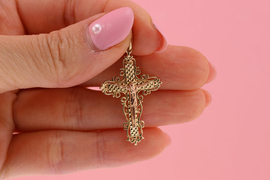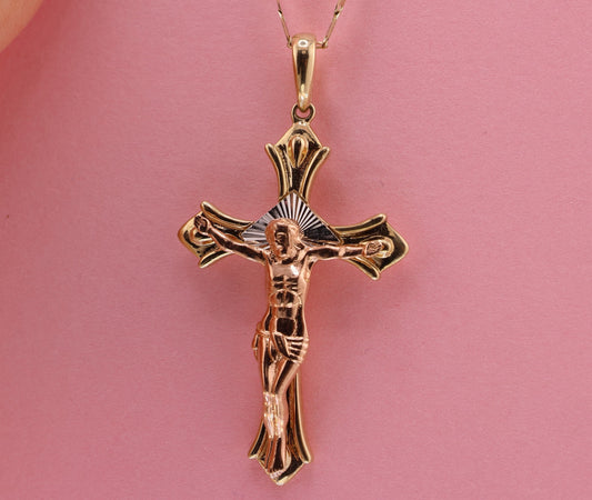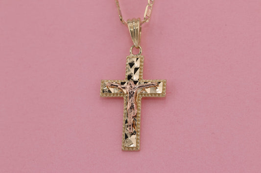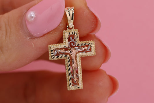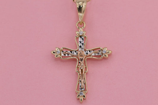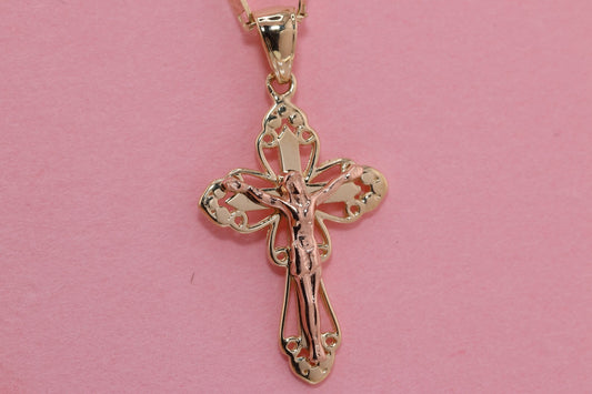 14k Solid Gold Cross Jesus Crucifix Crucifijo Charm Pendant K