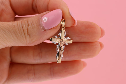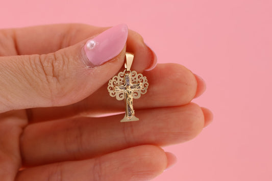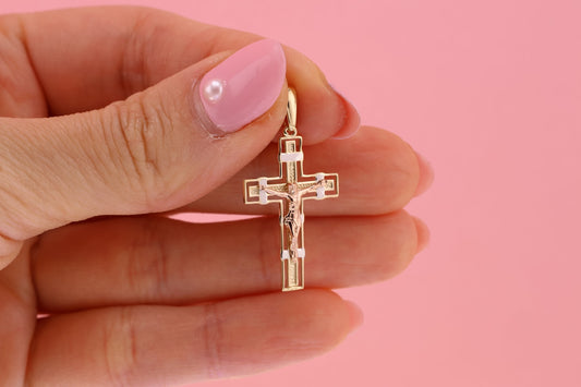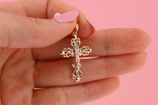 14k Solid Gold Cross Jesus Crucifix Crucifijo Charm Pendant I