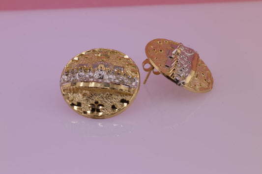 10K Yellow Gold Diamond Cut Last Supper Round Stud Earrings-Large