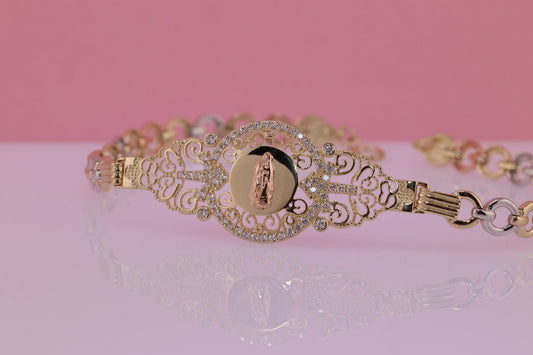 14K Gold tri color Virgin Mary Virgen Maria Lady Guadalupe Bracelet D