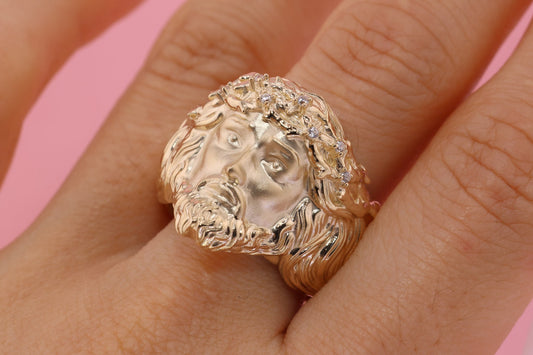 14K Solid Gold 3D Handcrafted Jesus Ring