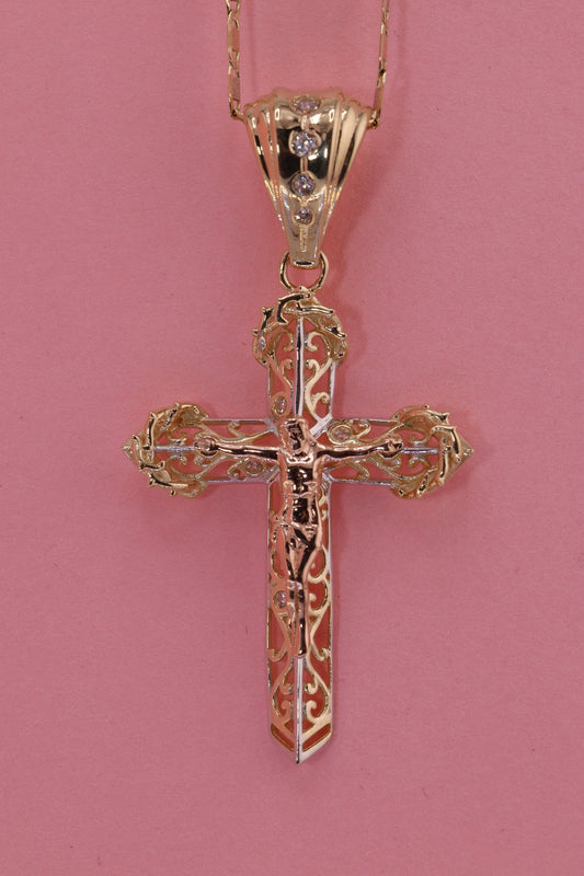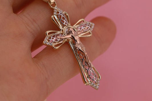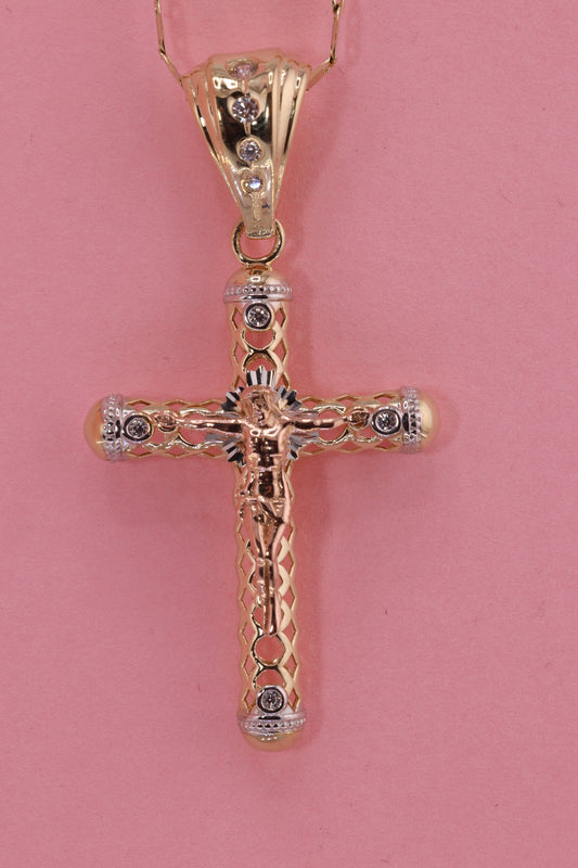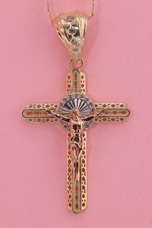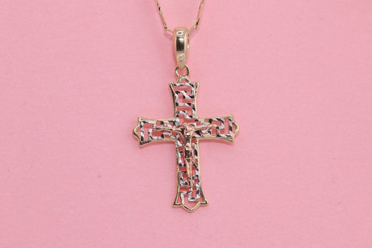 14k Solid Gold Cross Jesus Crucifix Crucifijo Pendant Necklace D