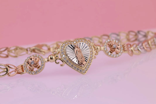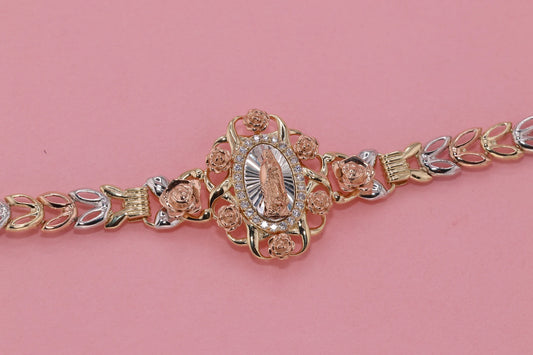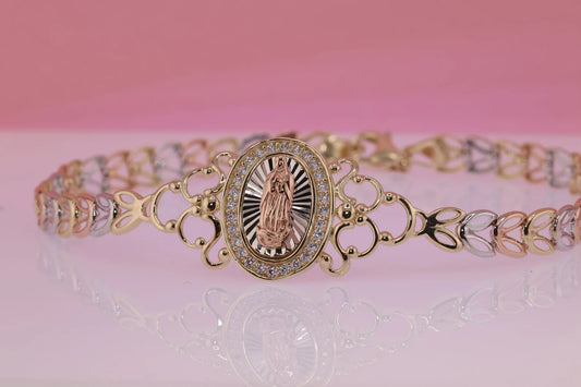 14K Gold tri color Virgin Mary Virgen Maria Lady Guadalupe Bracelet A