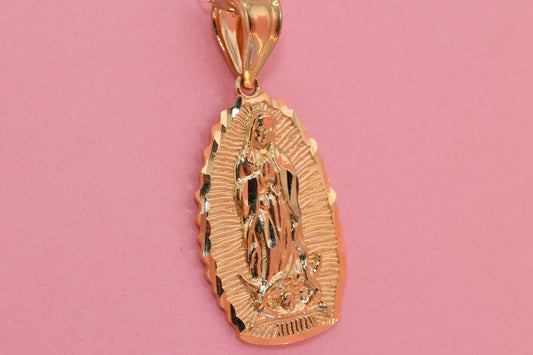 14k Solid Gold Virgin Mary Virgen Maria Lady Guadalupe Pendant L