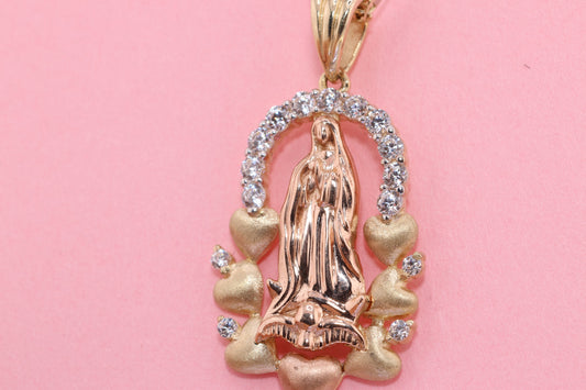 14k Solid Gold Virgin Mary Virgin Maria Lady Guadalupe Pendant S