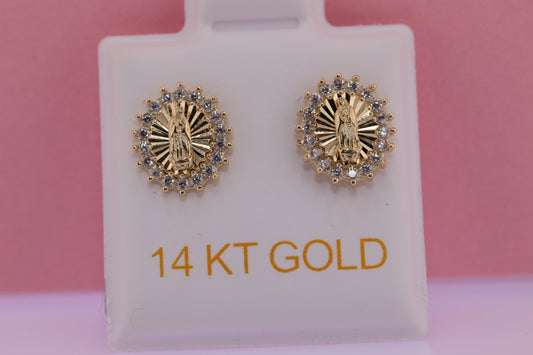 14K Gold Gold Virgin Mary Virgen Maria Lady Guadalupe Screw-back Earrings