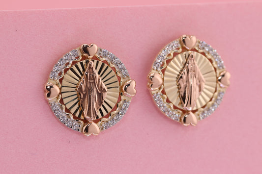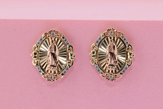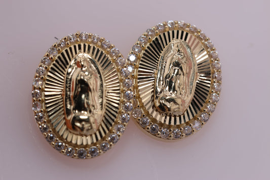14k Solid Gold Virgin Mary Virgen Maria Lady Guadalupe Earrings E