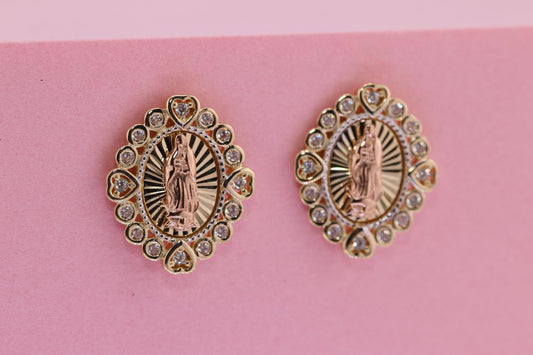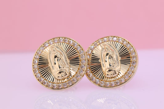 14k Solid Gold Virgin Mary Virgen Maria Lady Guadalupe Earrings H