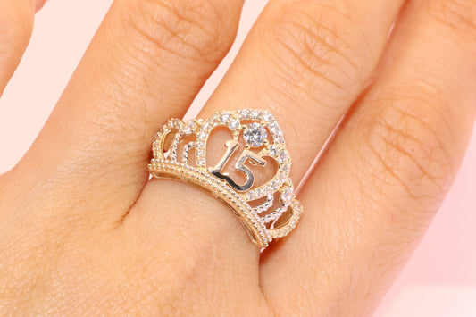 14K Gold 15 Anos Quinceanera Crown Ring A