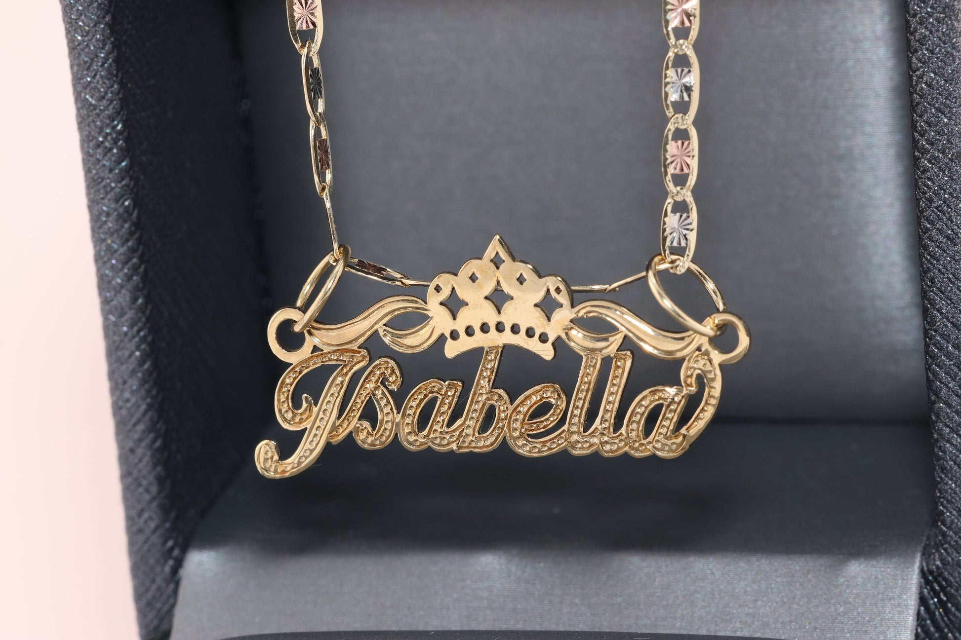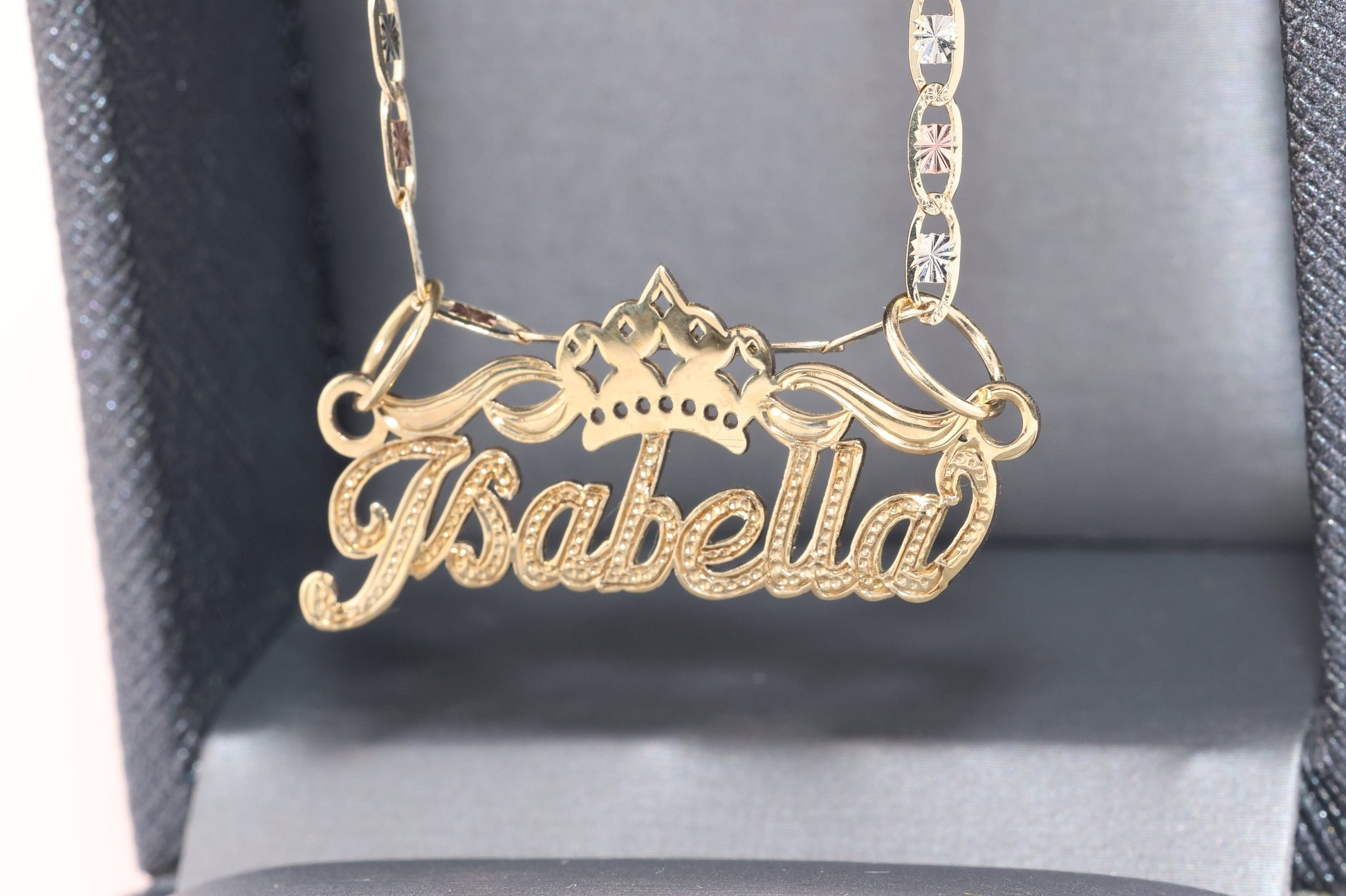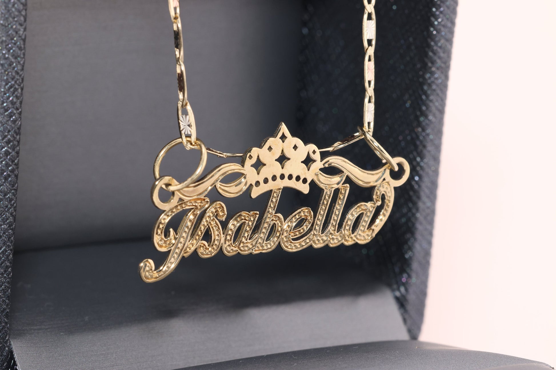 10K 14K Solid Real Gold Crown Name Personalized Pendant