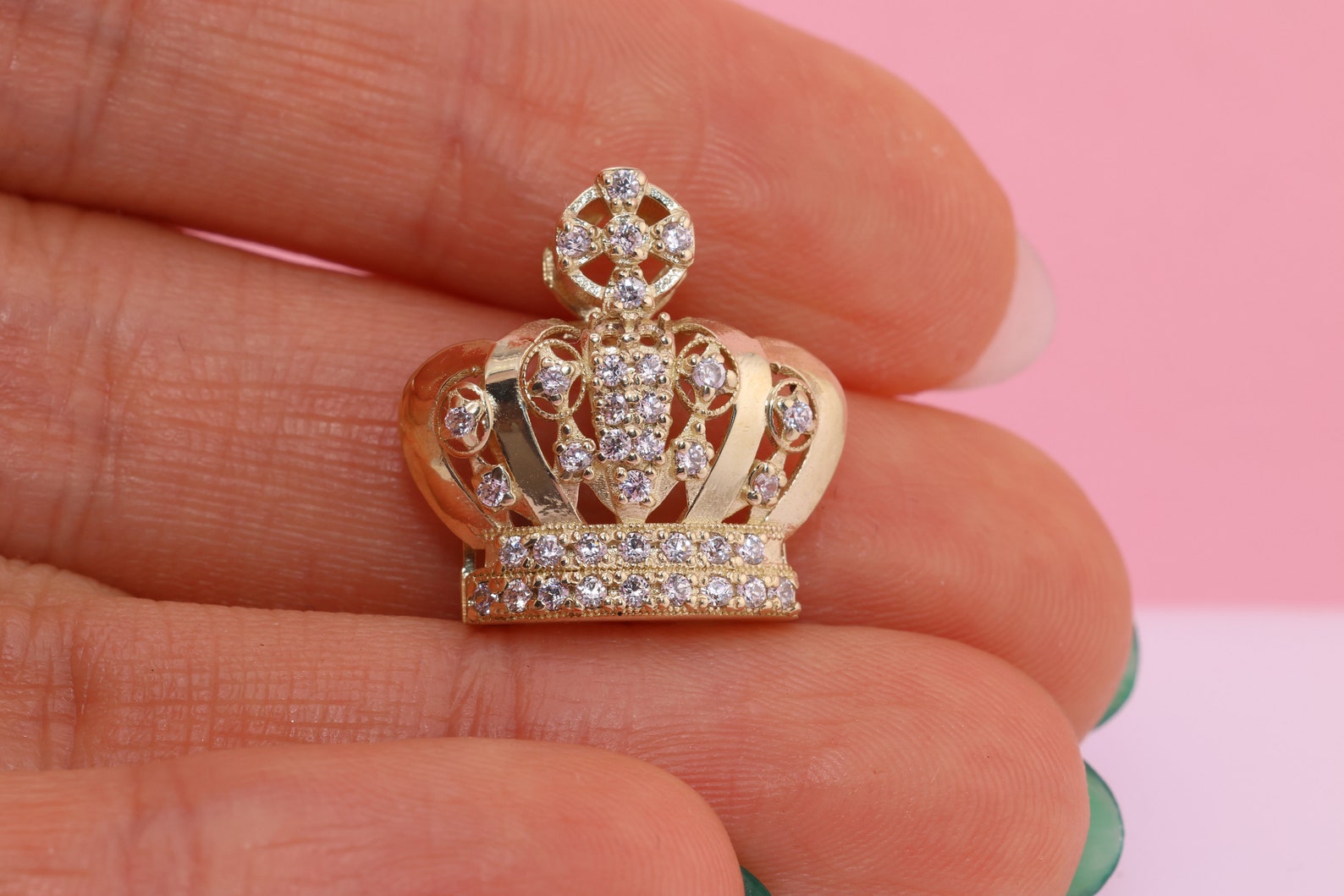 10k Gold HANDMADE Crown Unique Style Pendant for Thinner Chains