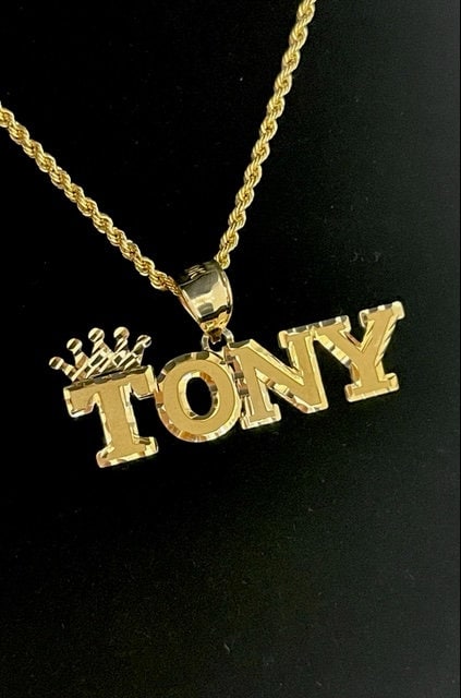 10K or 14K Gold Personalized Name with Crown Pendant C