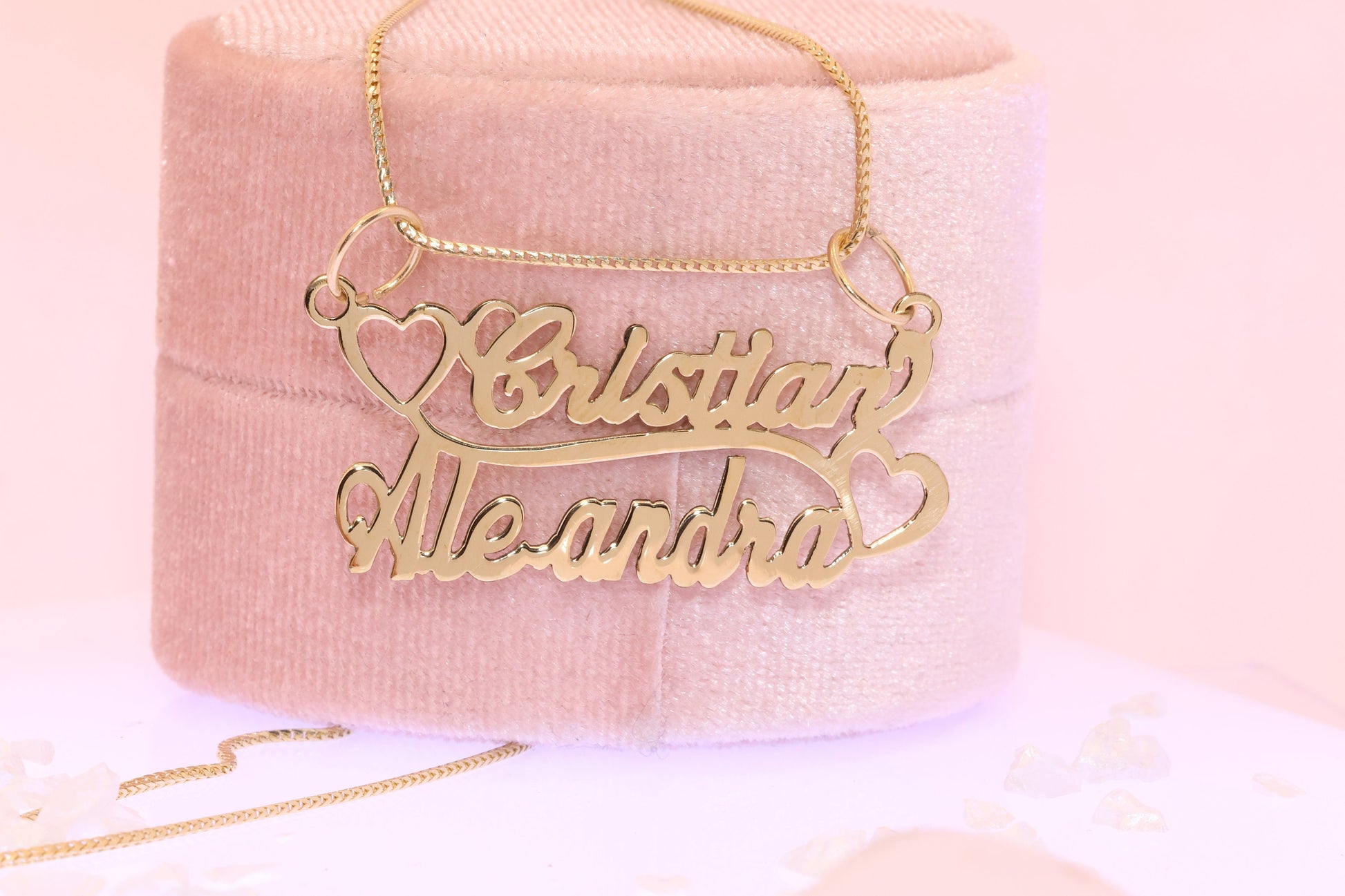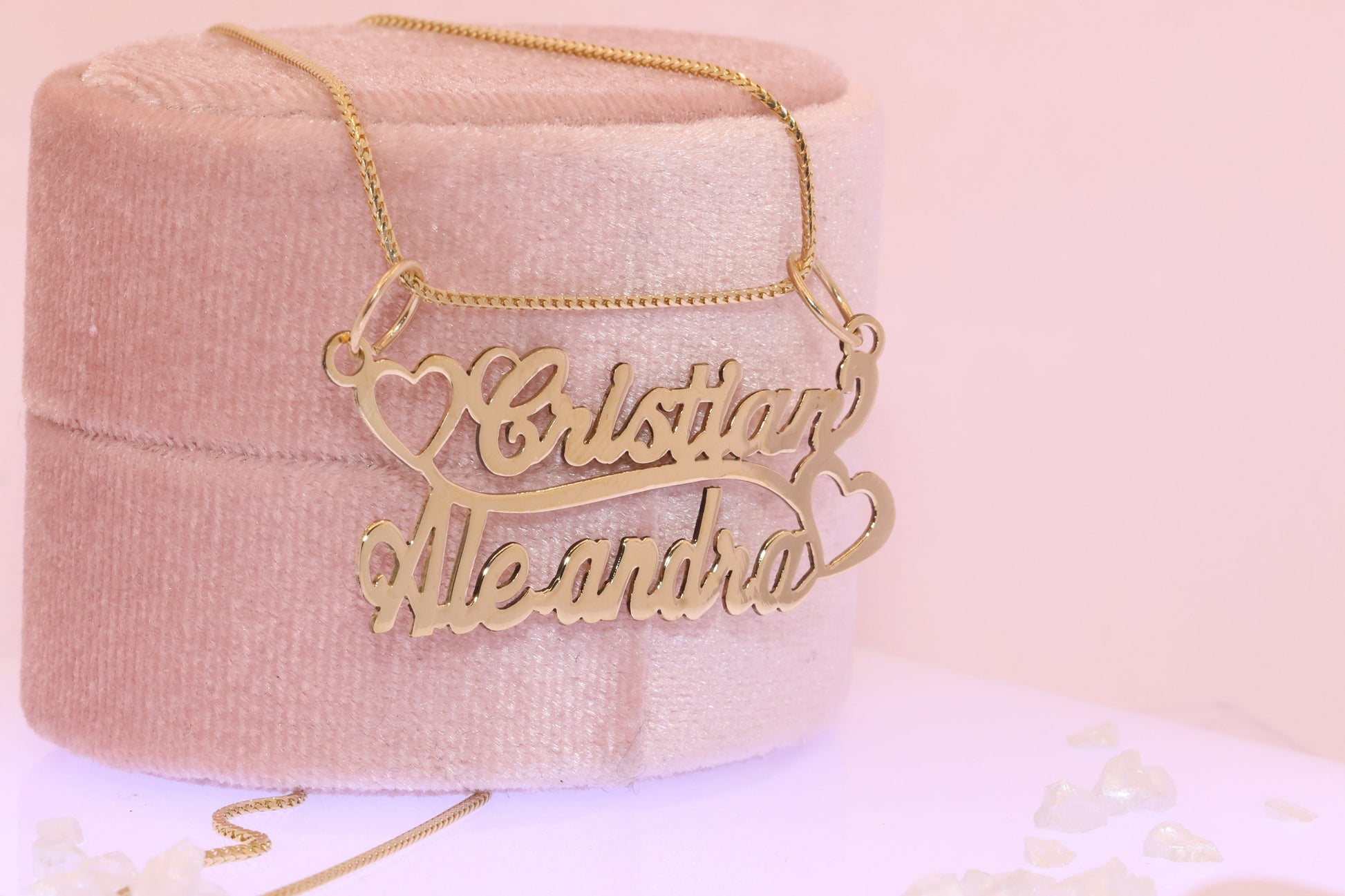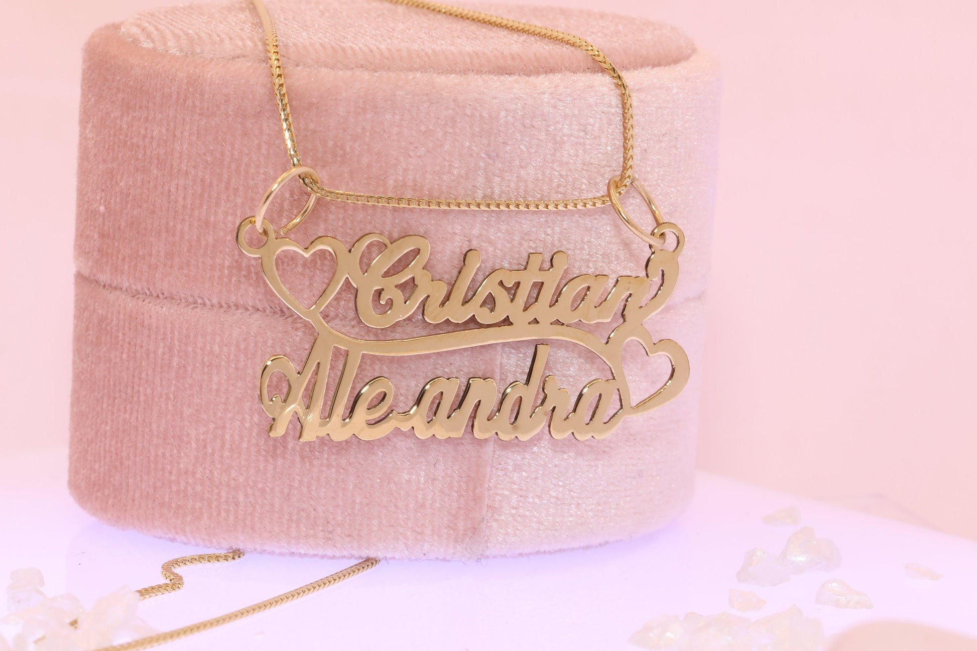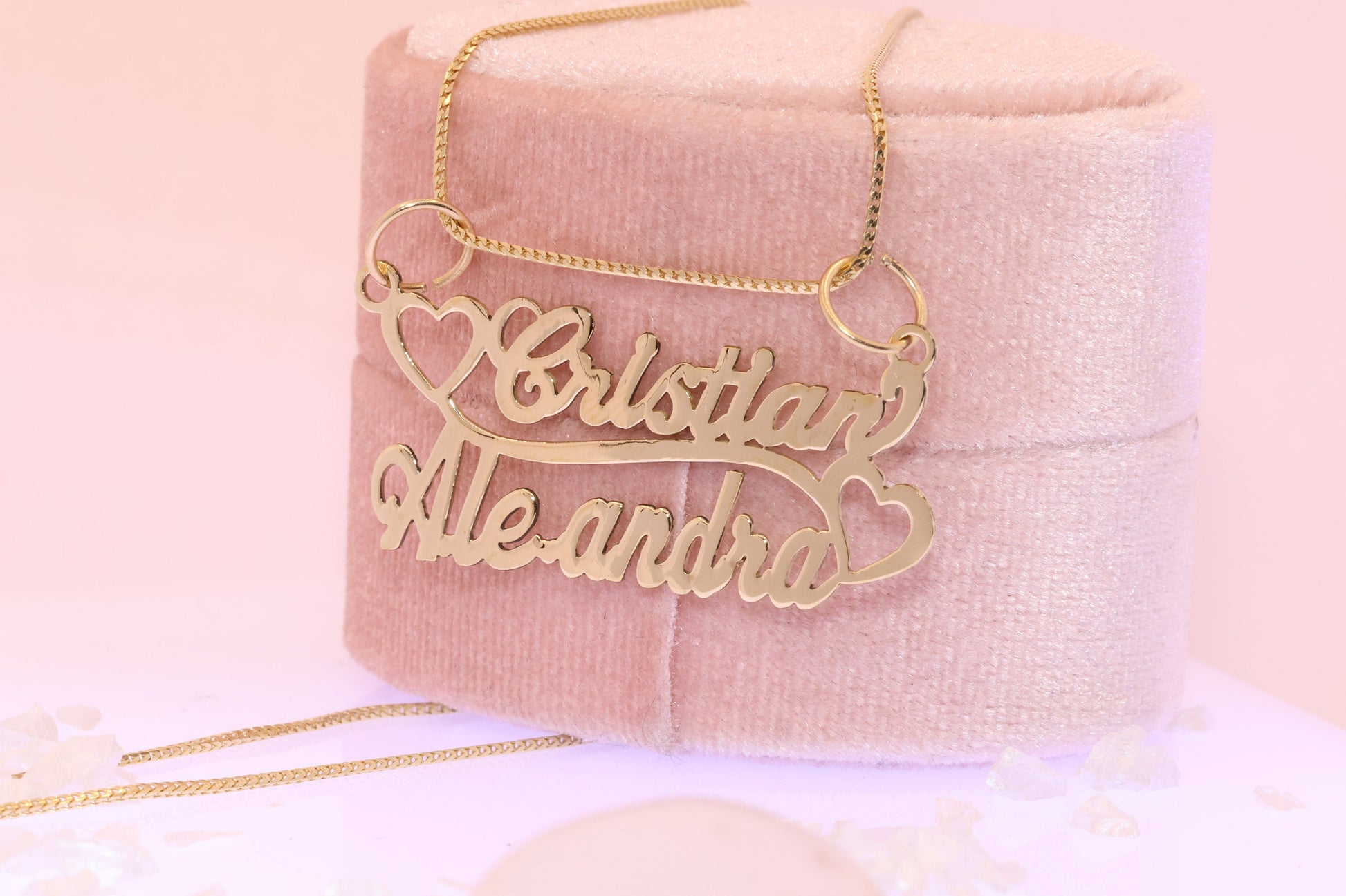 10K or 14K Gold Personalized Double Name with Heart Pendant A