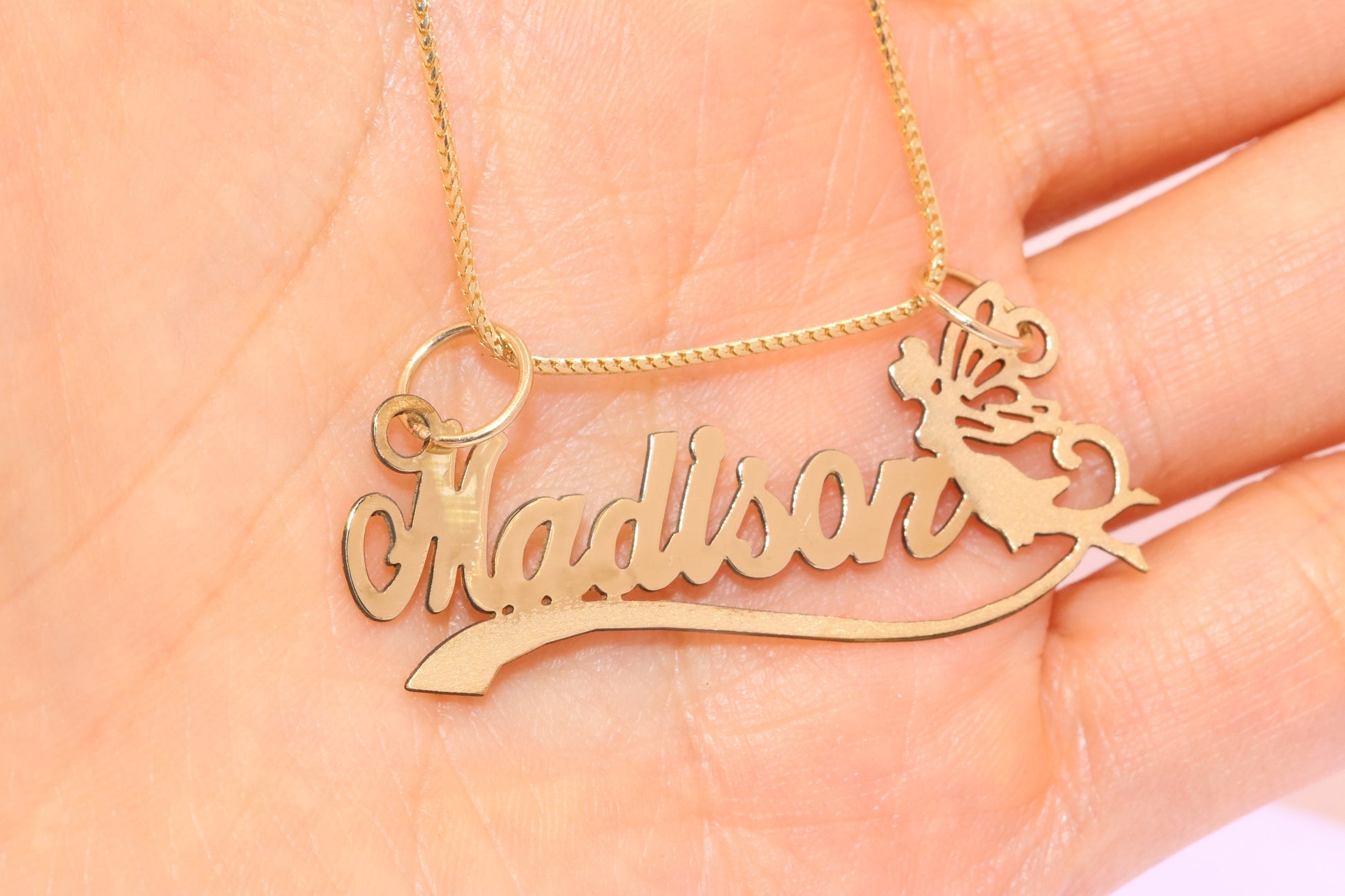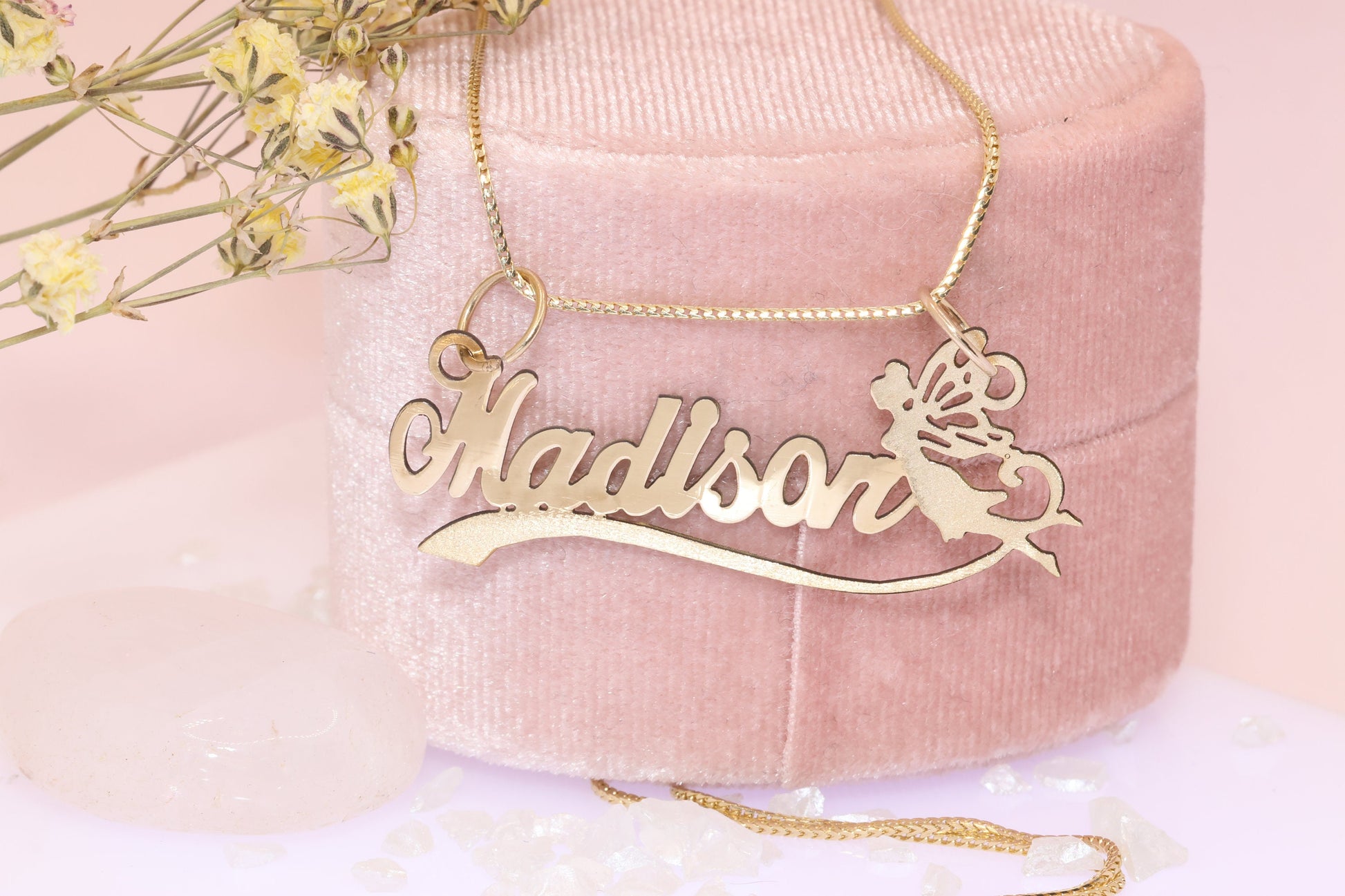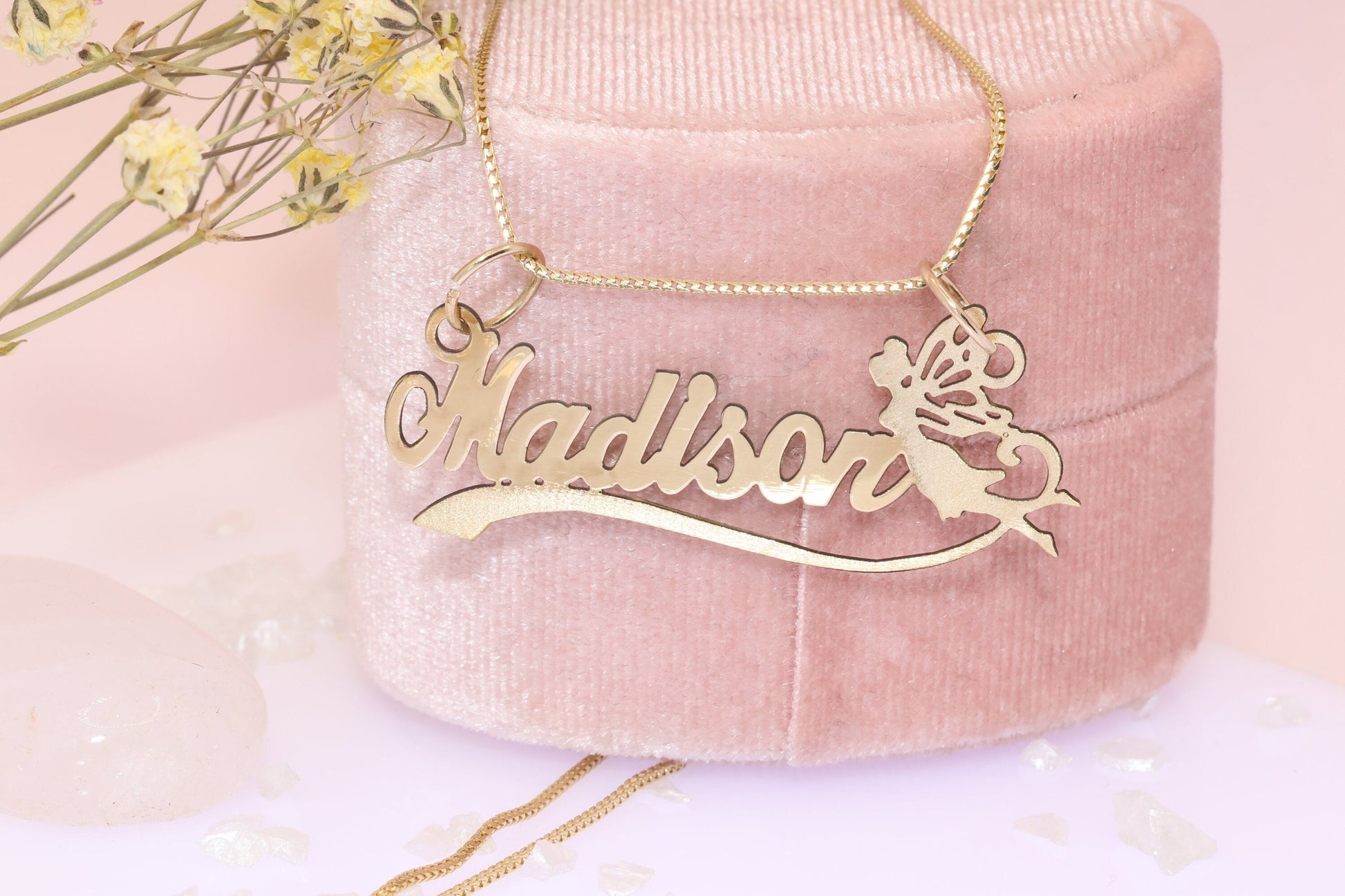 10K or 14K Gold Personalized Name with Angel Pendant
