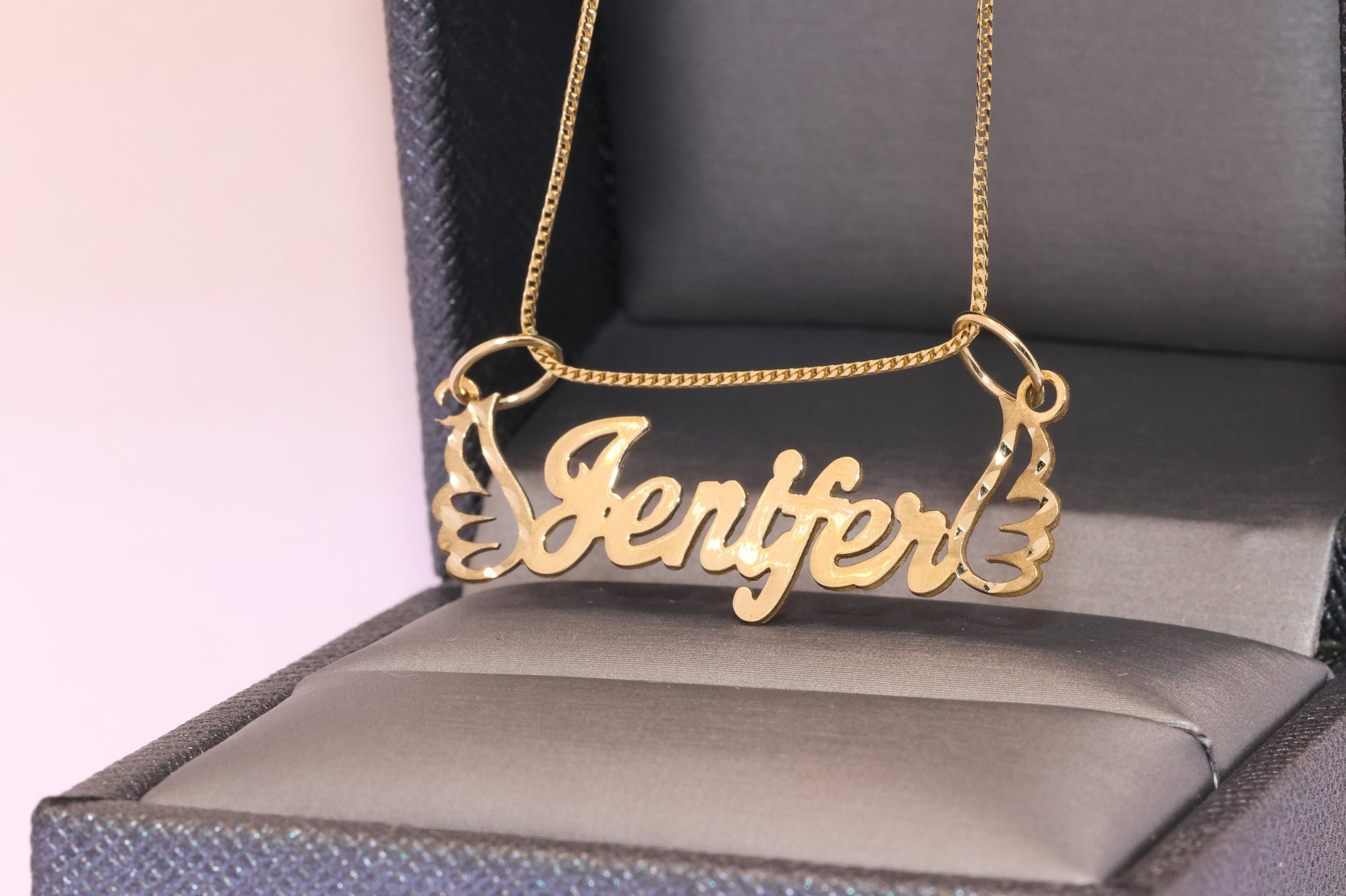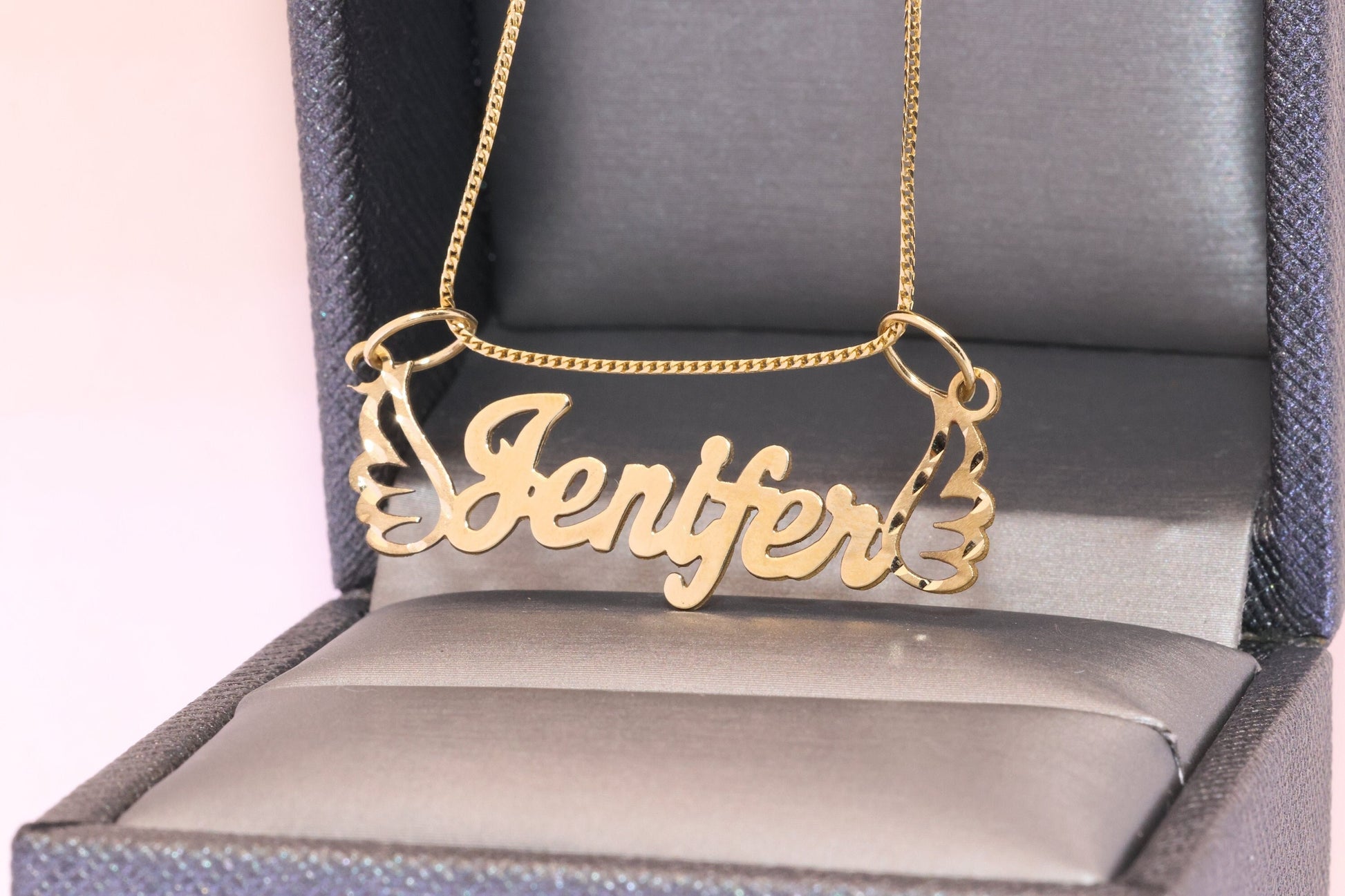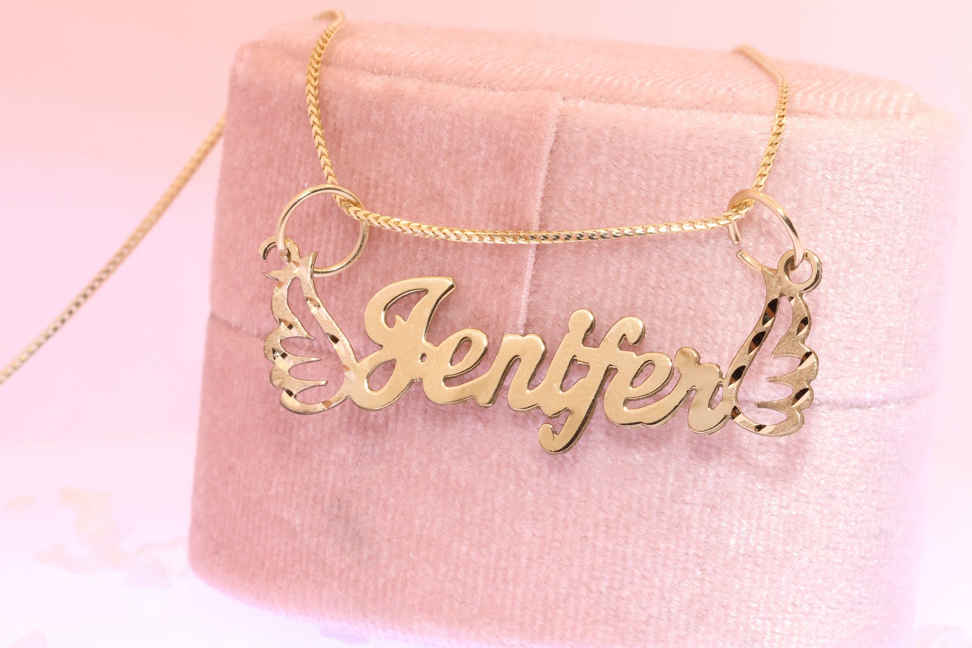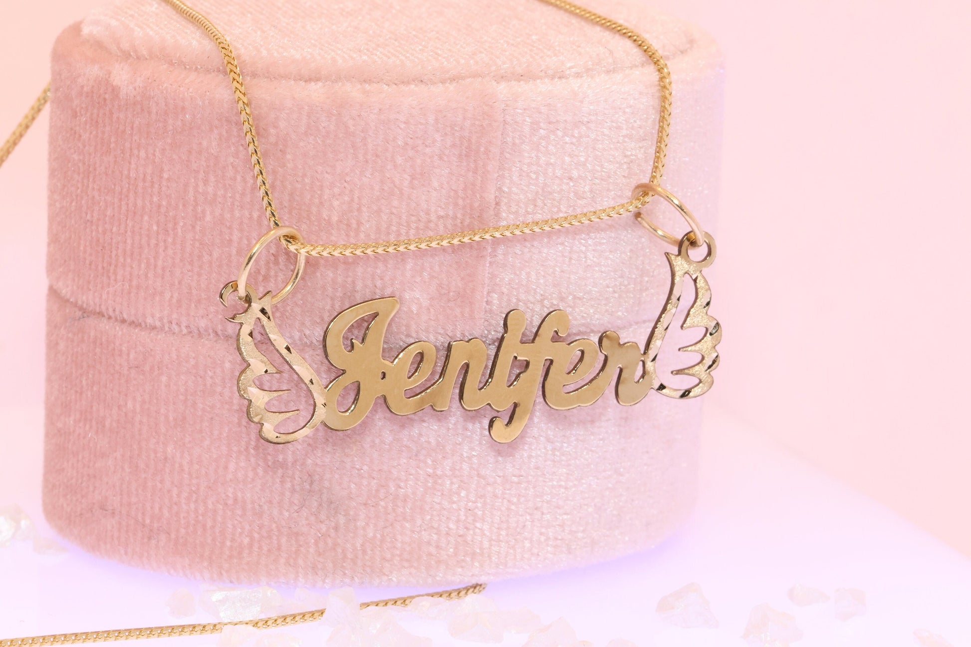 10K or 14K Gold Personalized Name with Angel Wing Pendant