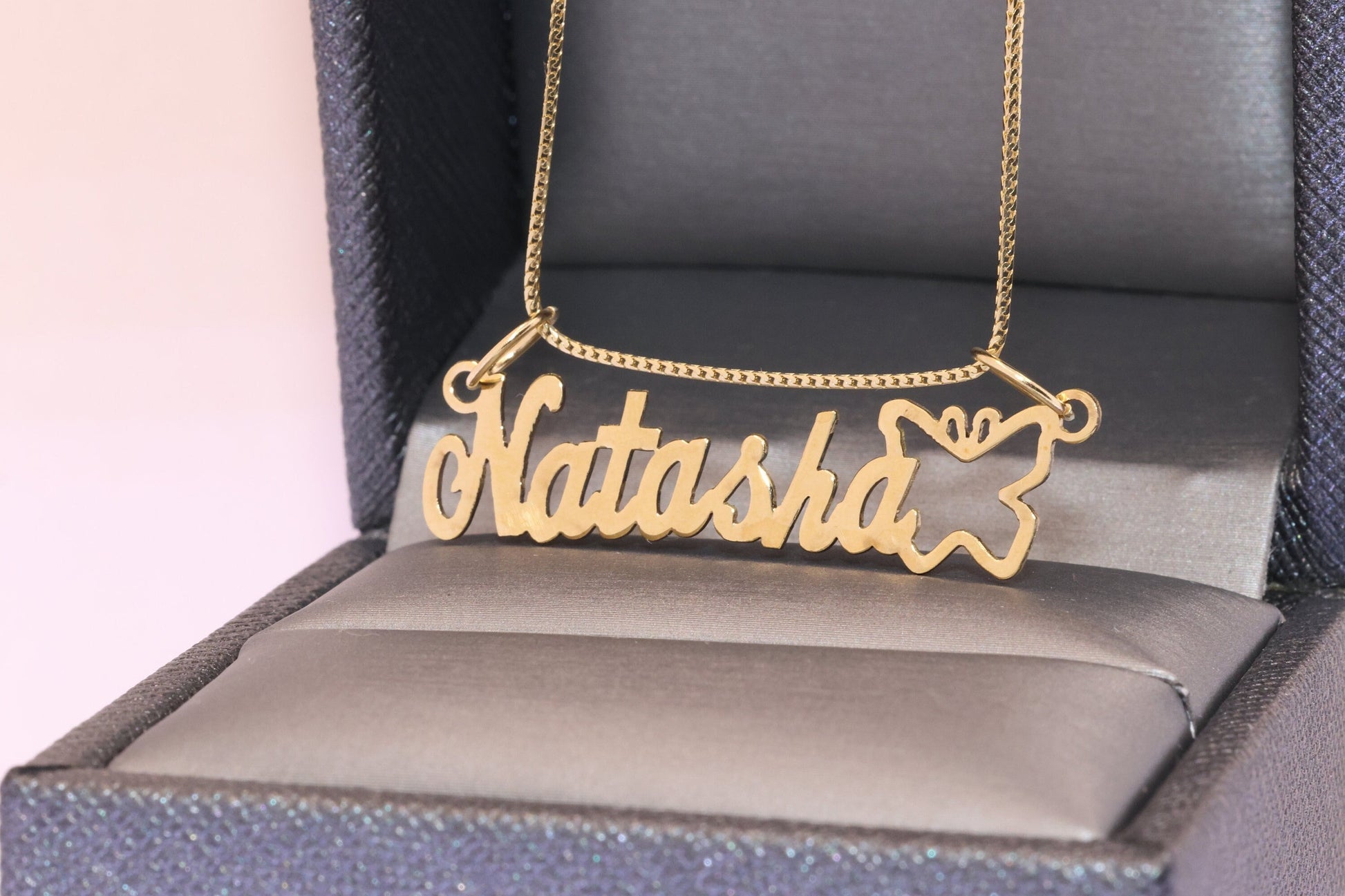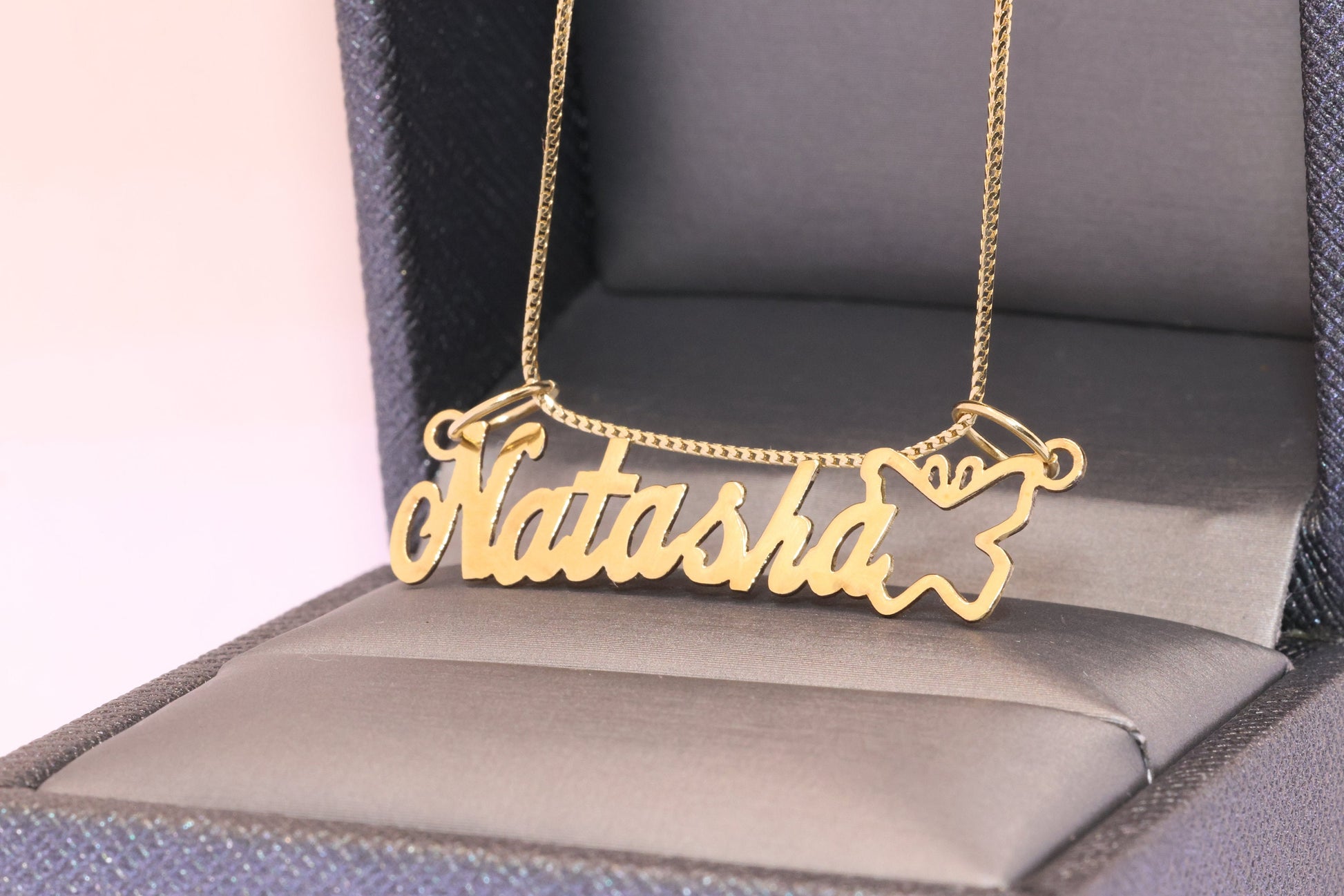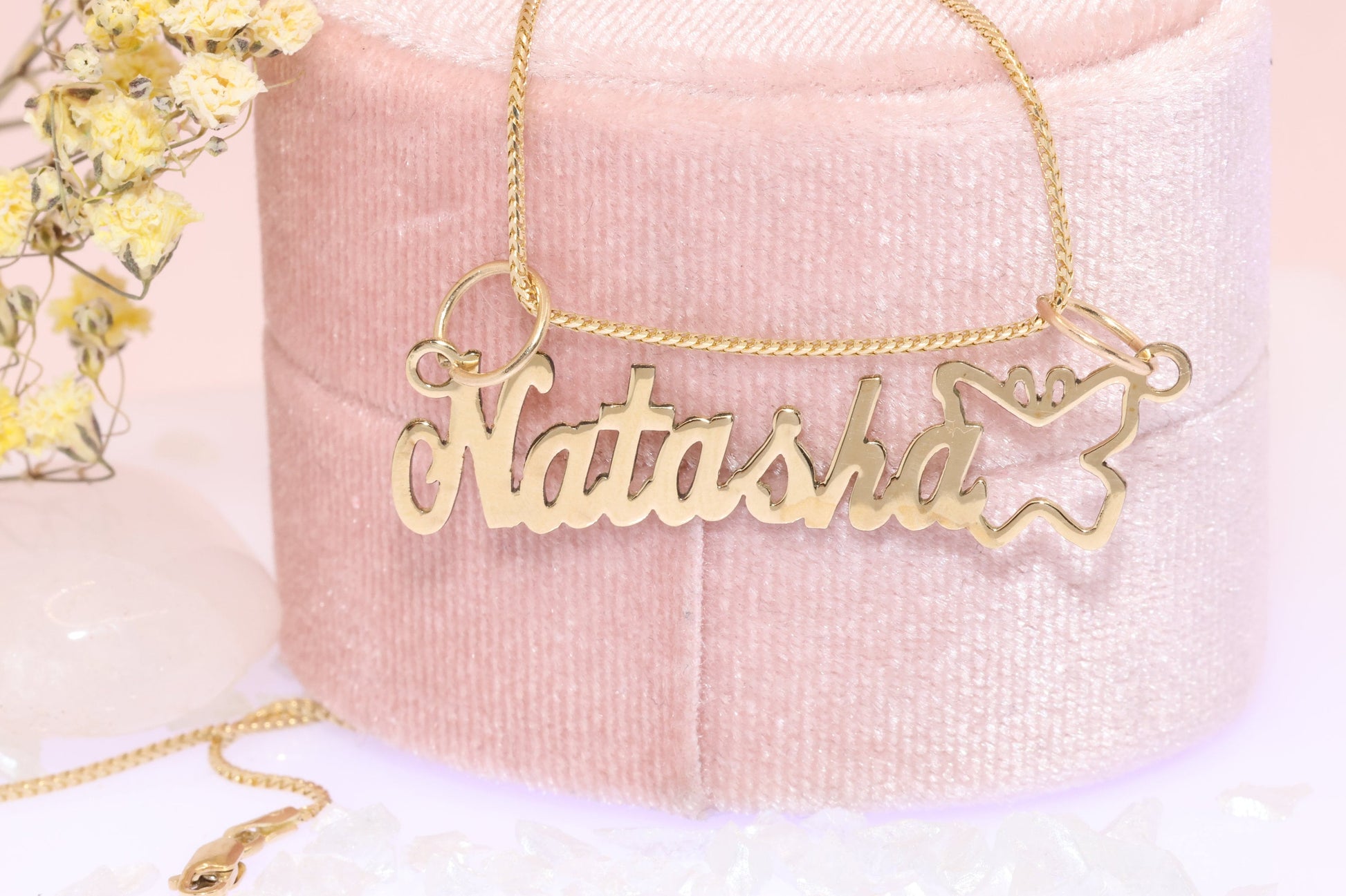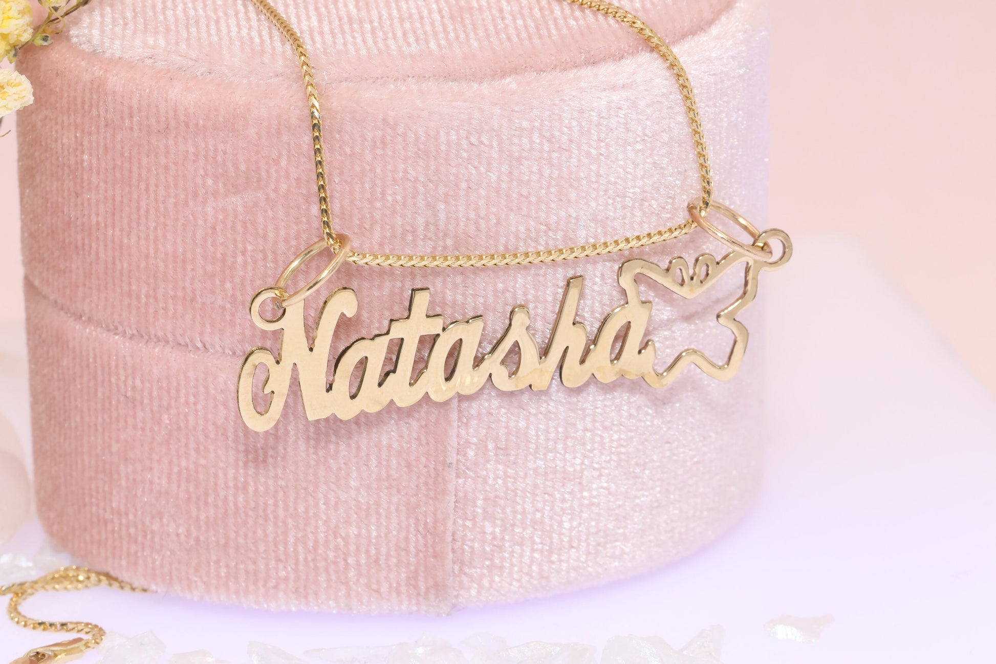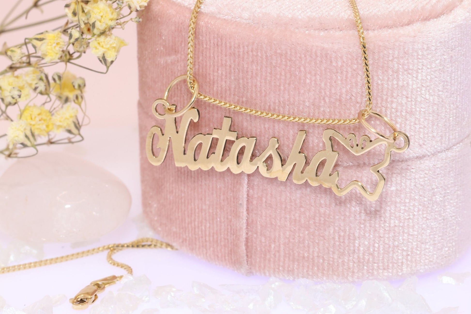 10K or 14K Gold Personalized Name with Butterfly Pendant C
