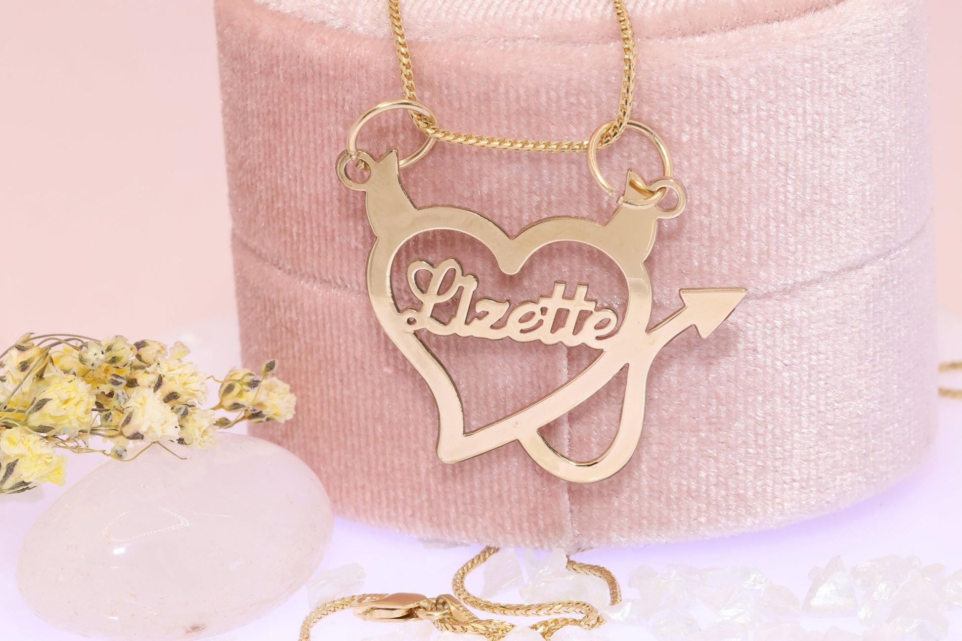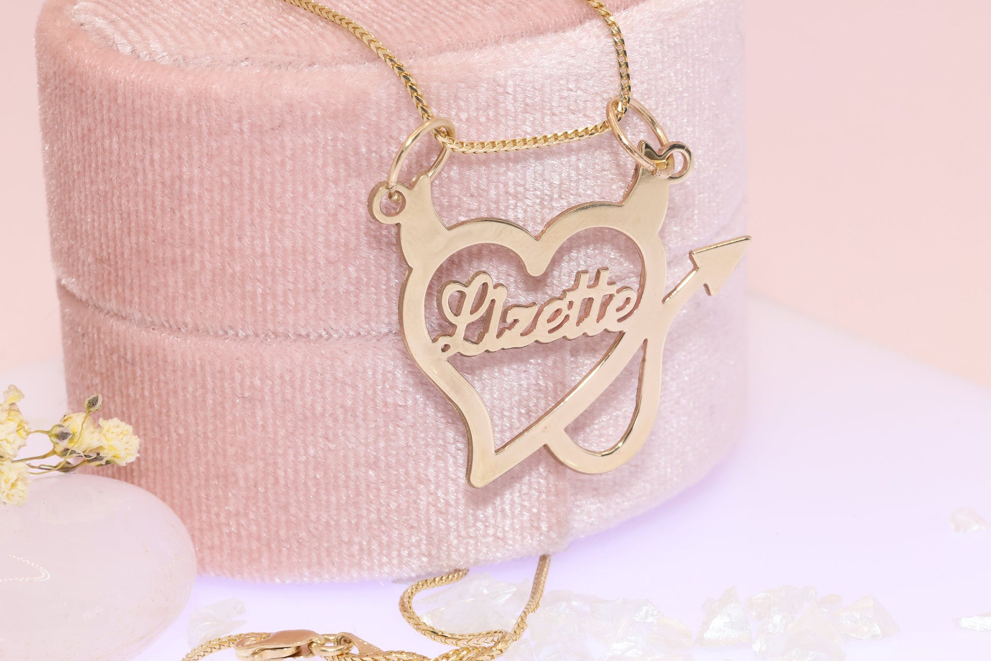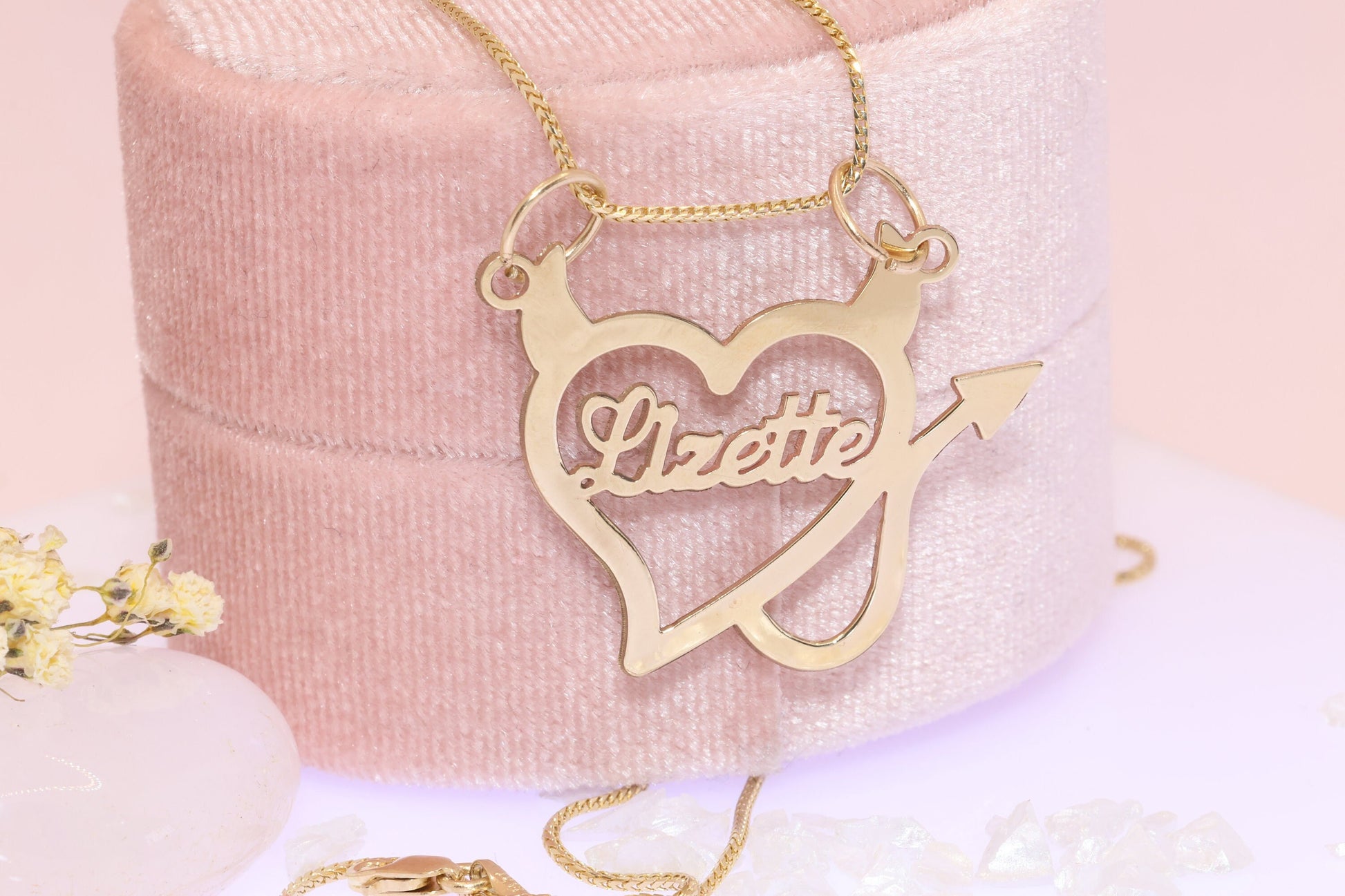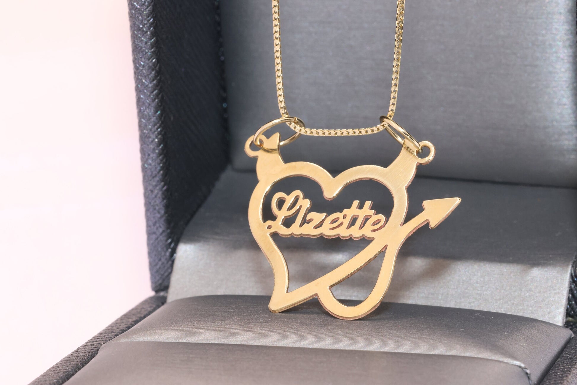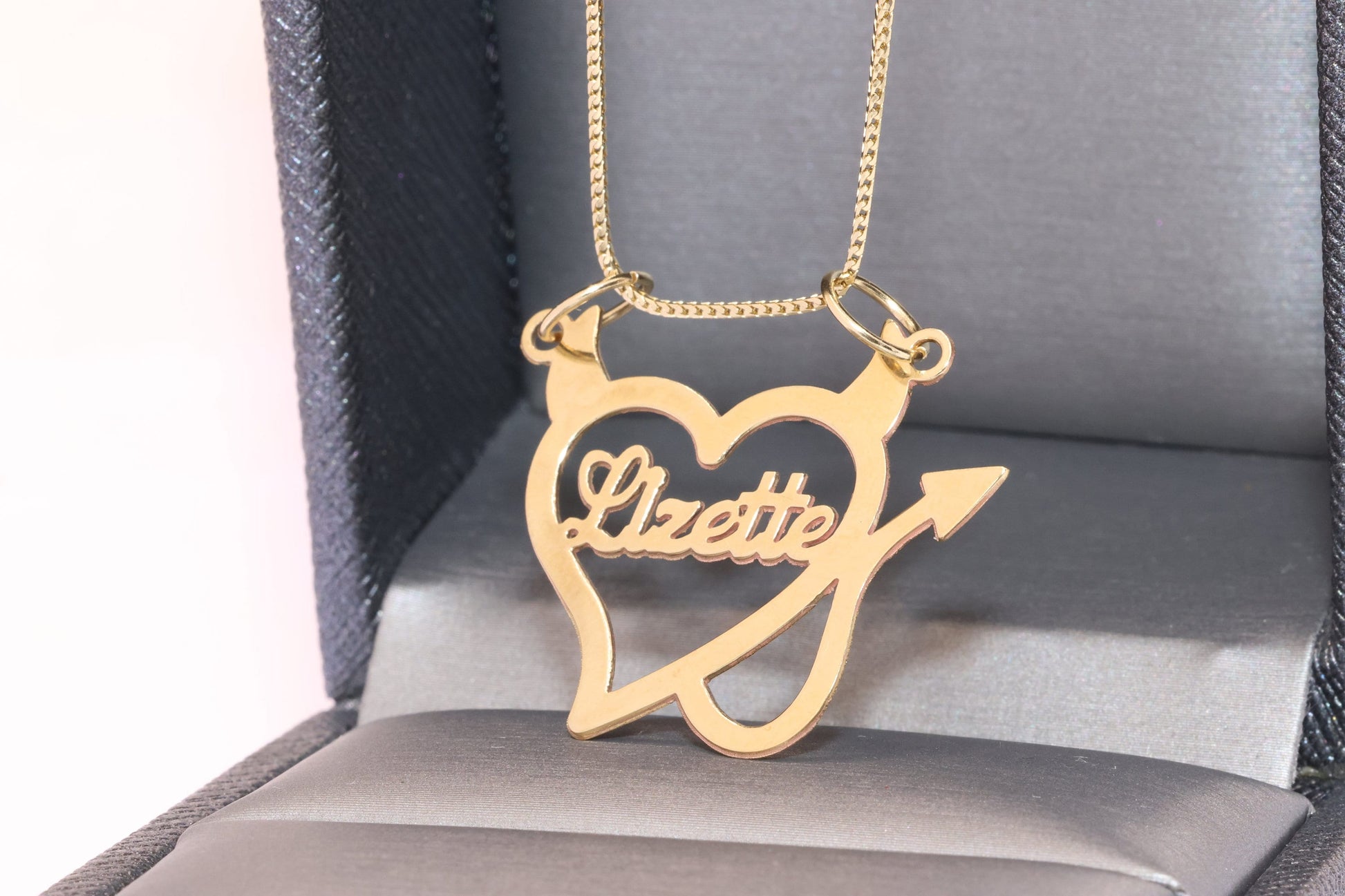 10K or 14K Gold Personalized Name with Devil Heart Pendant B