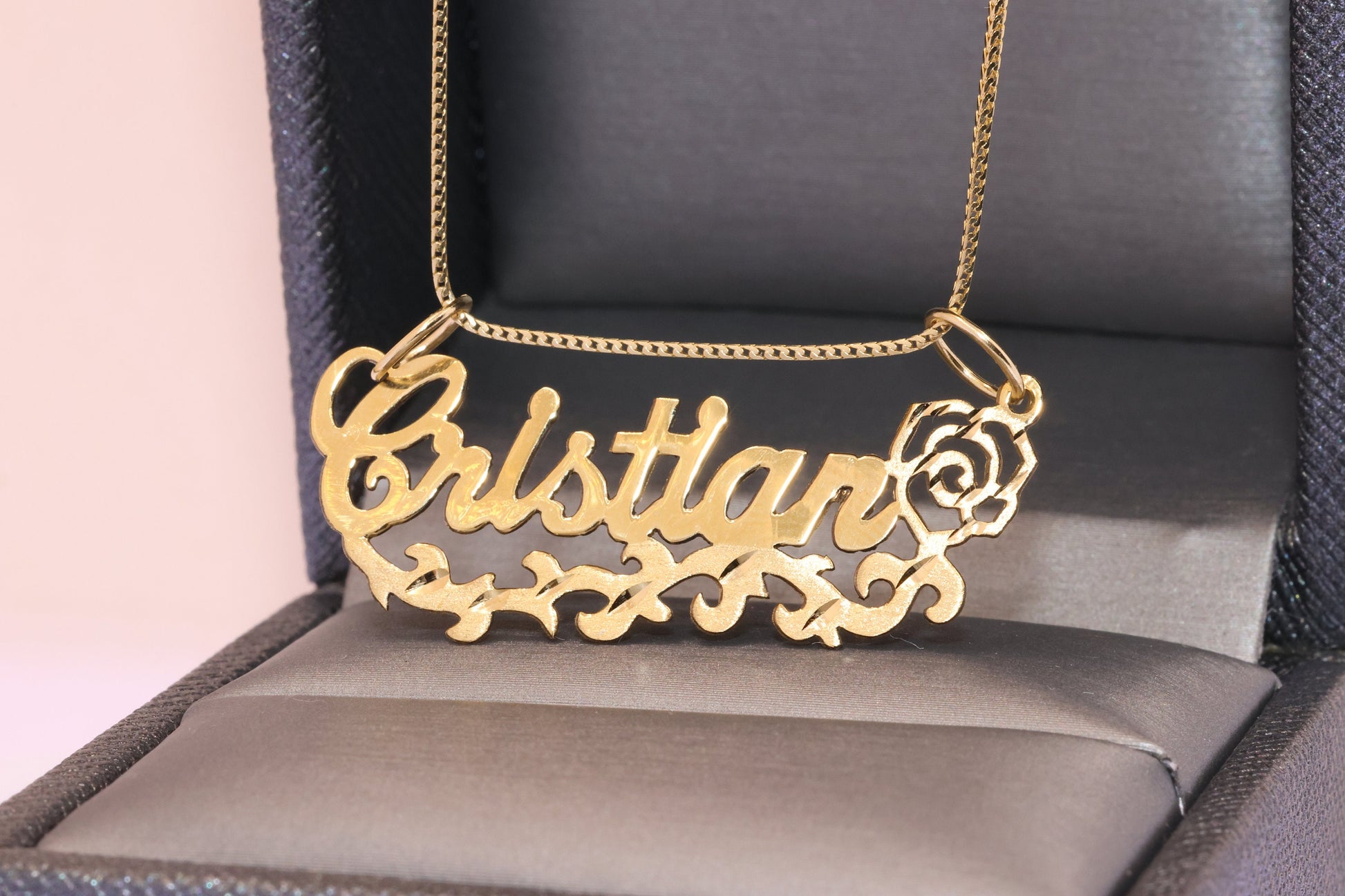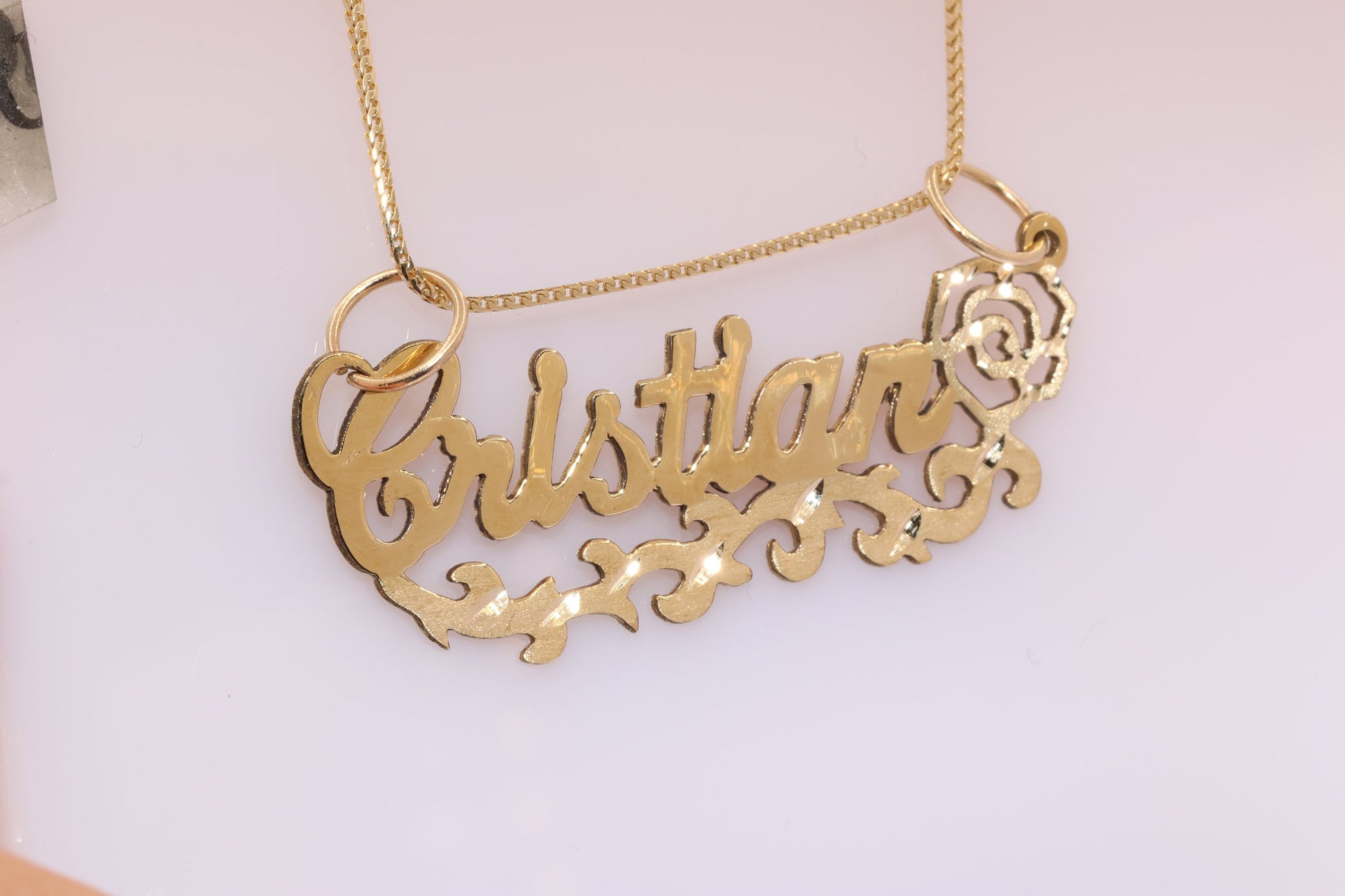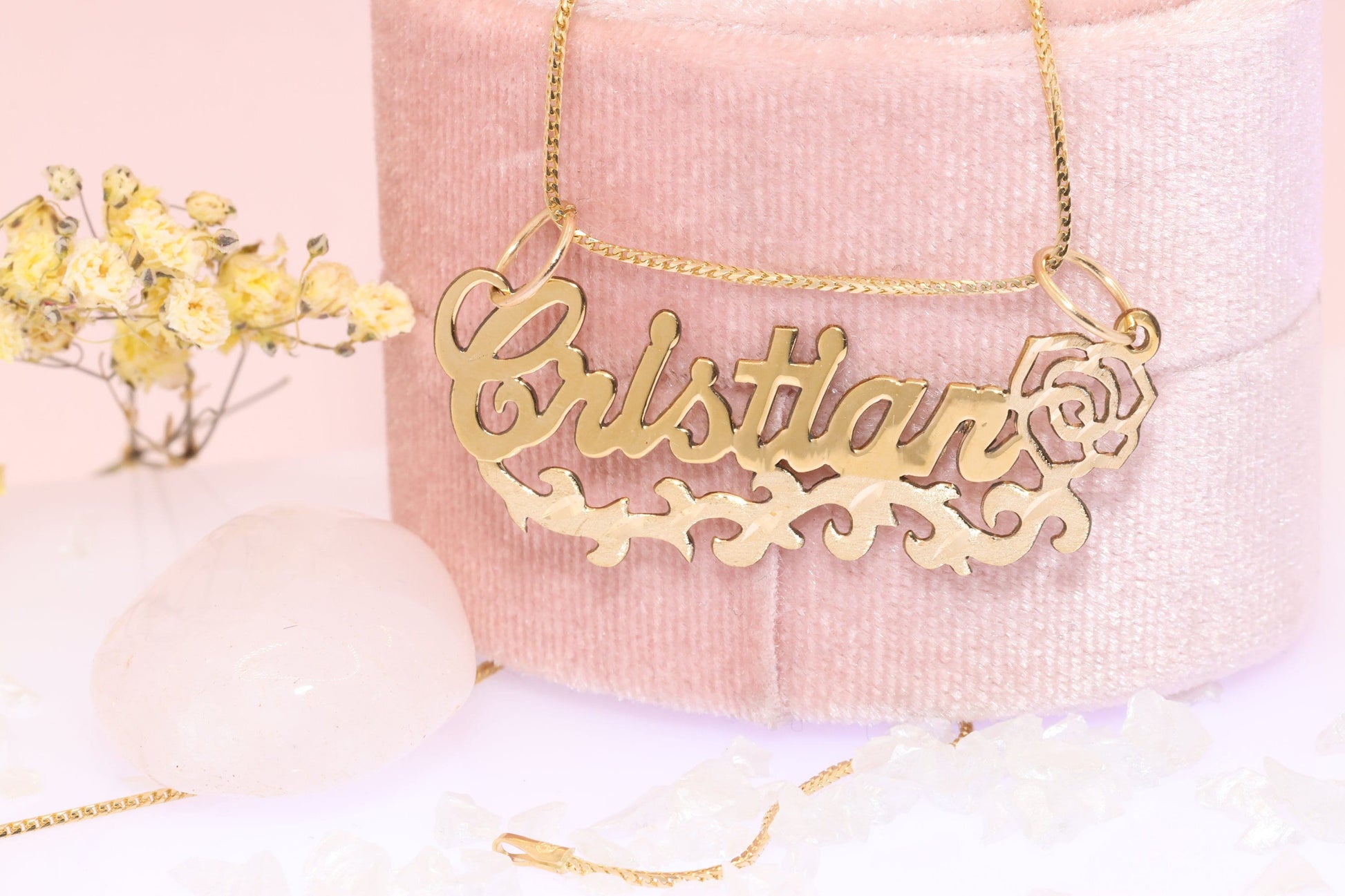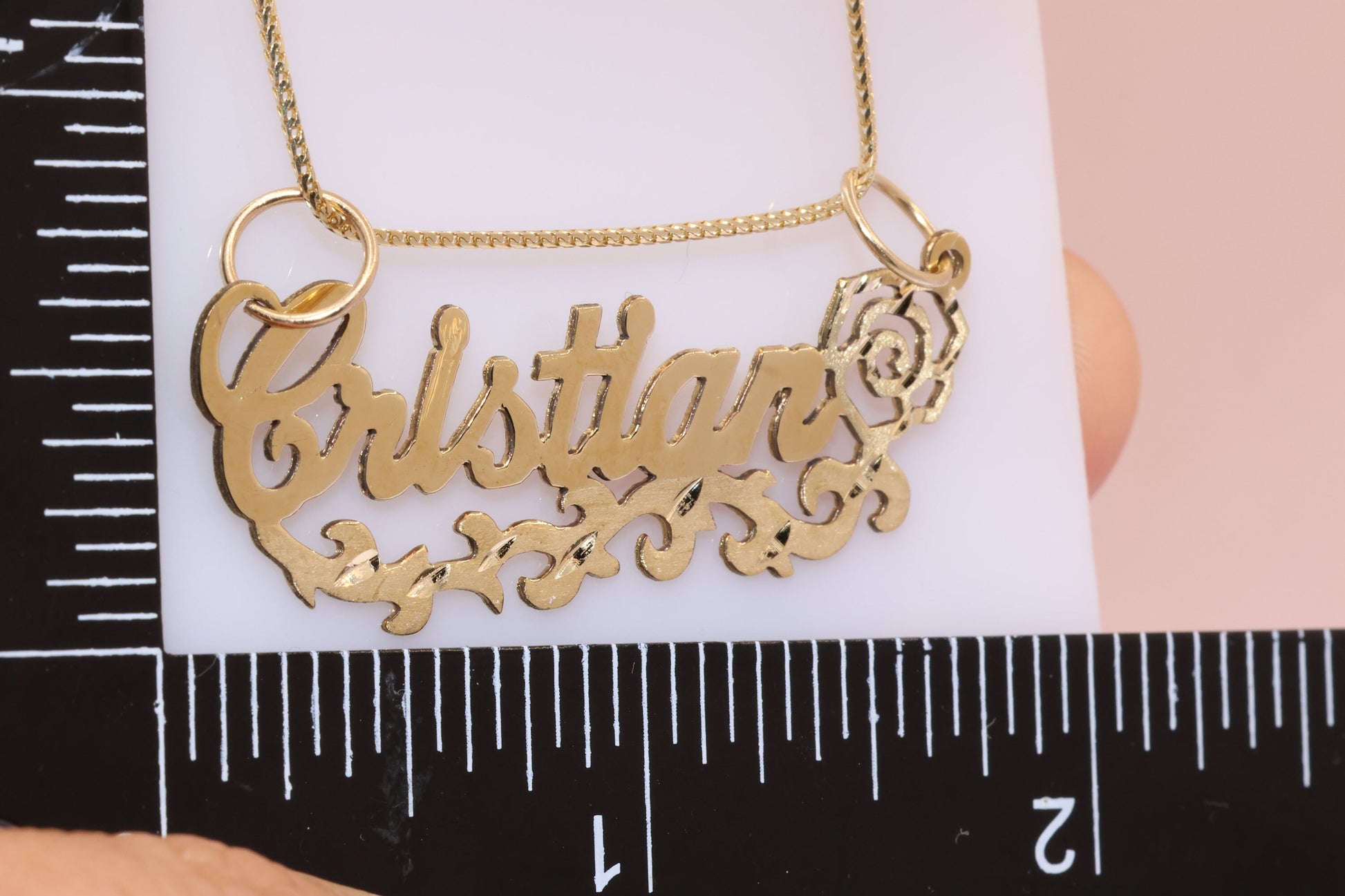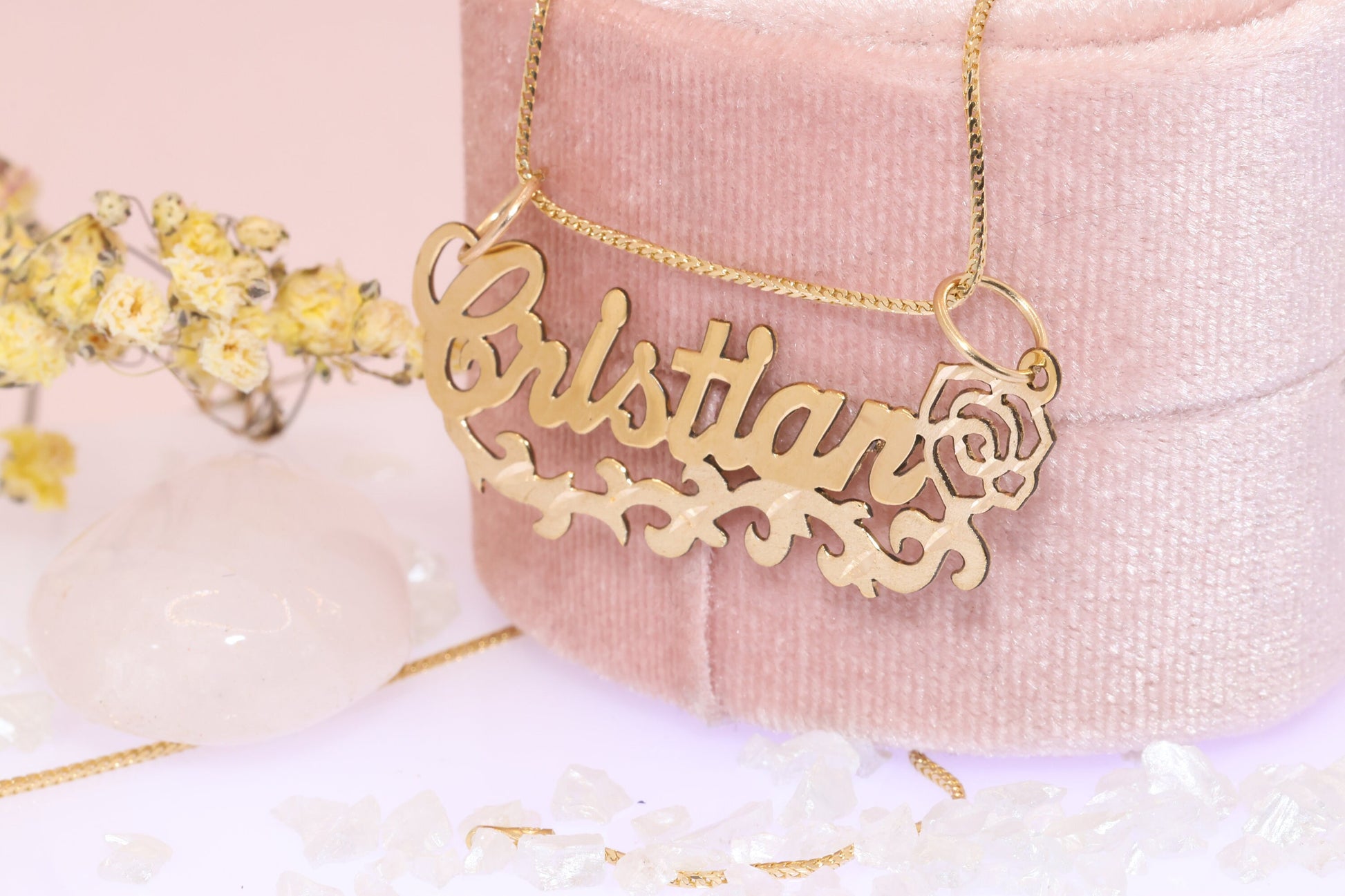 10K or 14K Gold Personalized Name with Rose Pendant B