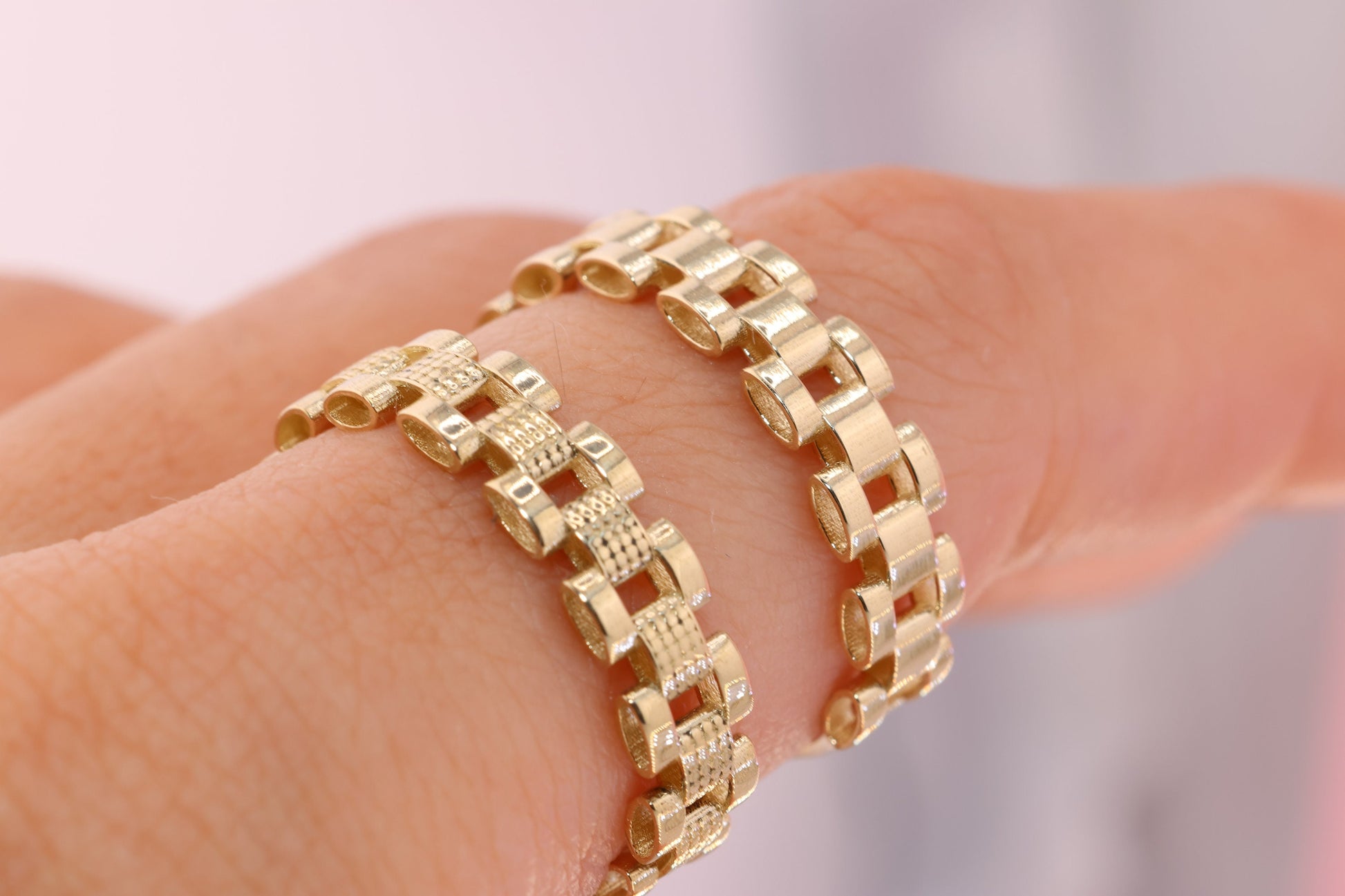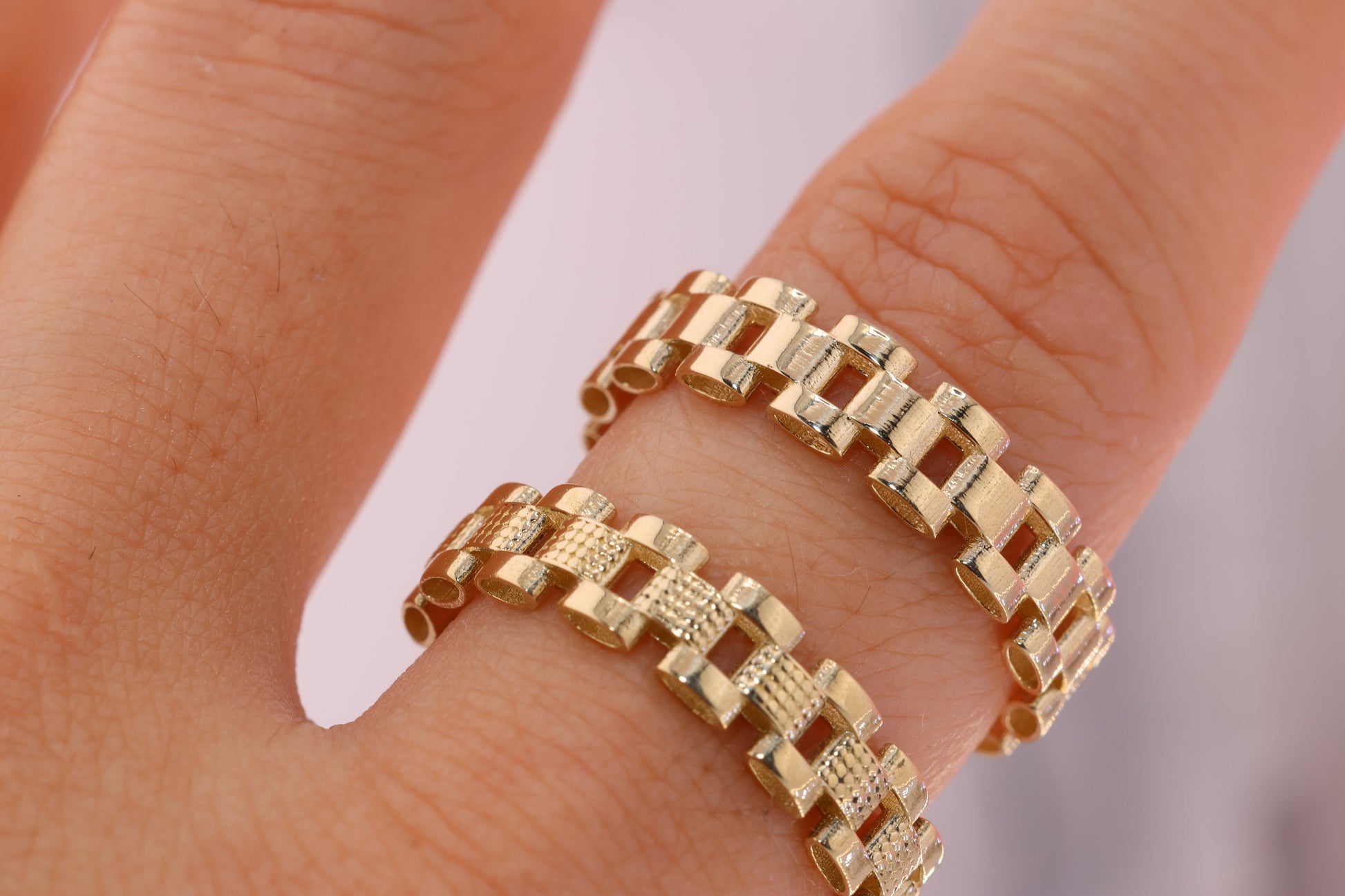 10k Solid Gold Rollie Presidential Style Textured Band Ring