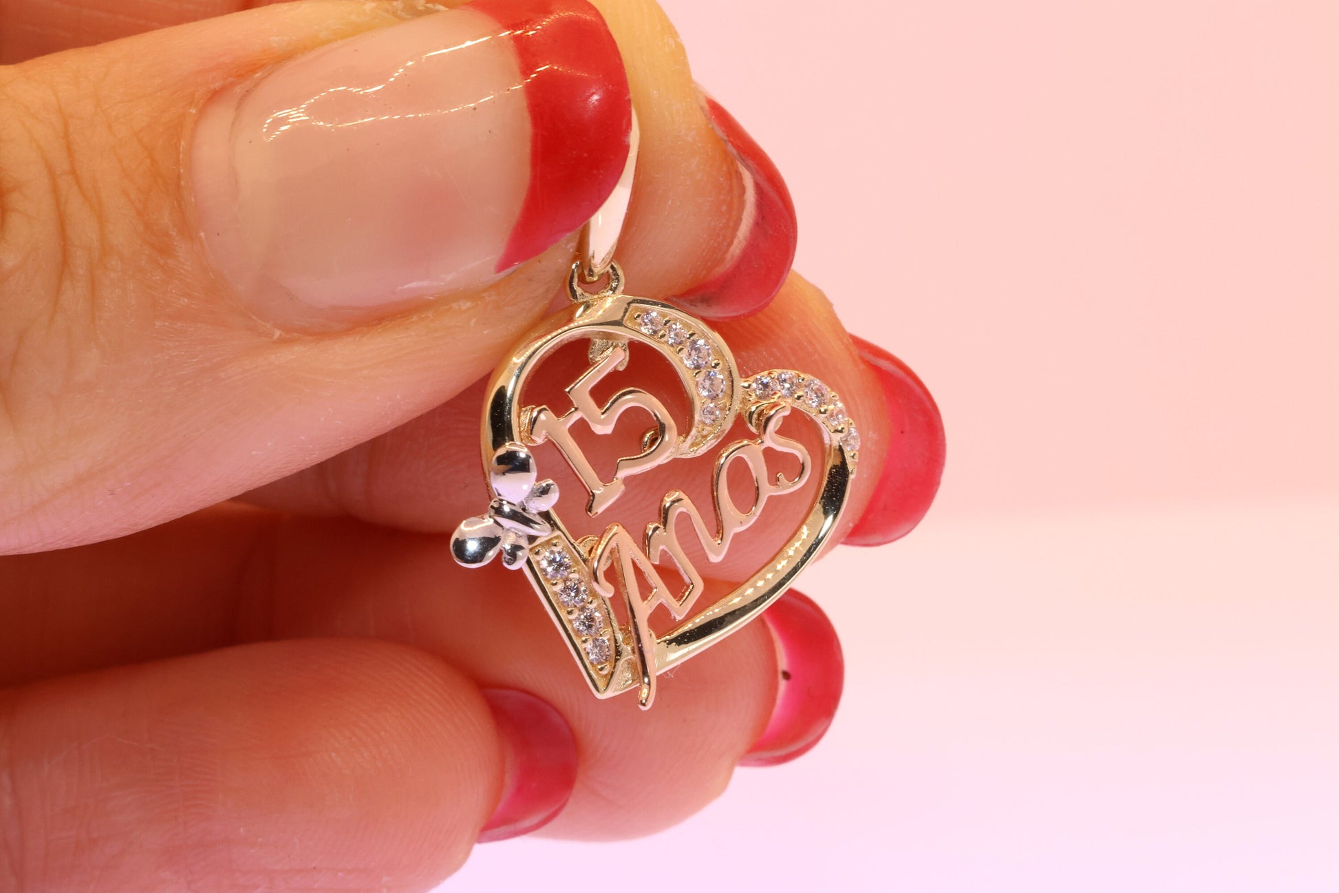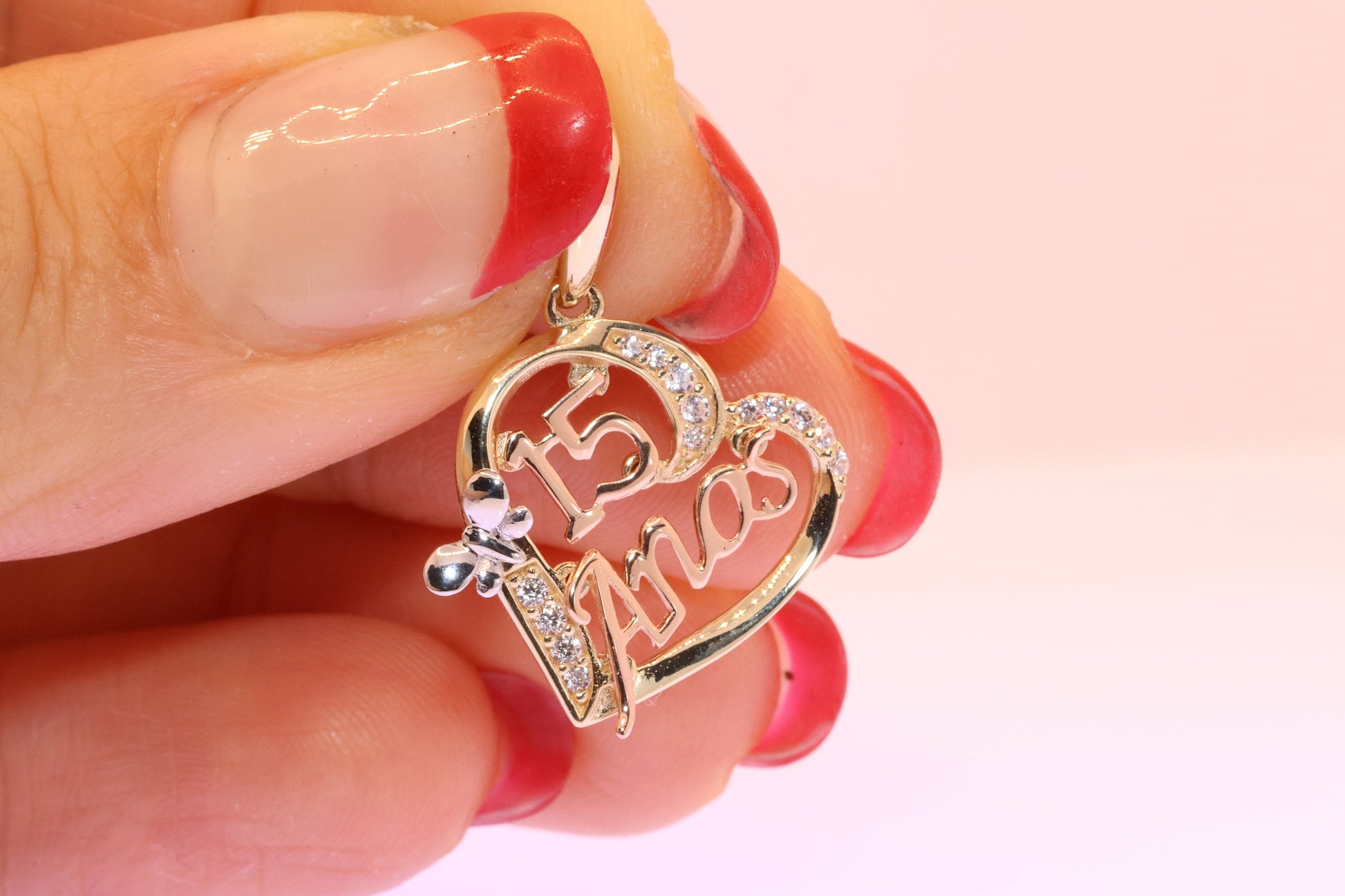 14K Gold 15 Anos Heart Butterfly Quinceanera Pendant