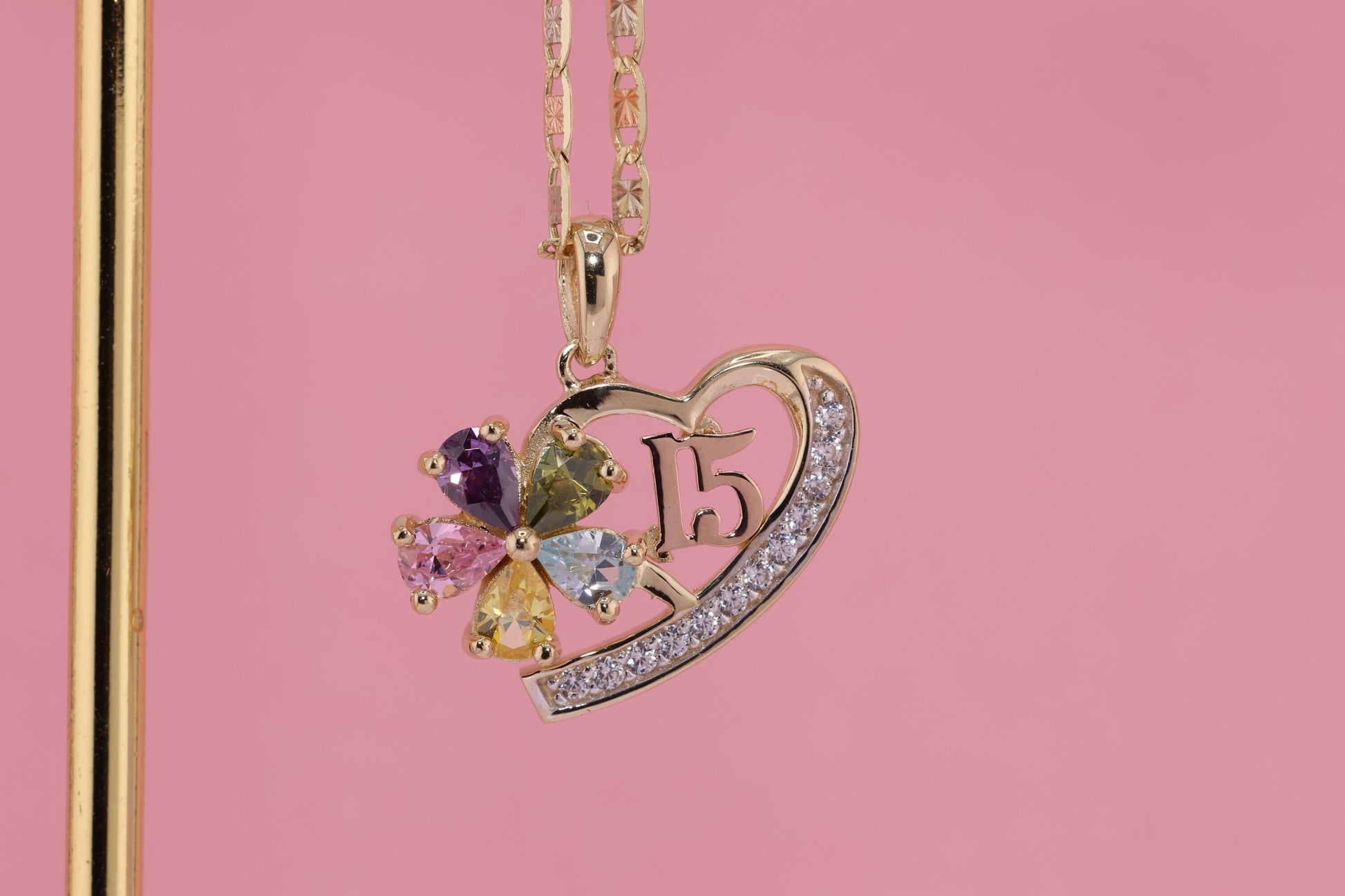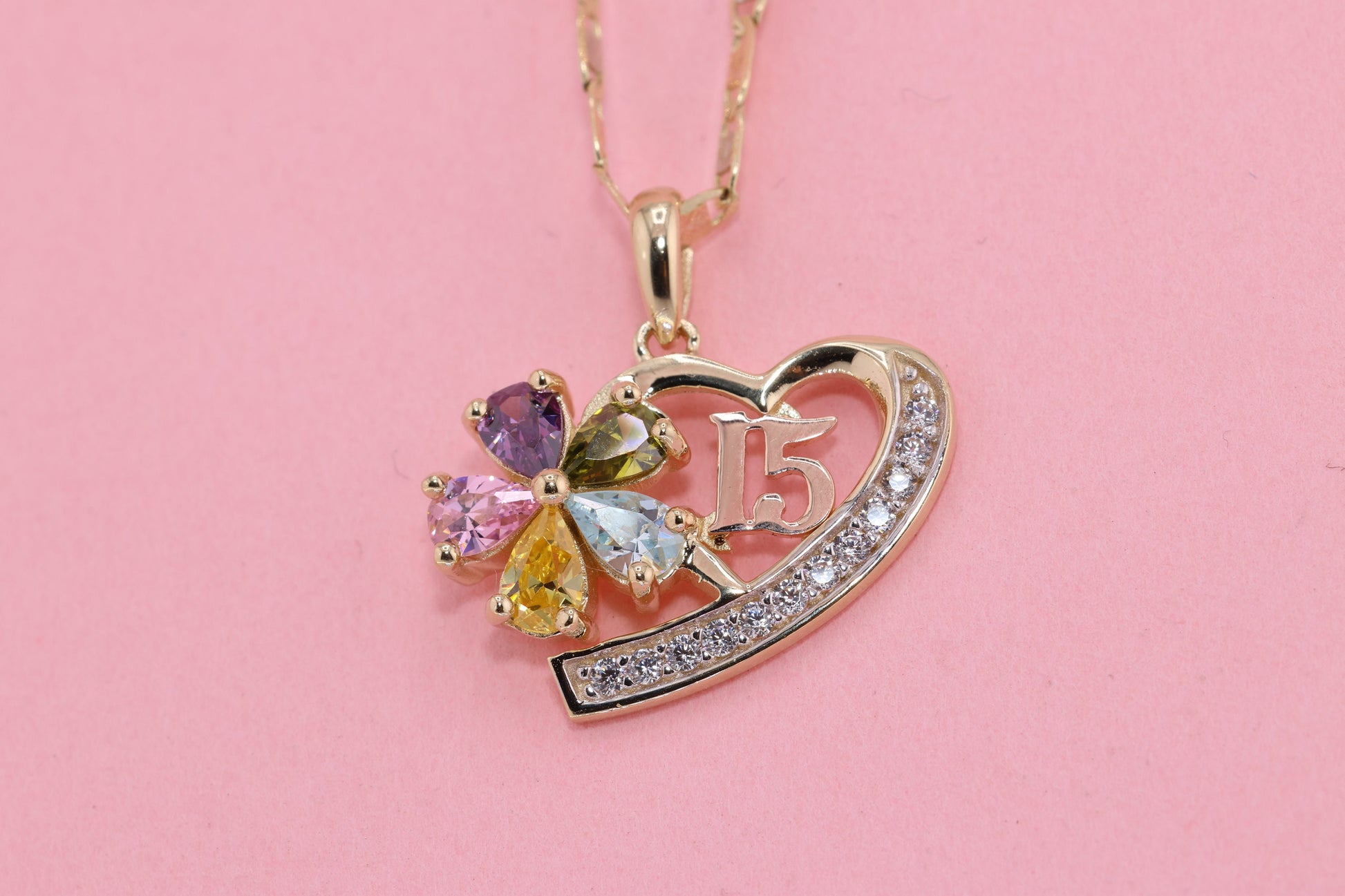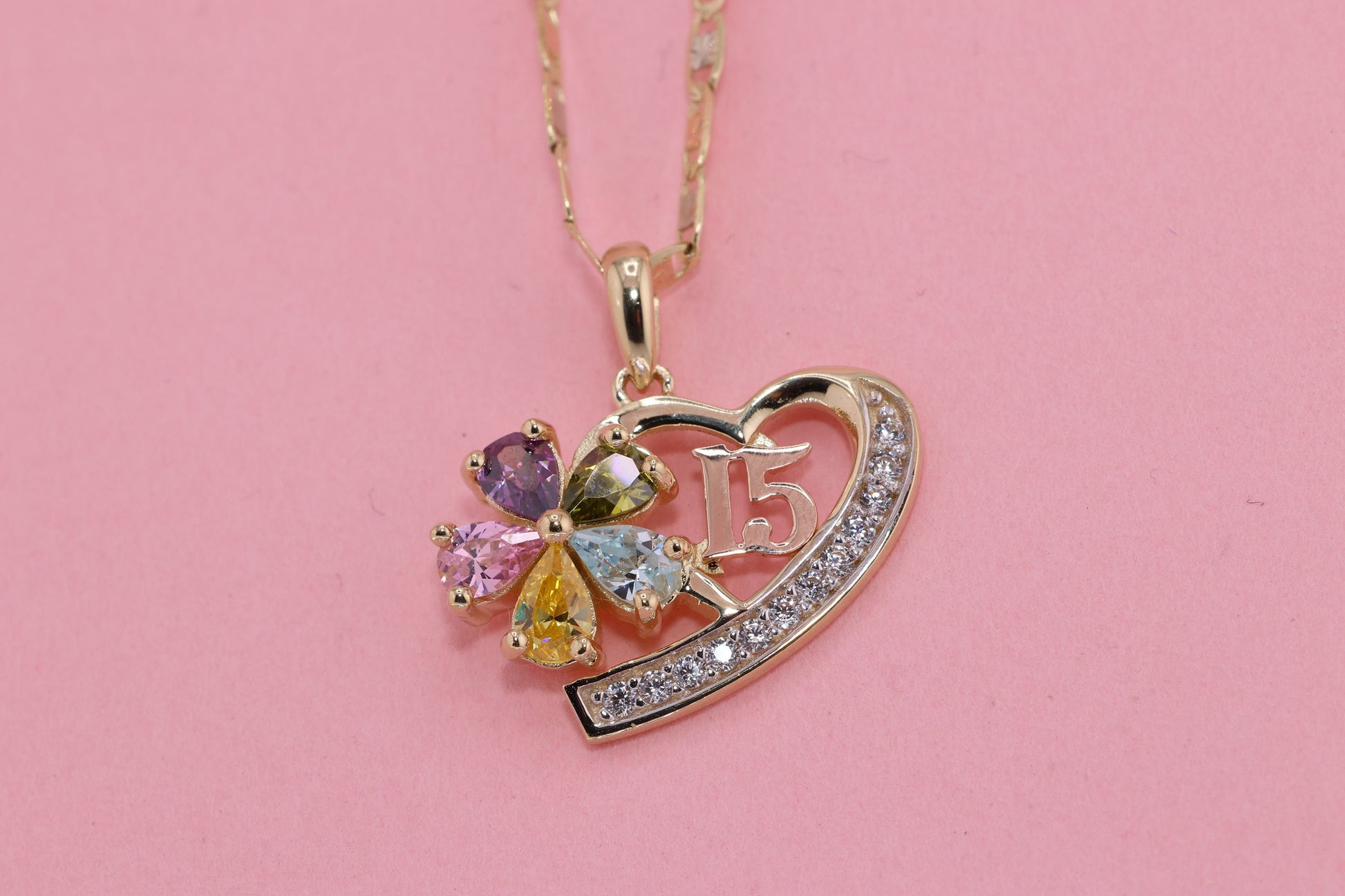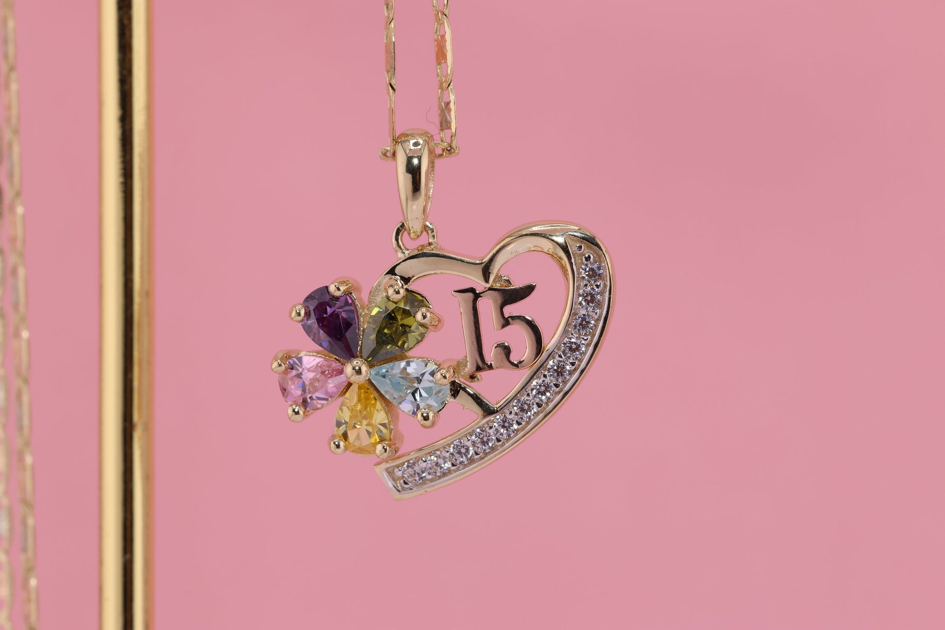 14K Gold 15 Anos Quinceanera Crown Pendant A