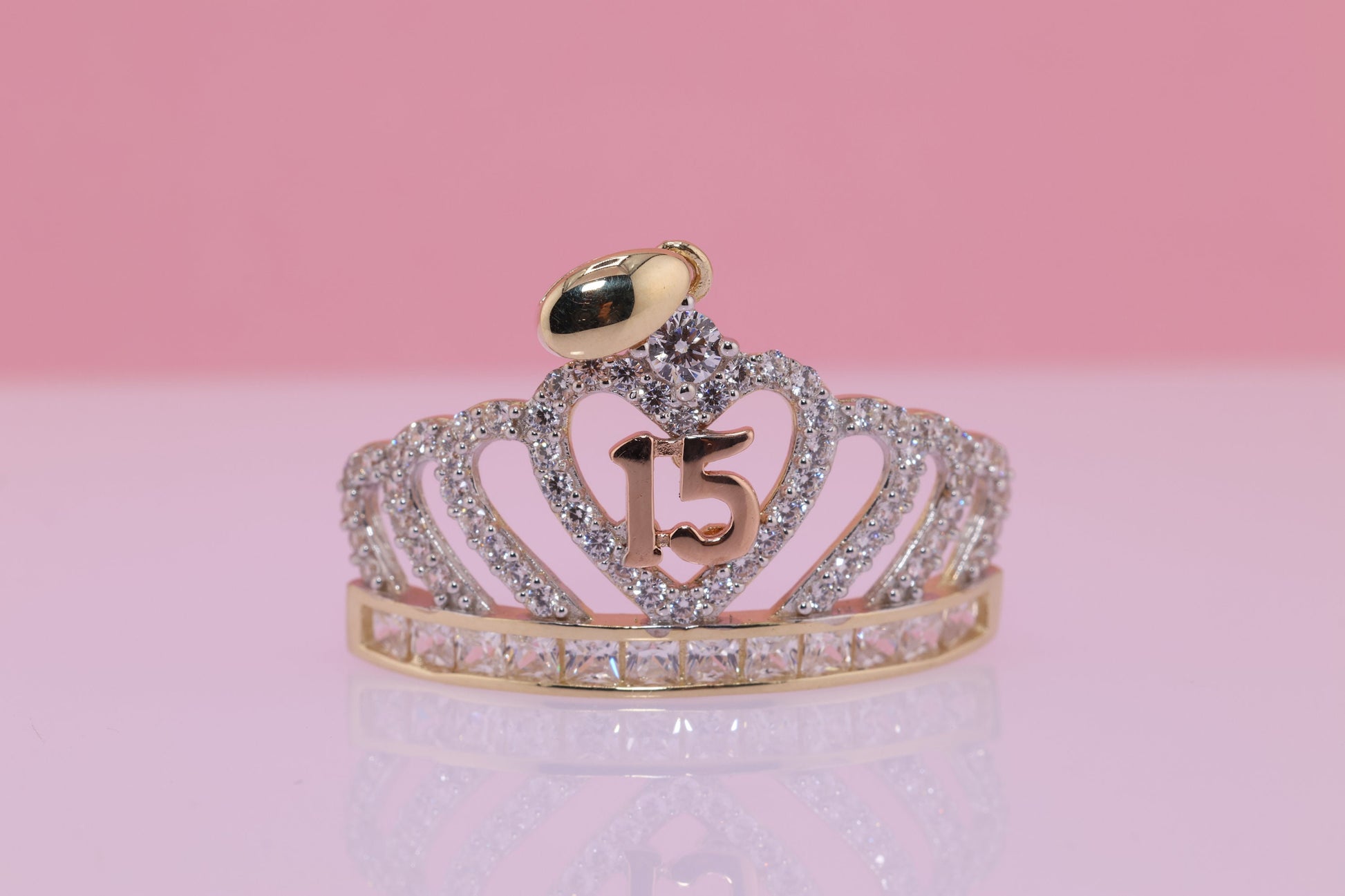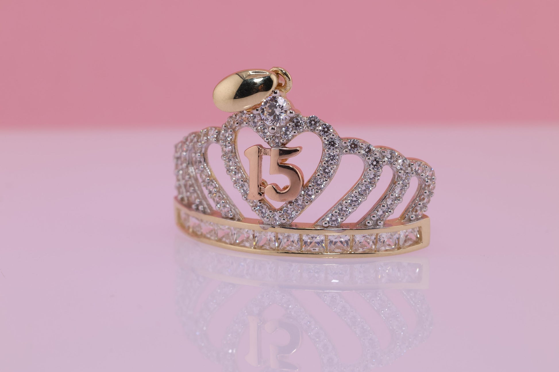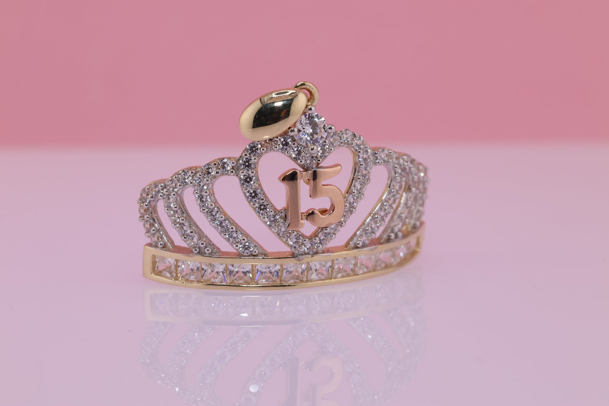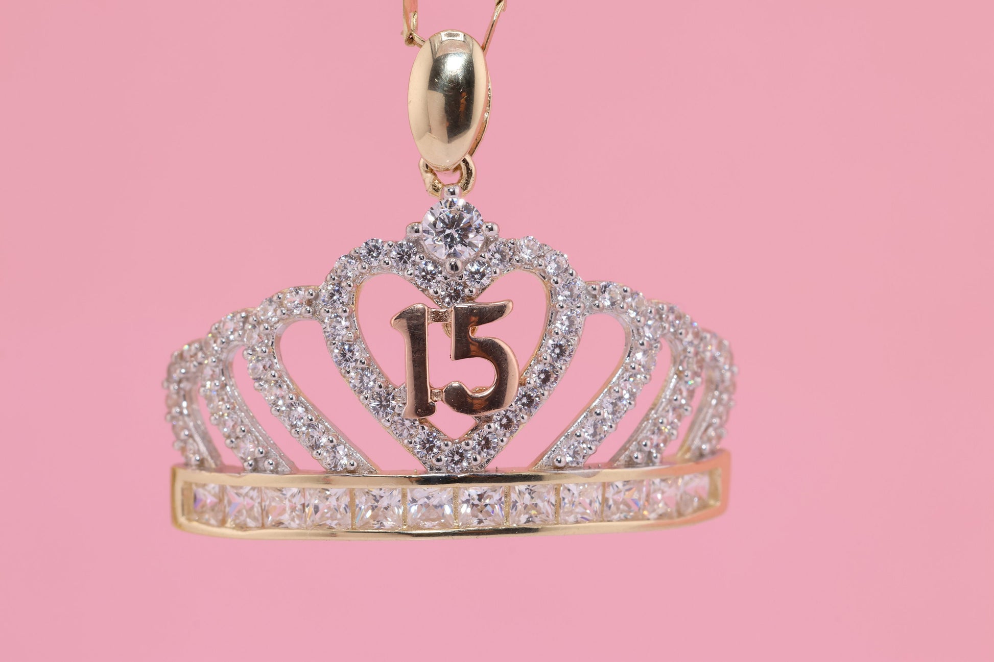 14K Gold 15 Anos Quinceanera Crown Pendant C