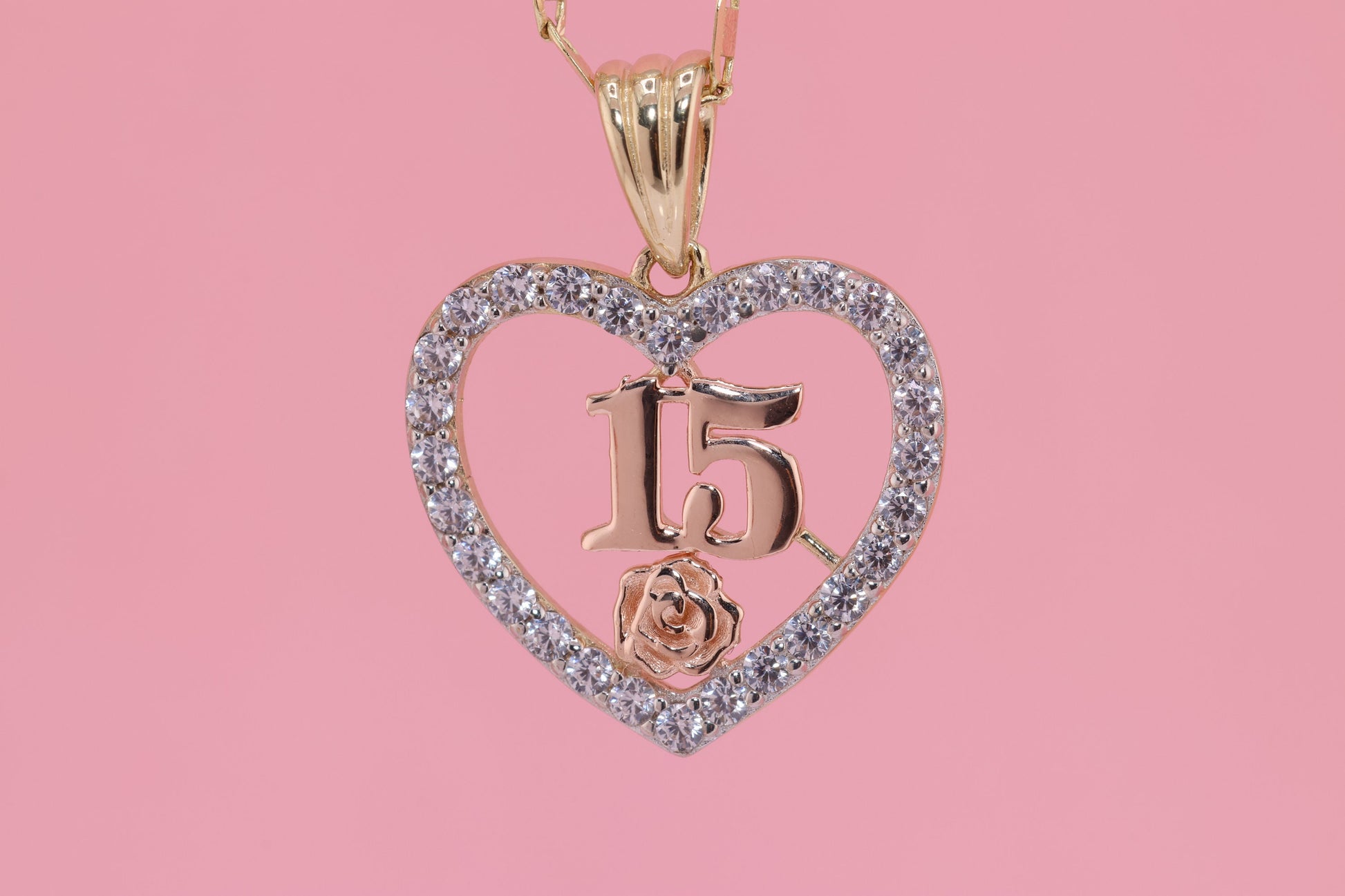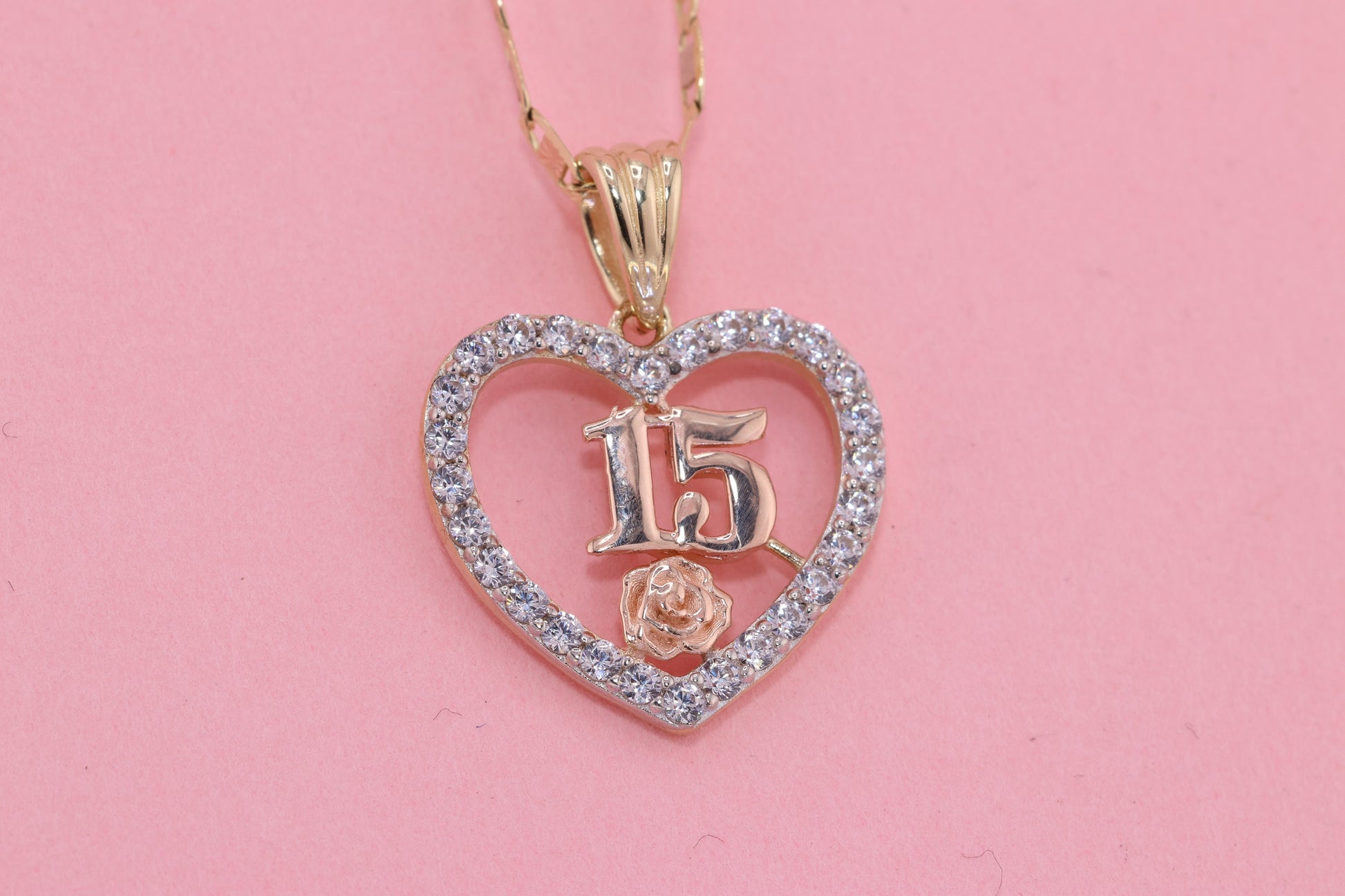 14K Gold 15 Anos Quinceanera Heart Pendant G