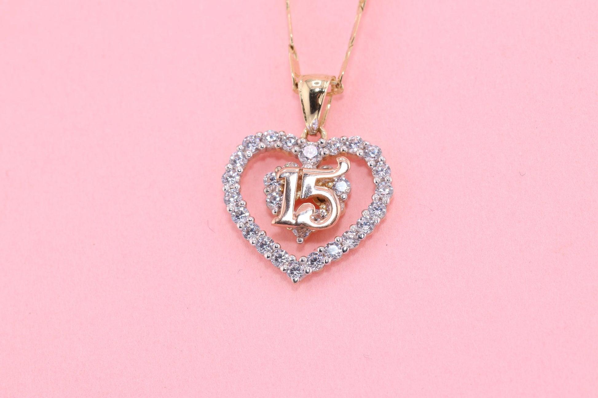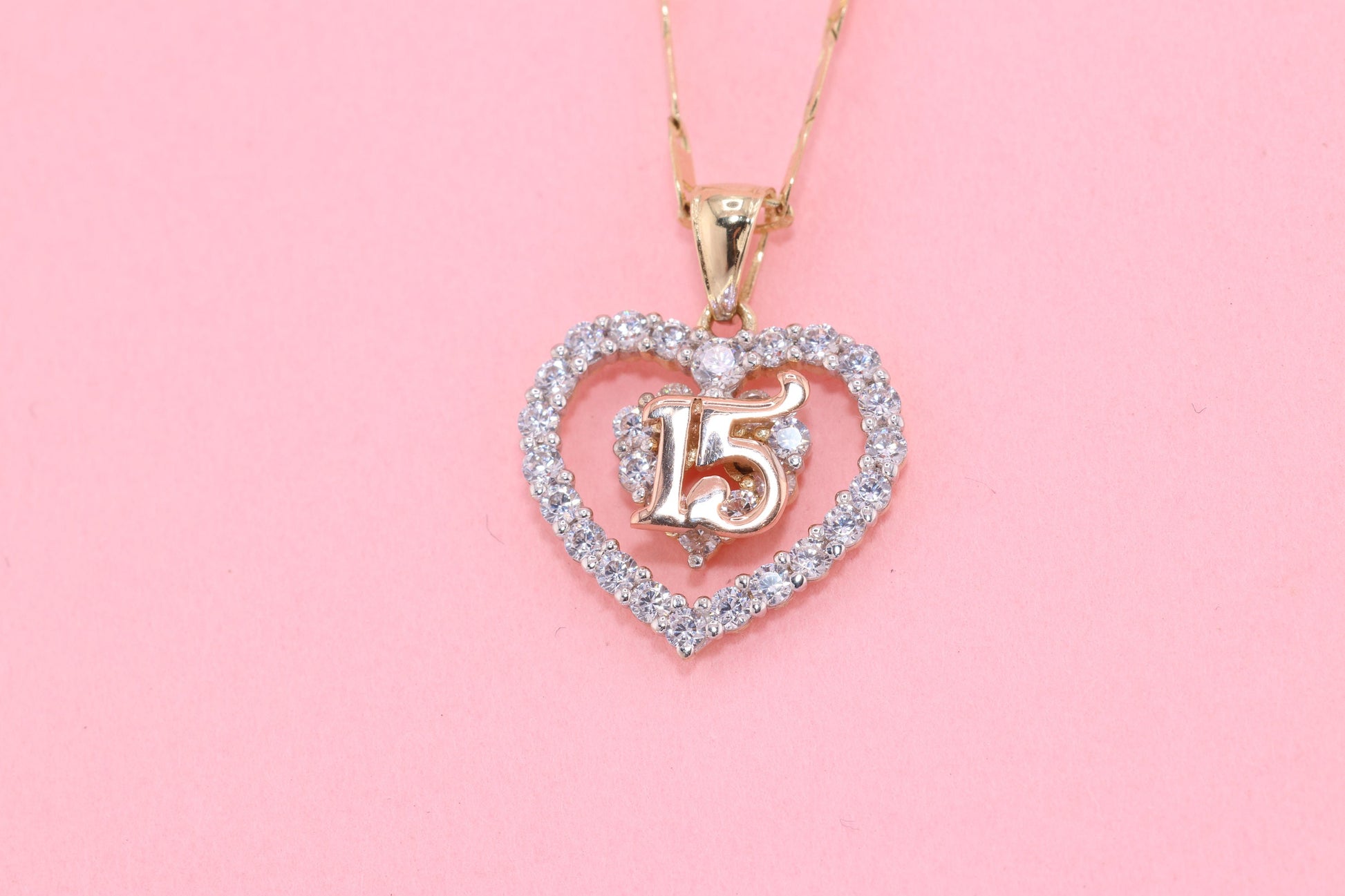 14K Gold 15 Anos Quinceanera Heart Pendant H