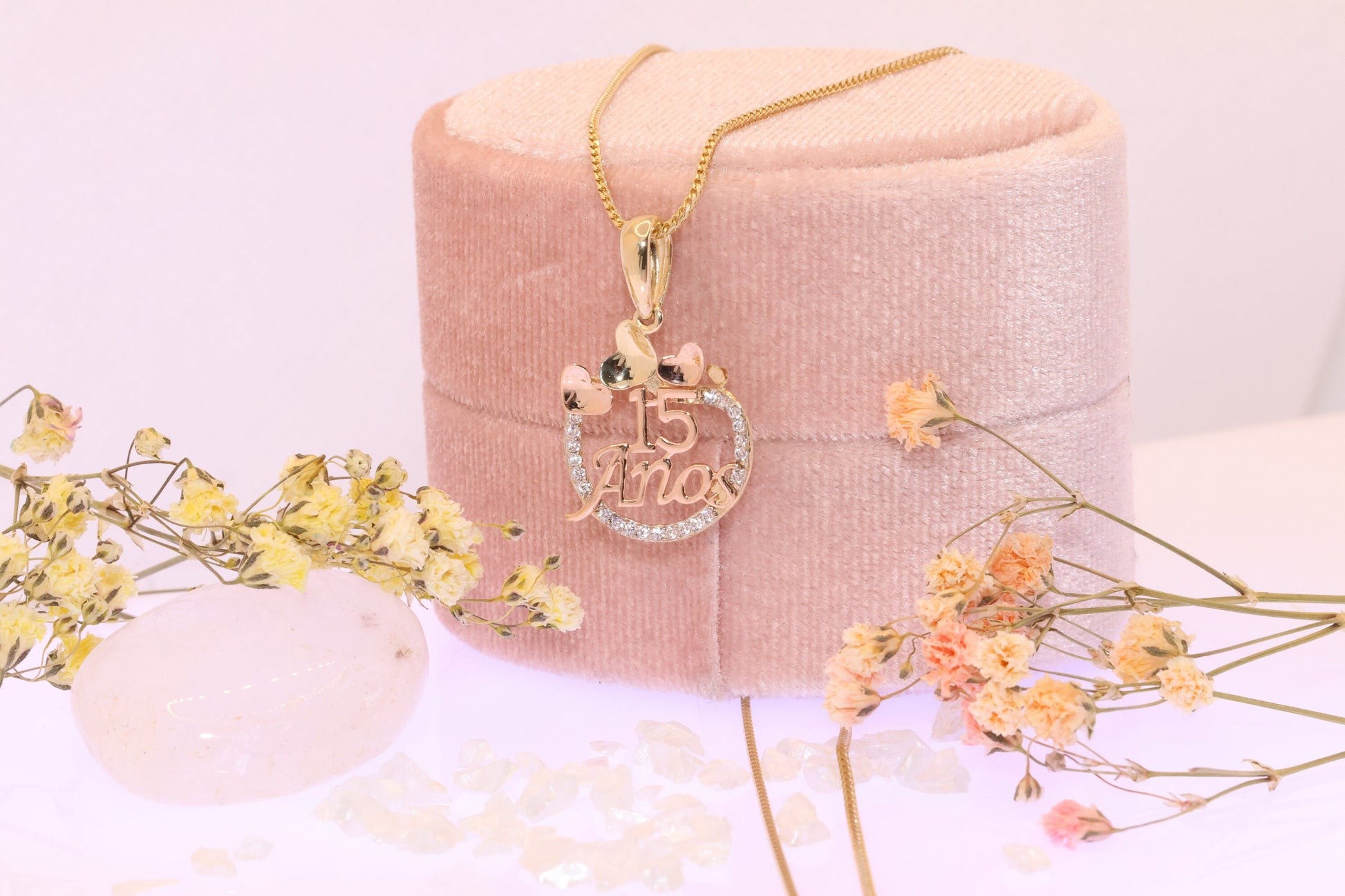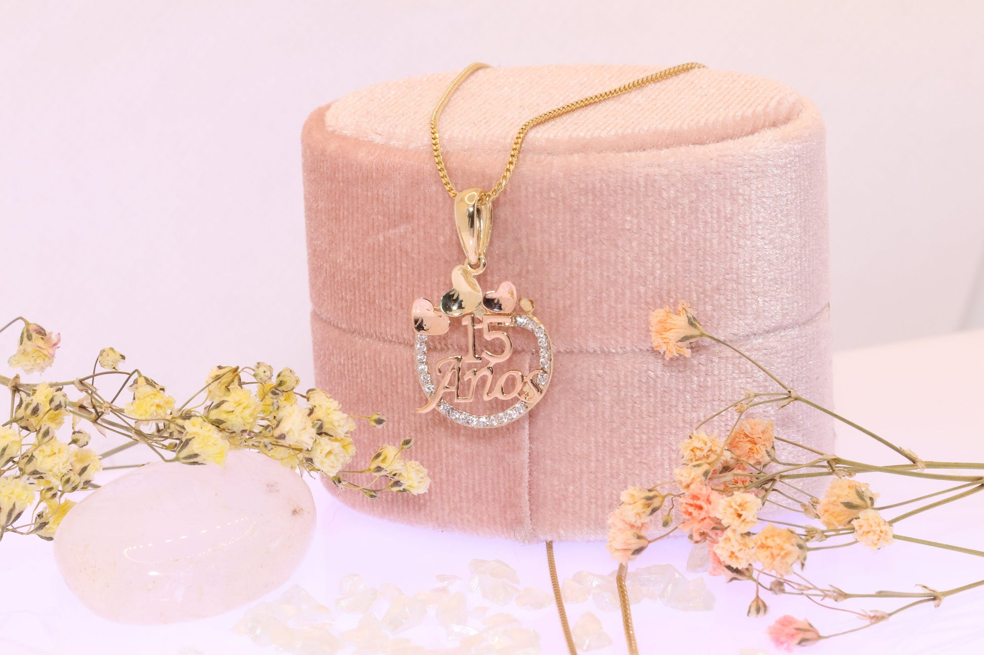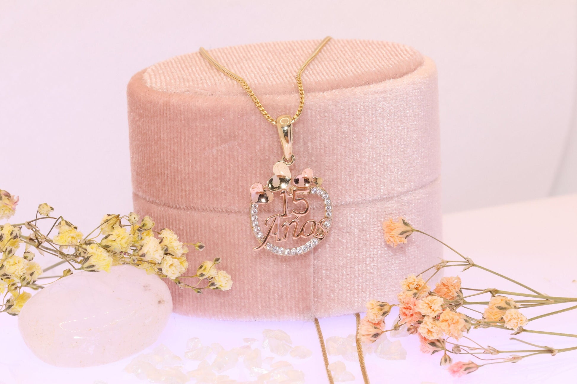 14K Gold 15 Anos Quinceanera Heart Pendant E