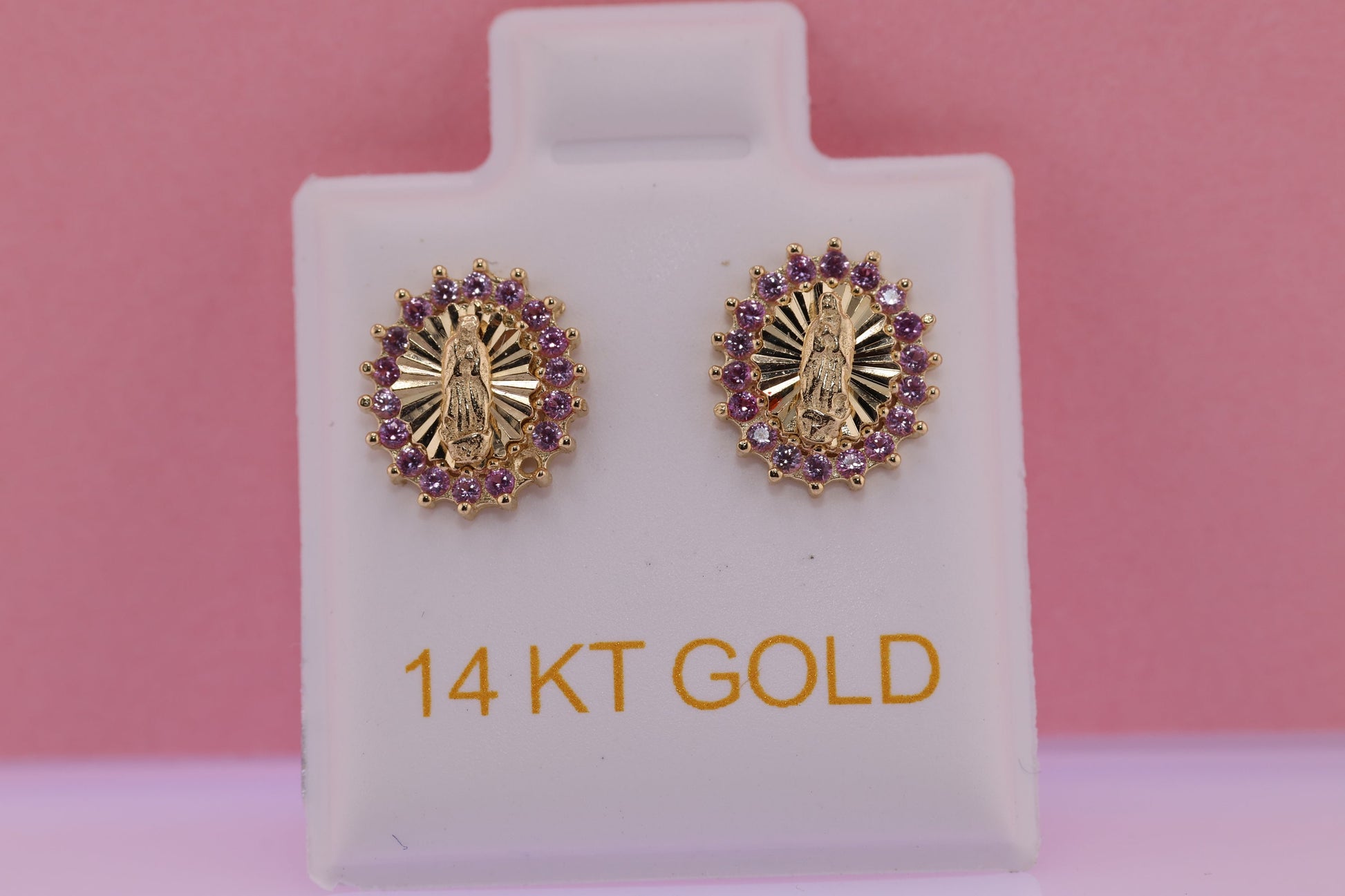 14K Gold Gold Virgin Mary Virgen Maria Lady Guadalupe Screw-back Earrings