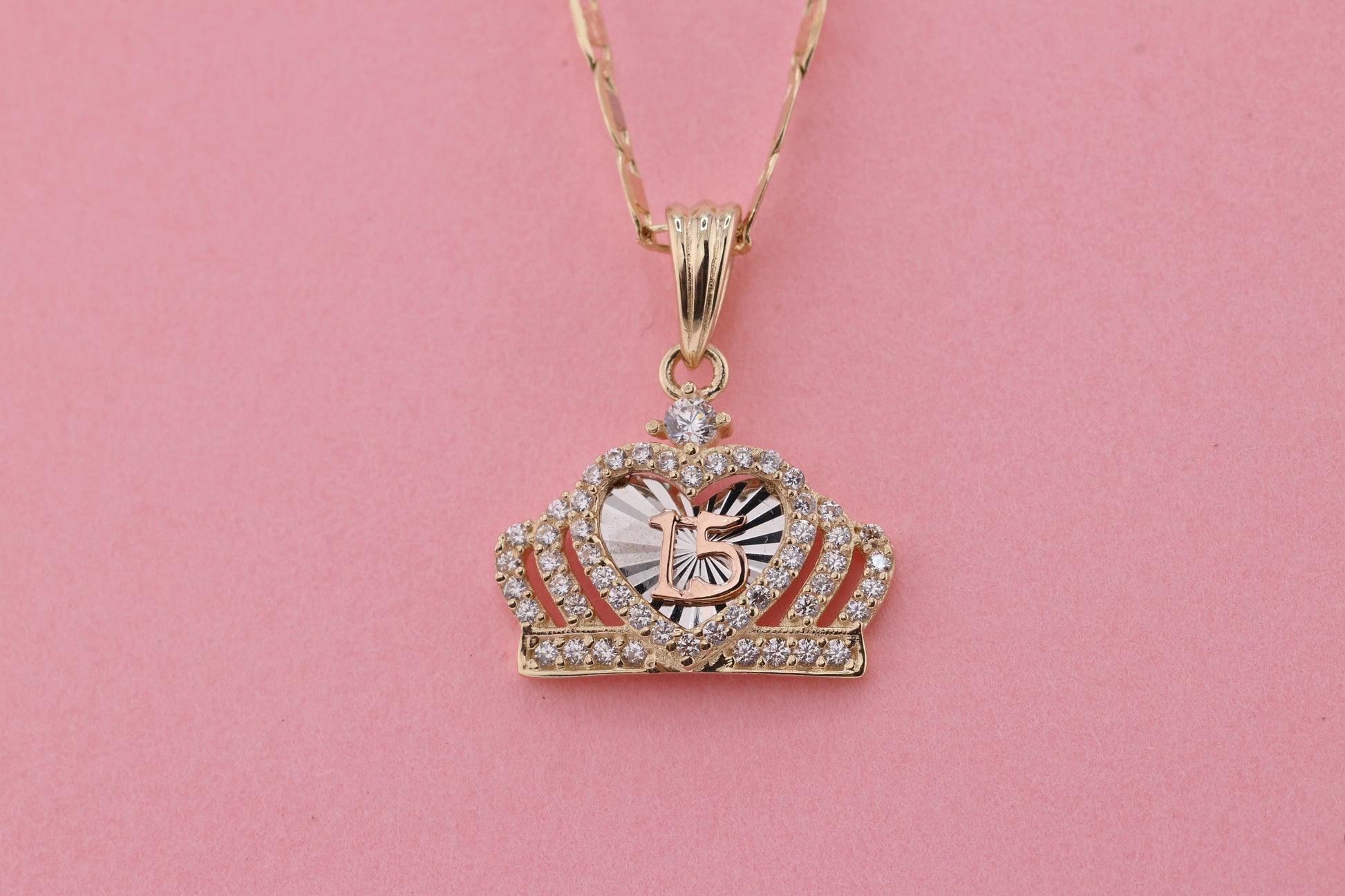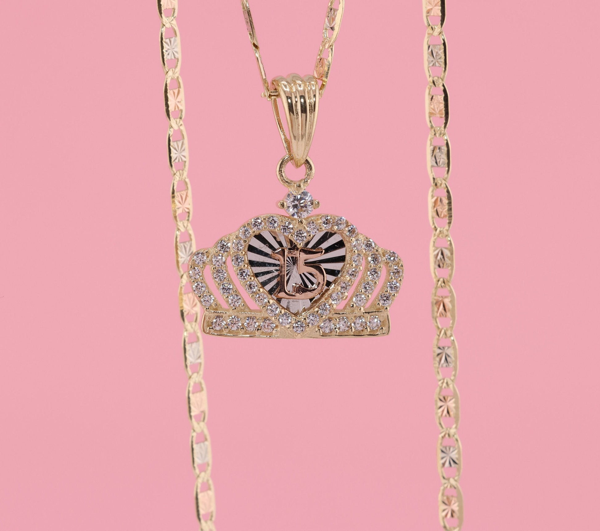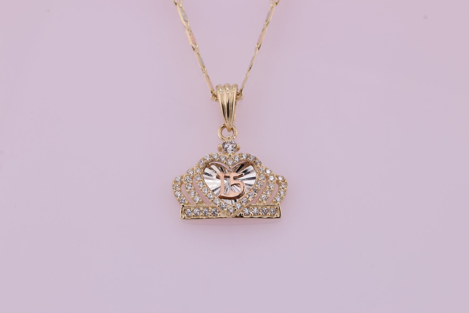 14K Gold Tiny Crown 15 Anos Quinceanera Pendant