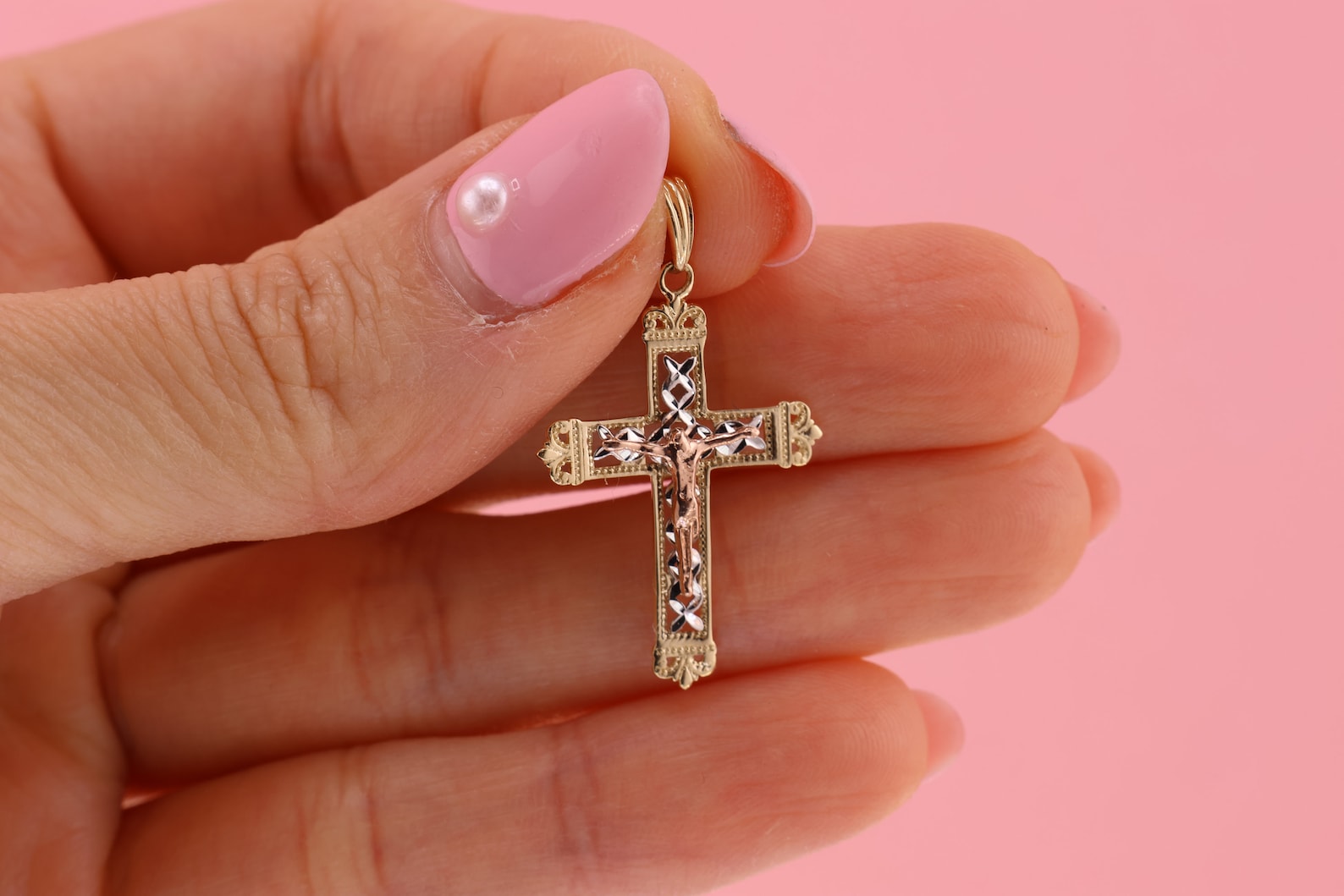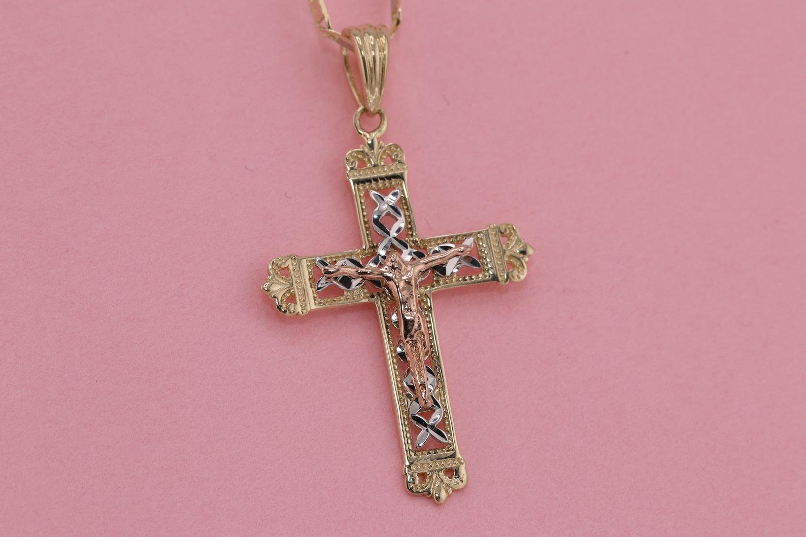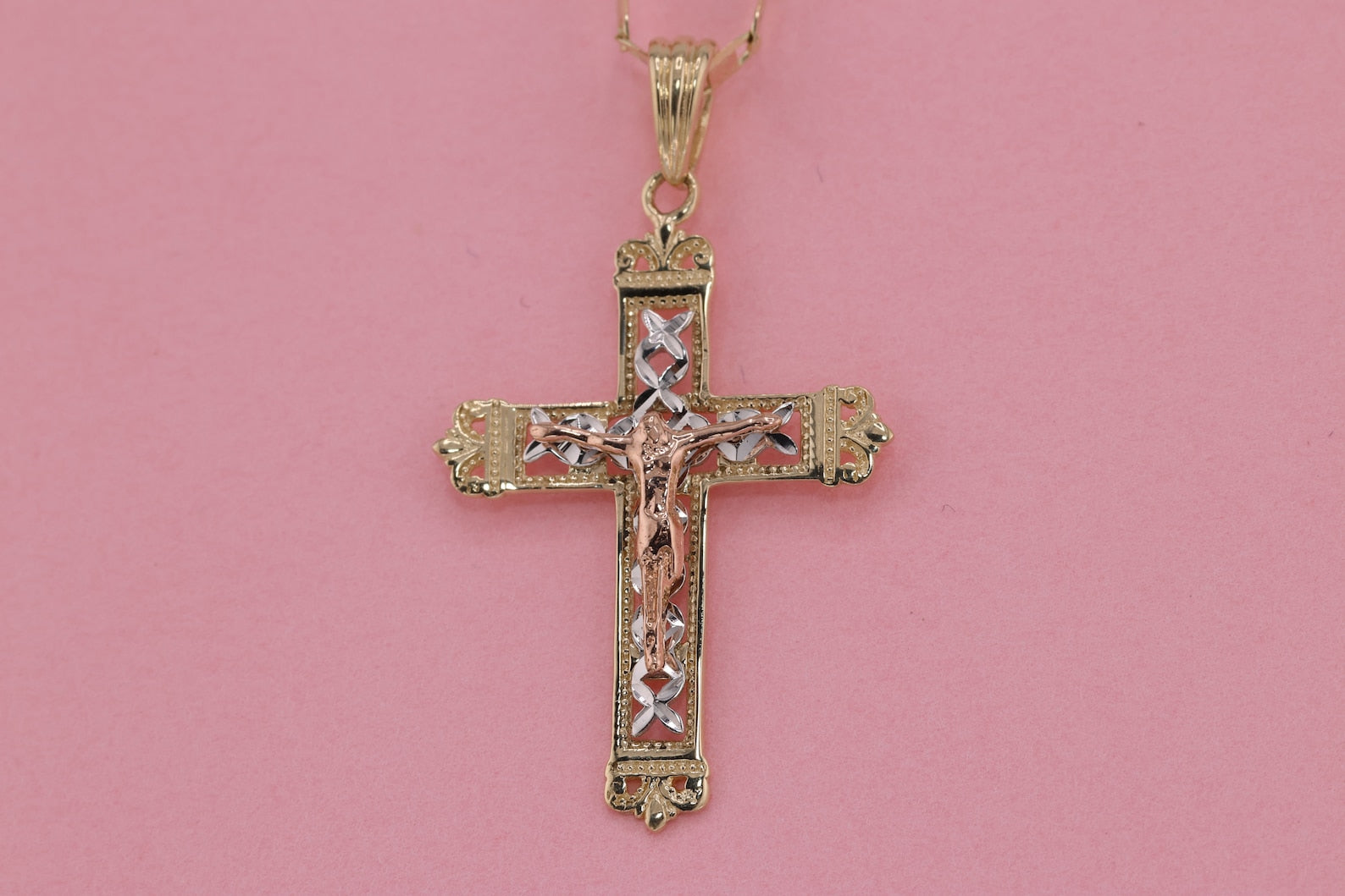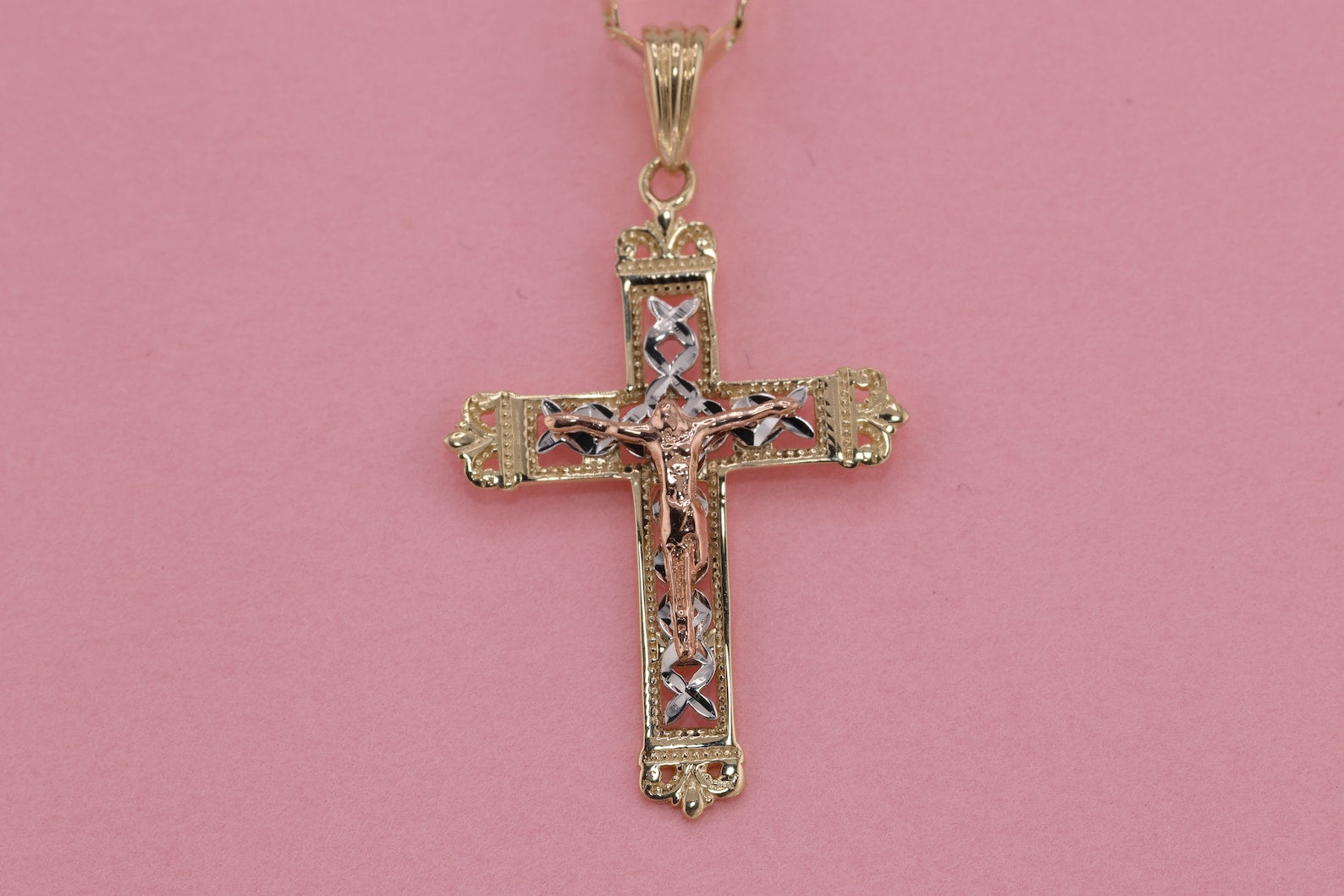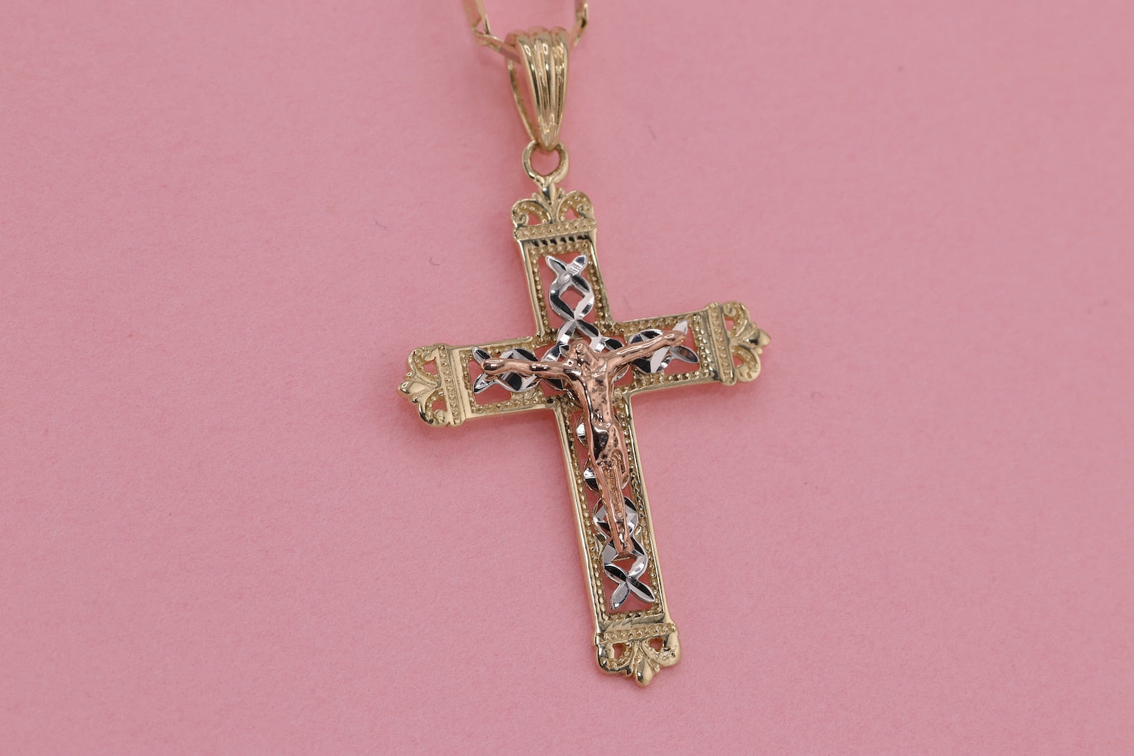 14k Solid Gold Cross Jesus Crucifix Crucifijo Charm Pendant G