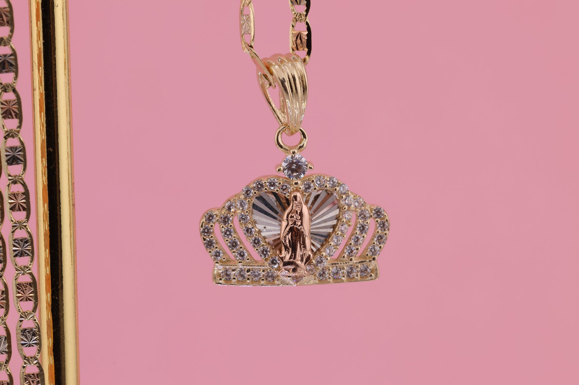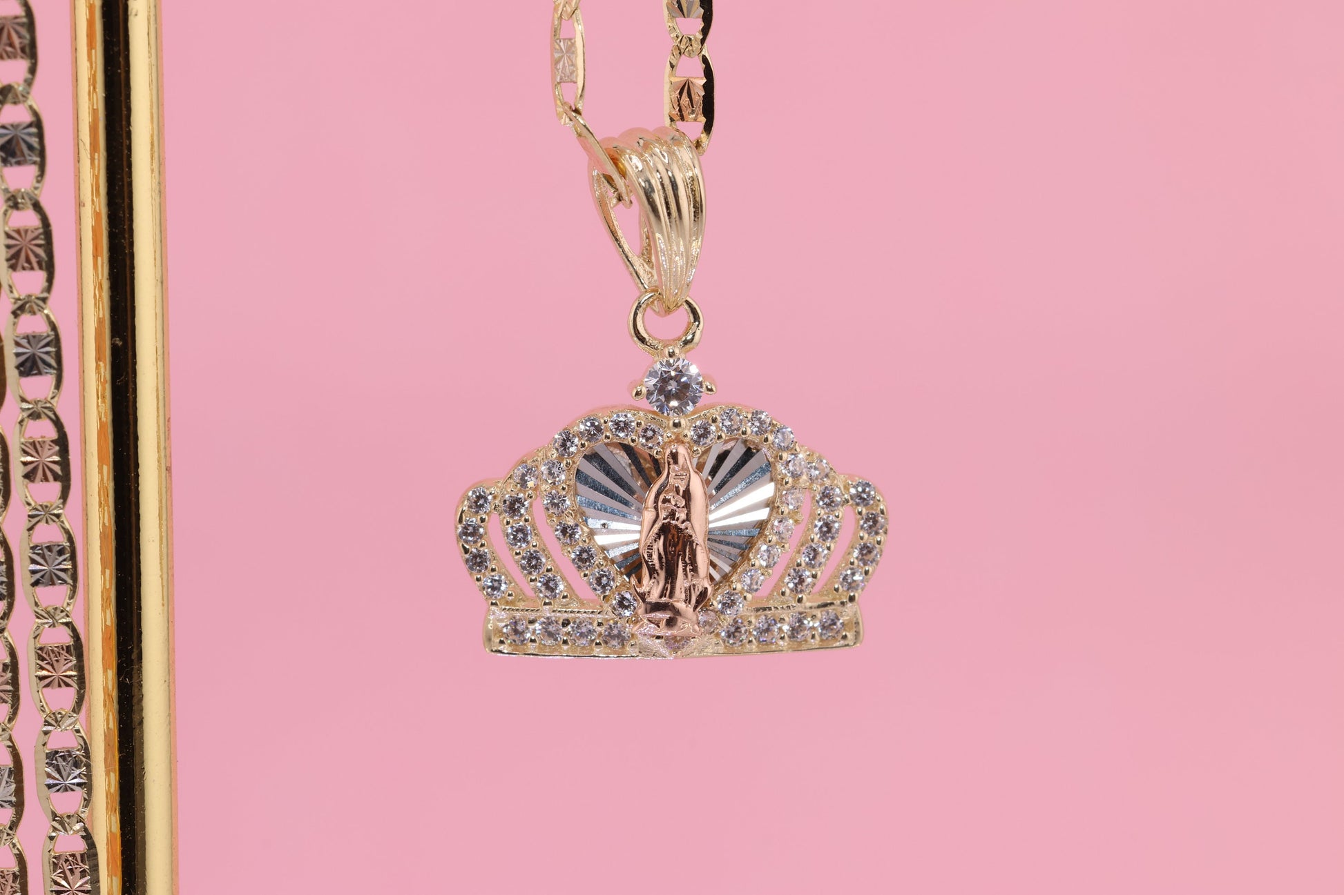 14k Solid Gold Tiny Virgin Mary Virgen Maria Lady Guadalupe Pendant