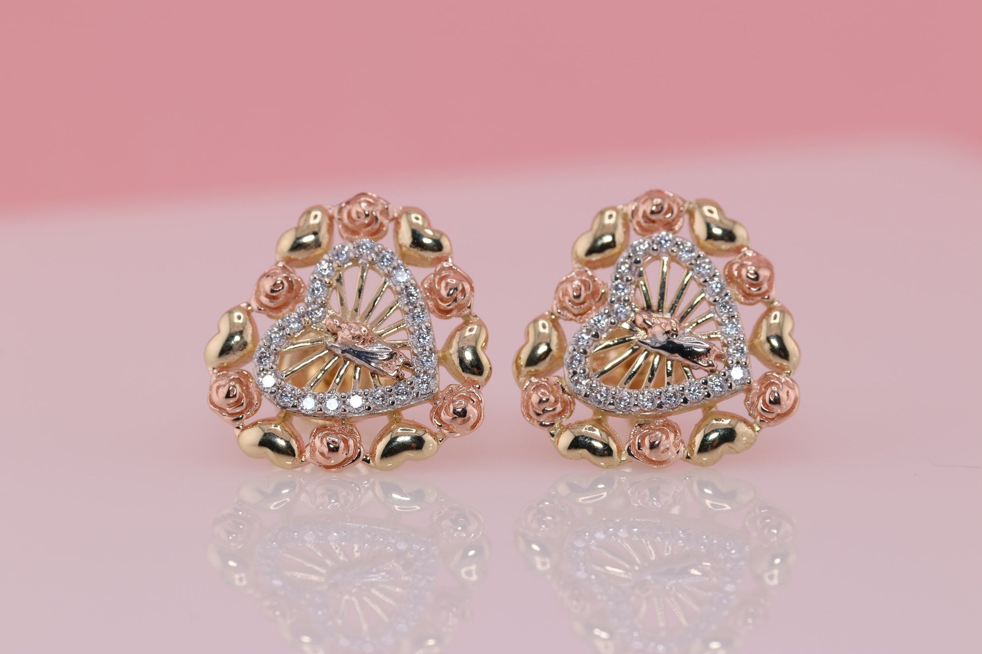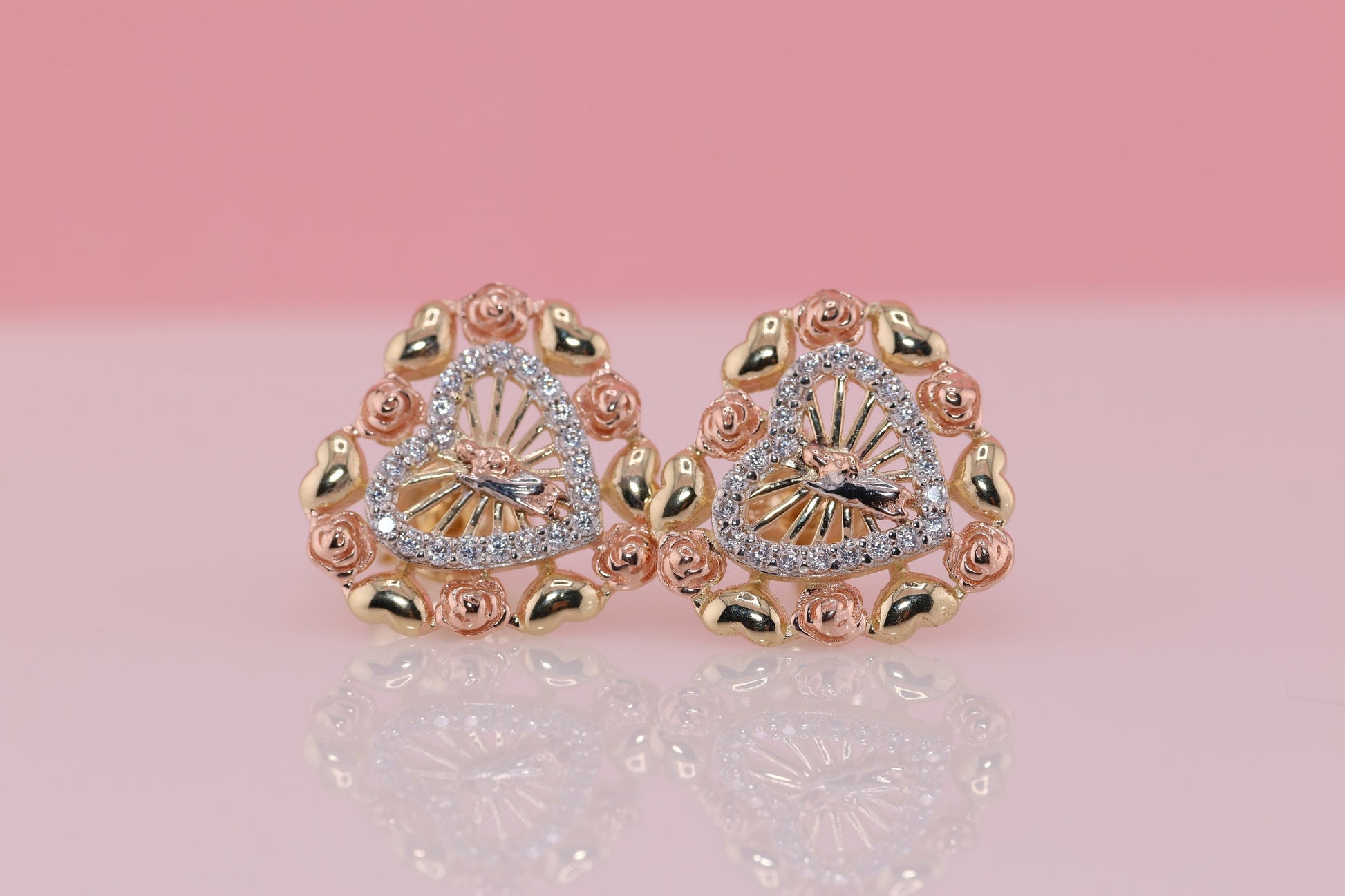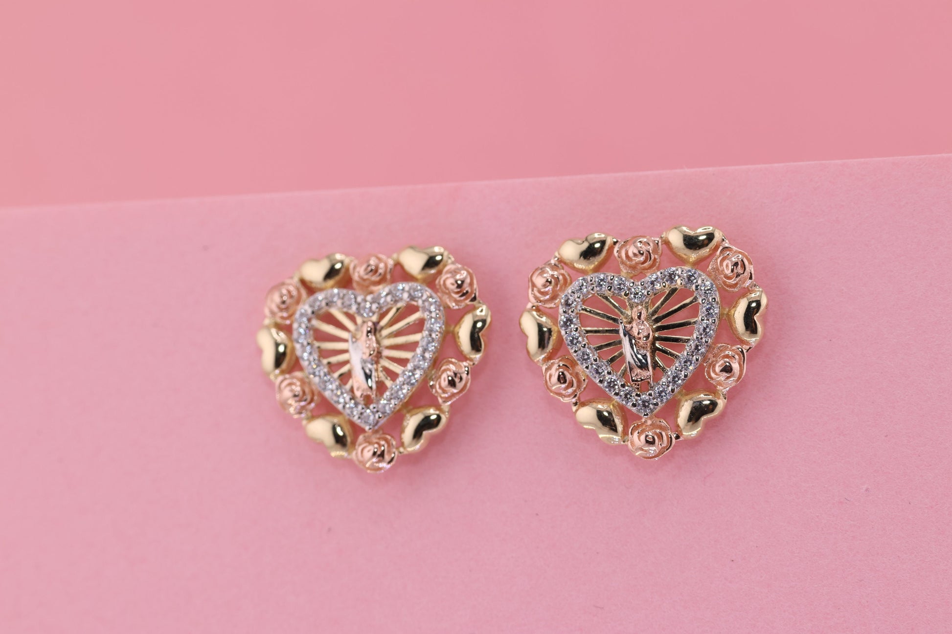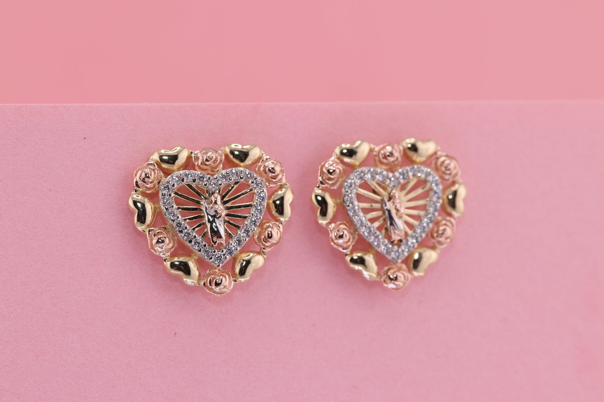 14k Solid Gold Virgin Mary Virgen Maria Lady Guadalupe Earrings E