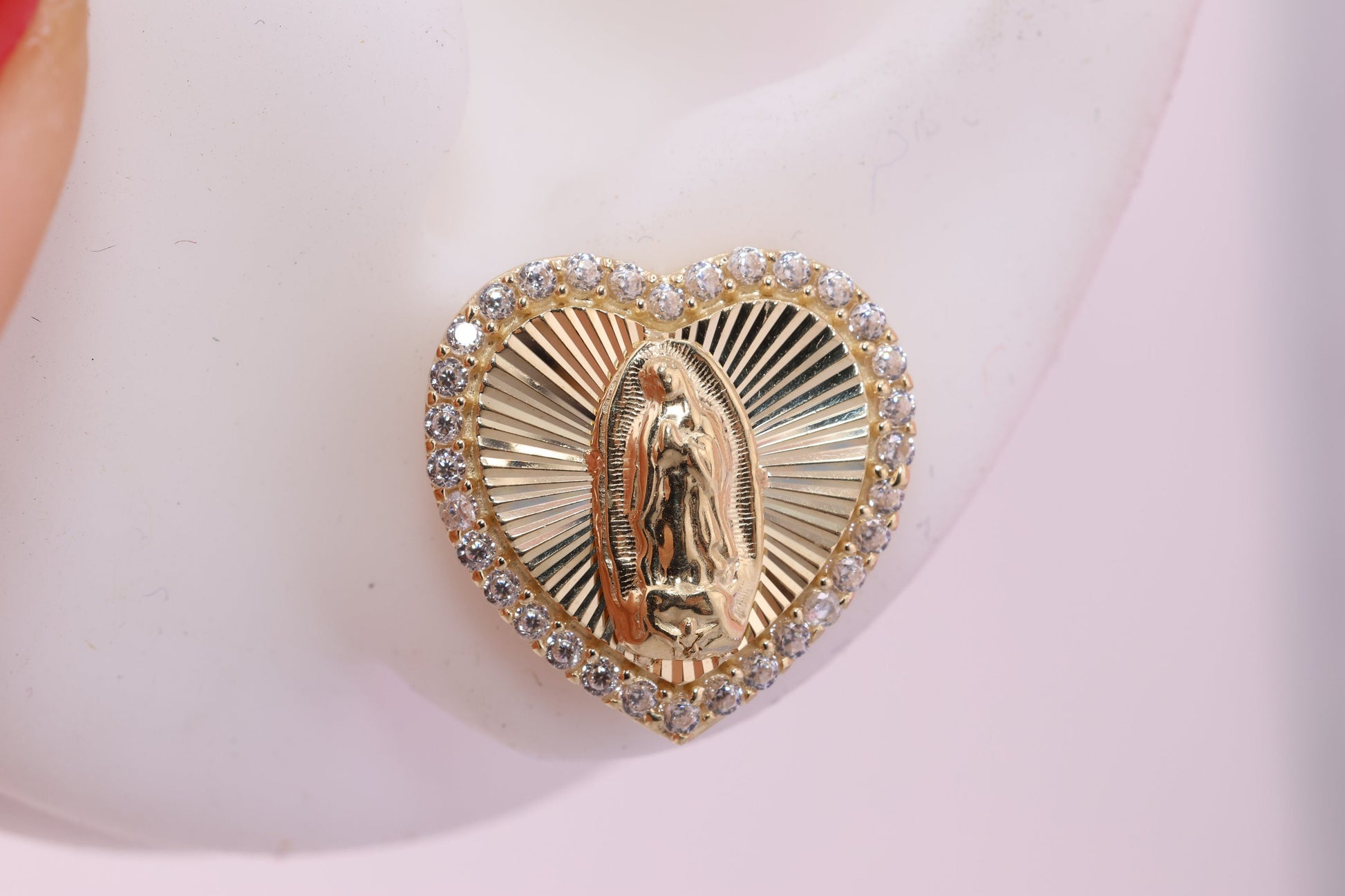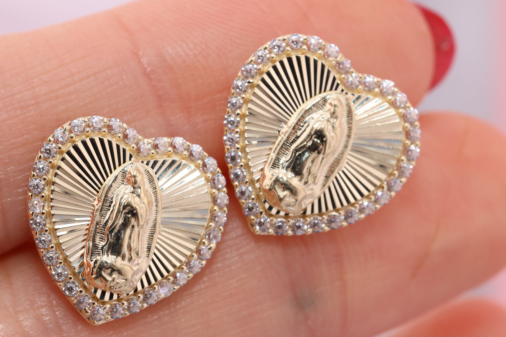 14k Solid Gold Virgin Mary Virgen Maria Lady Guadalupe Earrings G