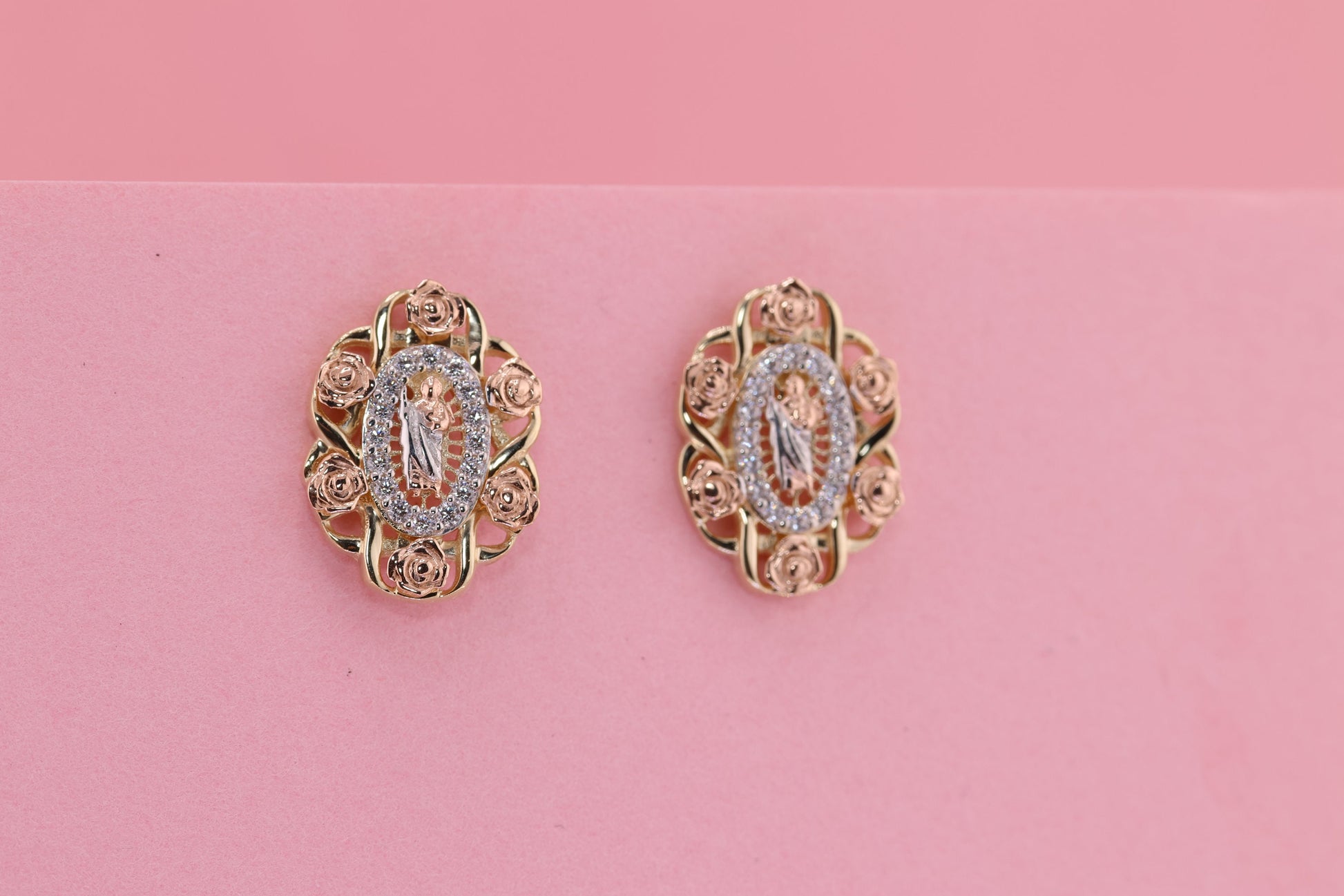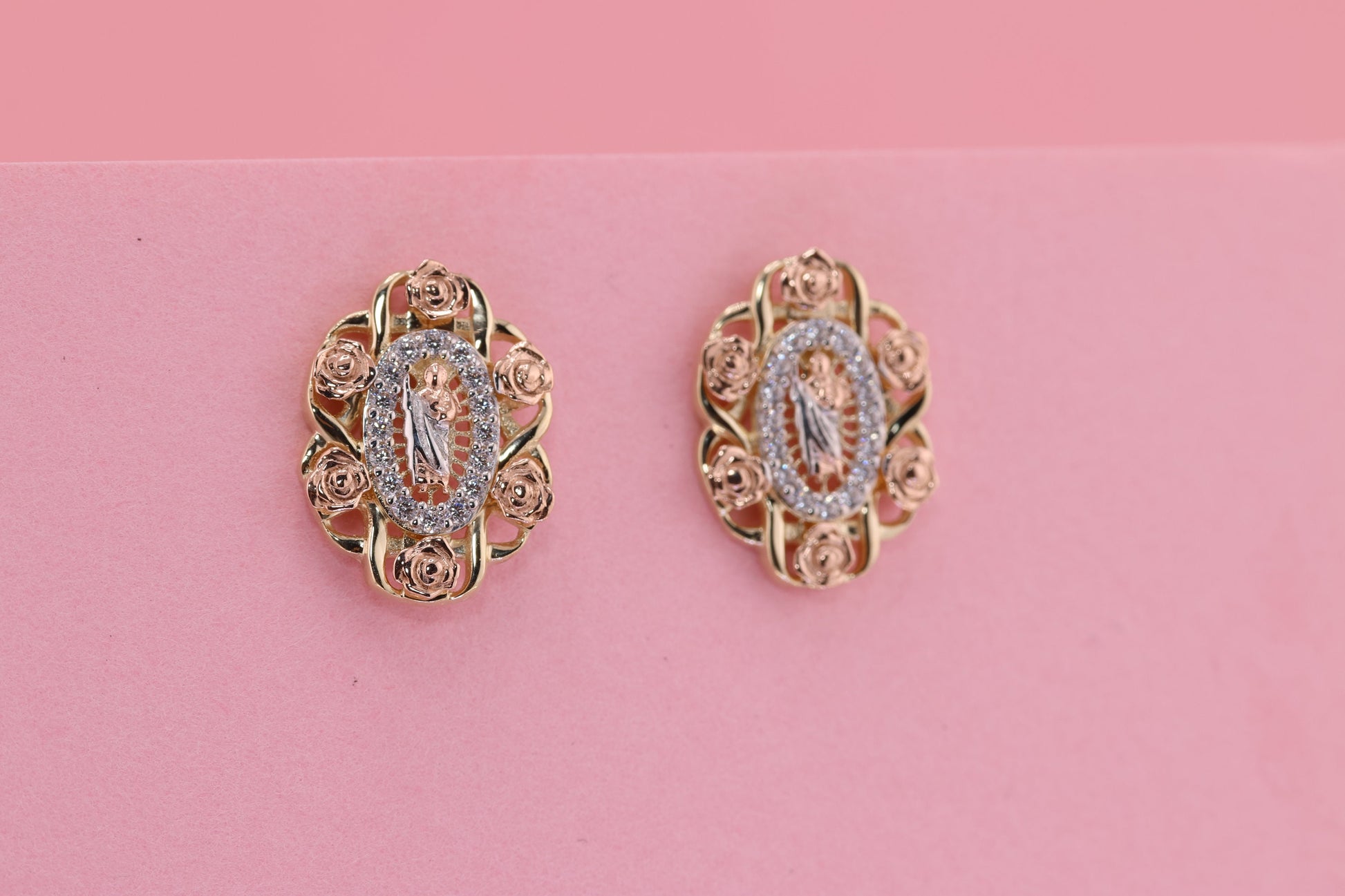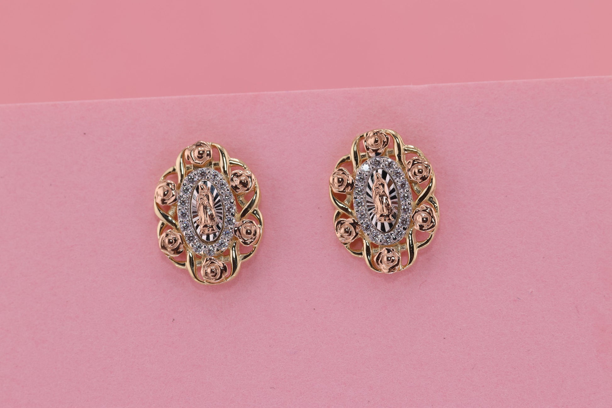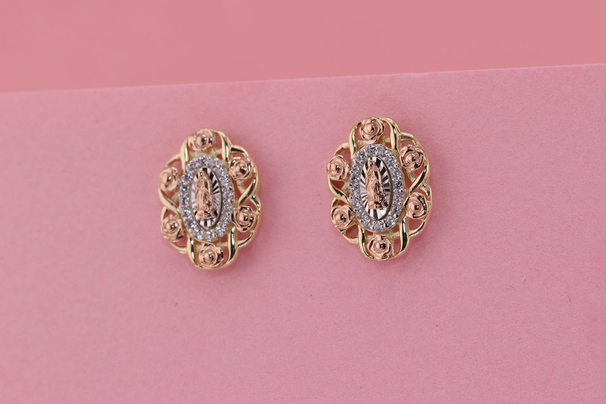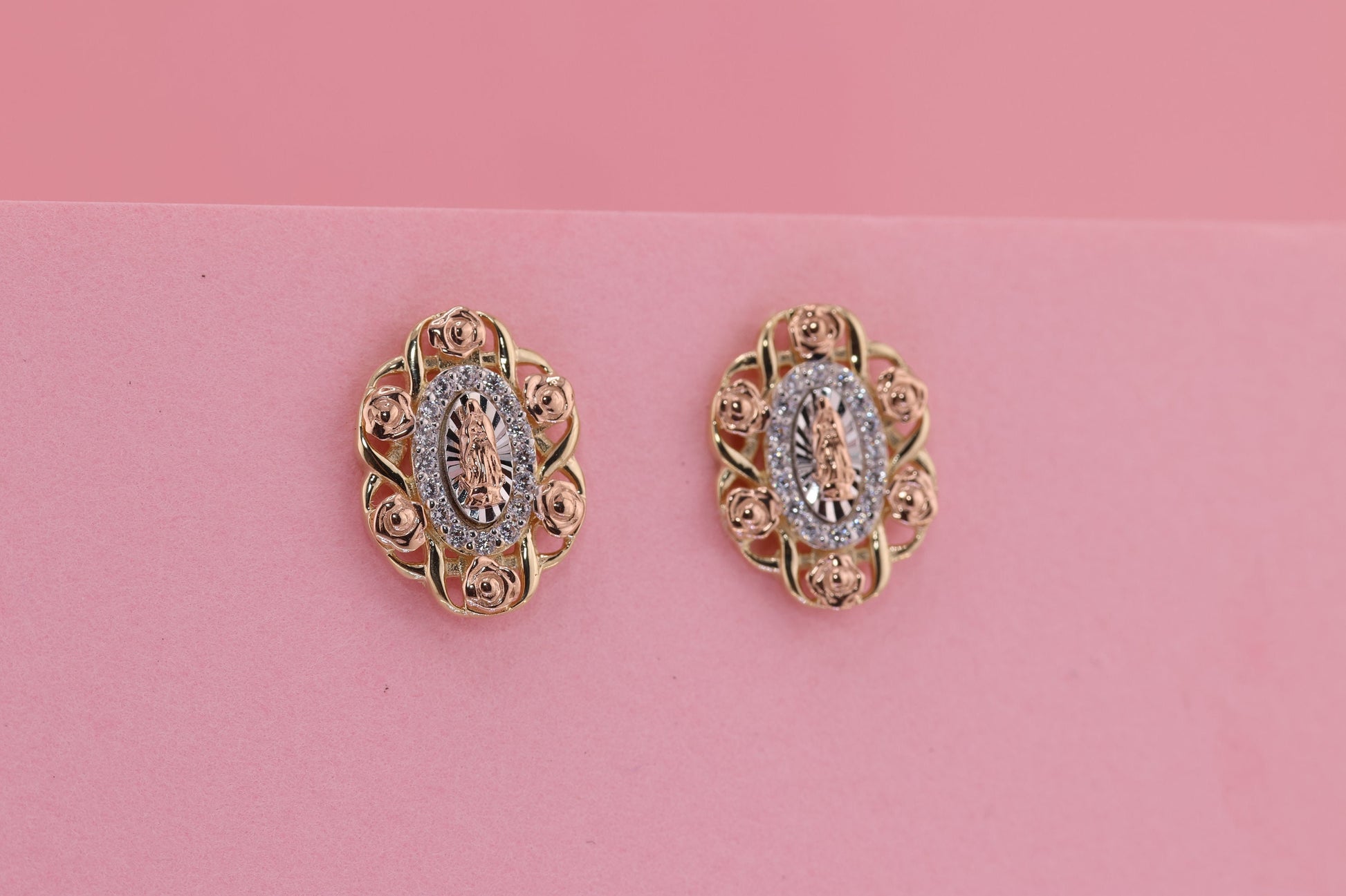 14k Solid Gold Virgin Mary Virgen Maria Lady Guadalupe Earrings F