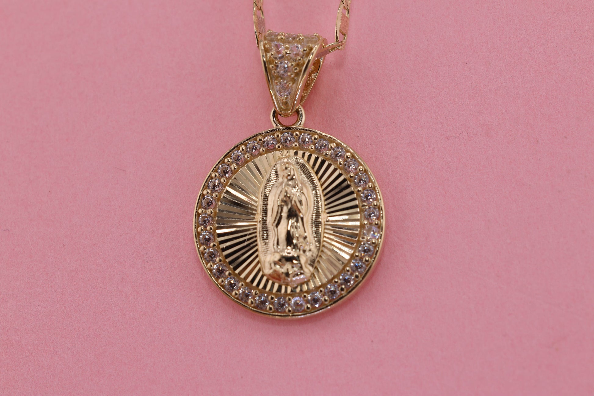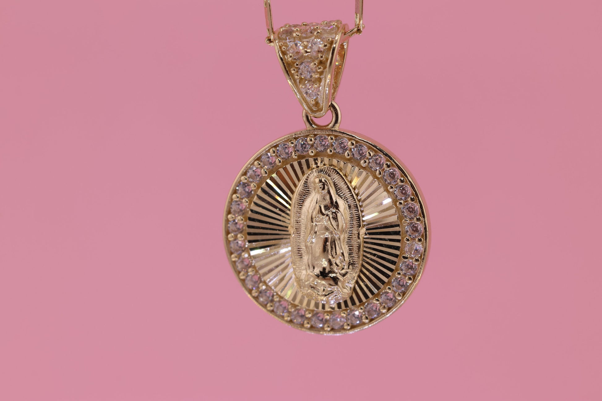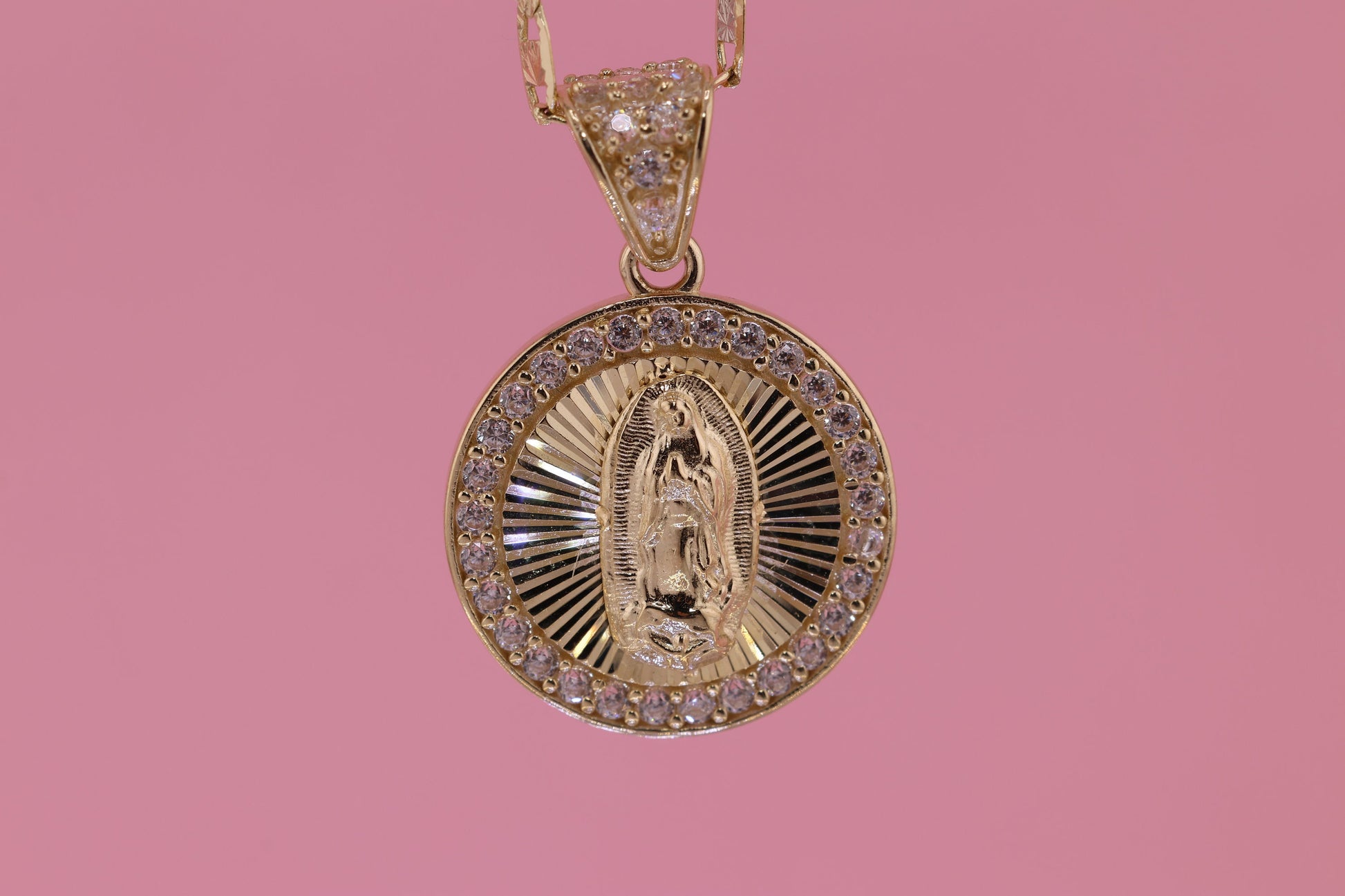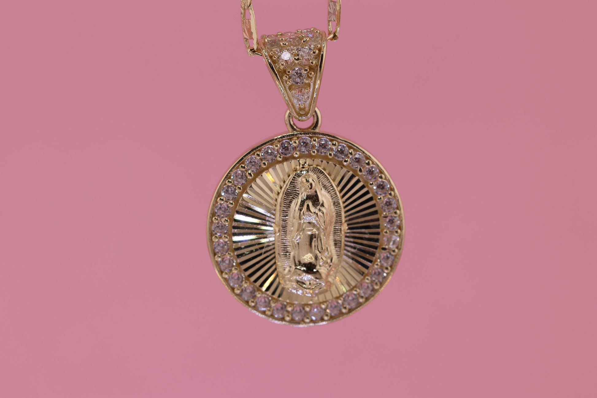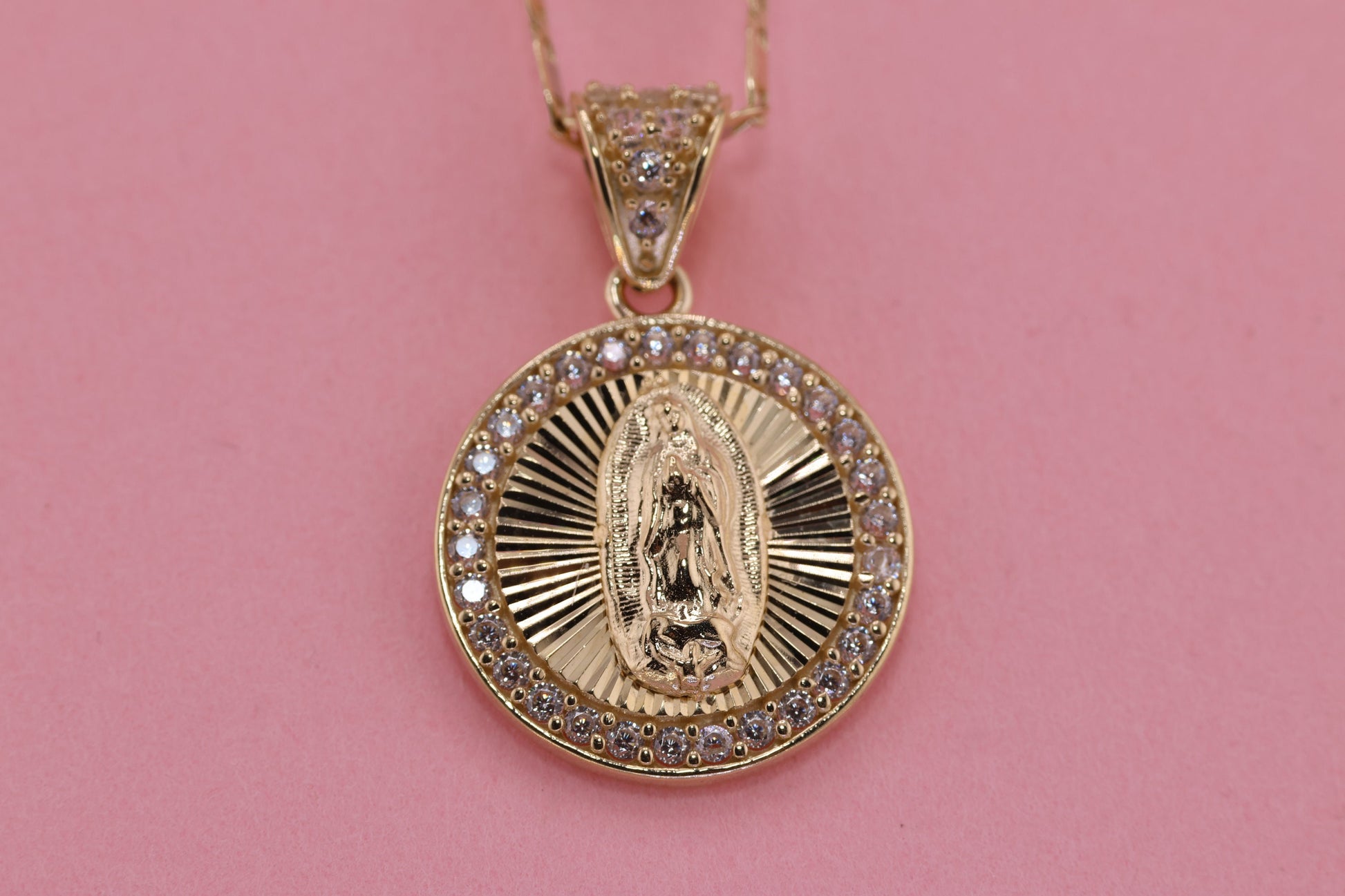 14k Solid Gold Virgin Mary Virgen Maria Lady Guadalupe Pendant M