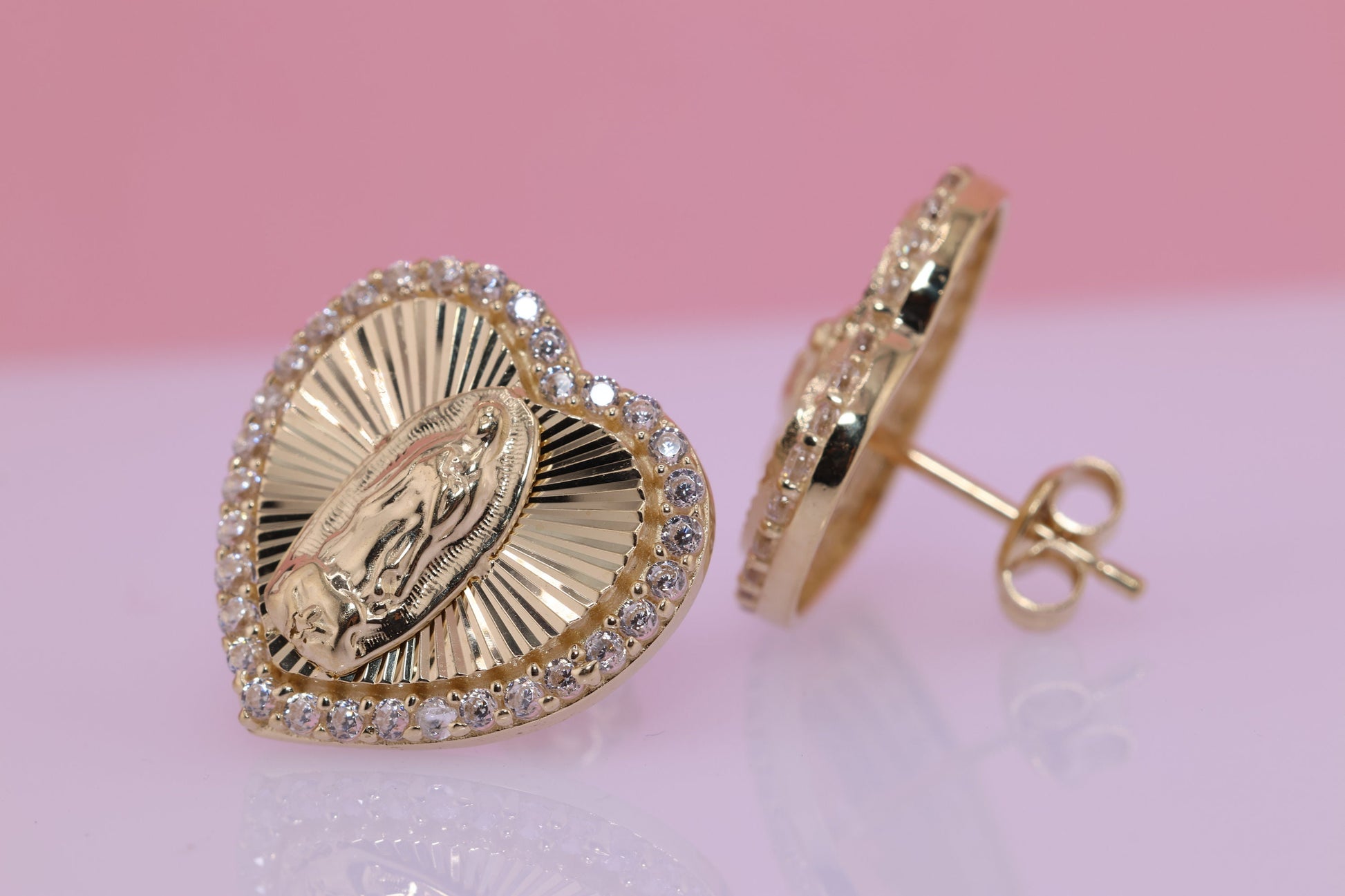 14k Solid Gold Virgin Mary Virgen Maria Lady Guadalupe Earrings H