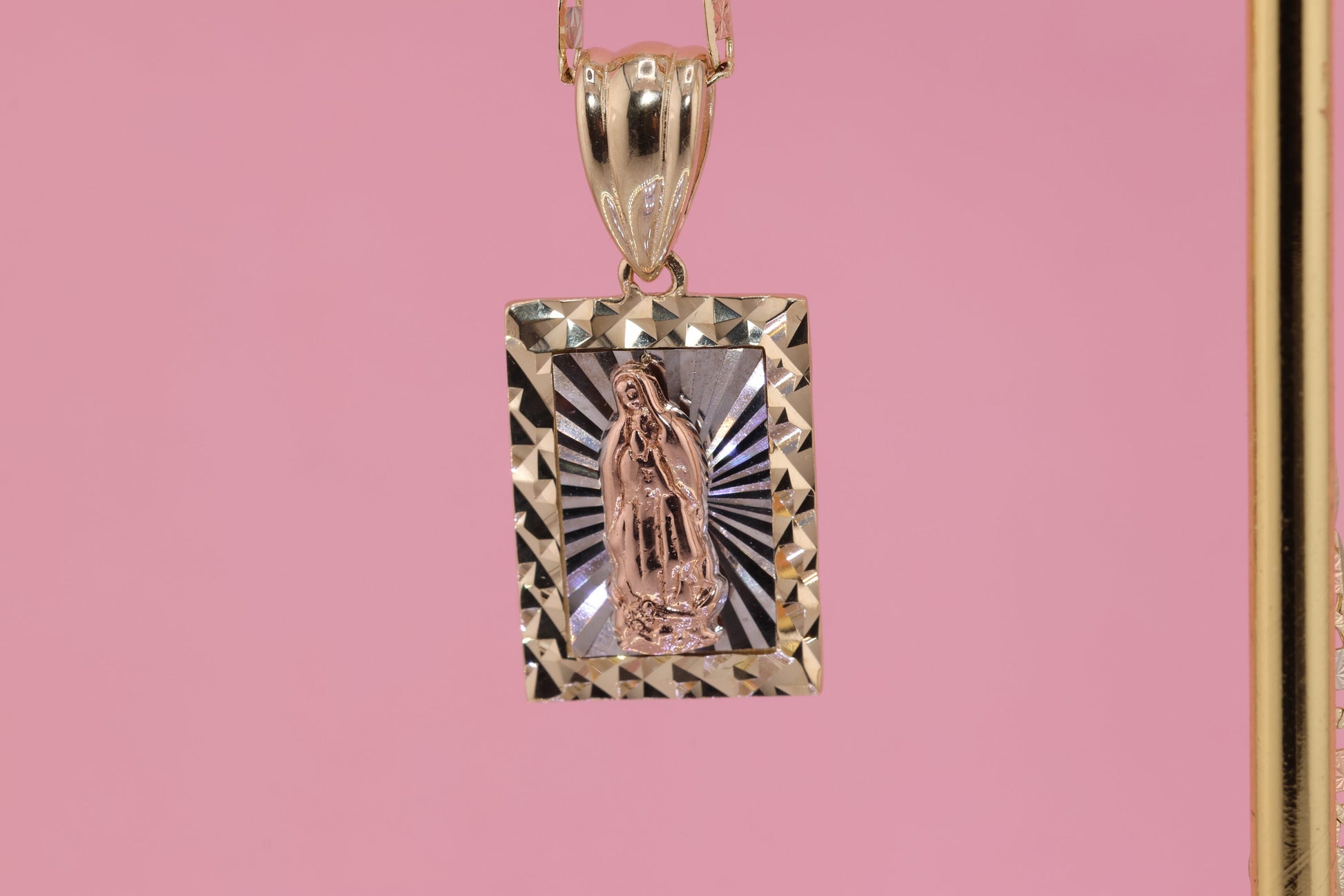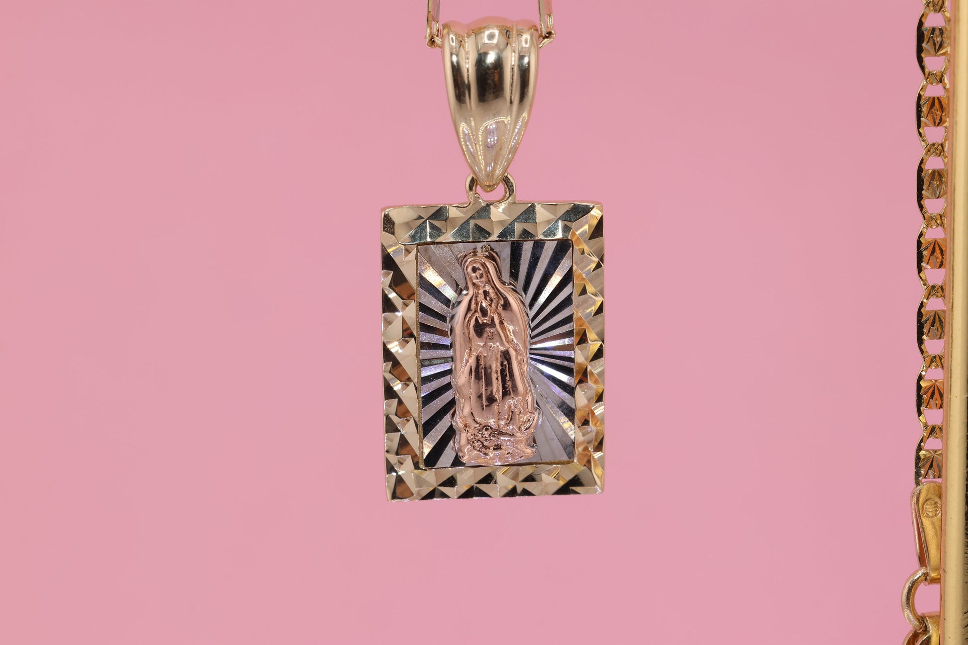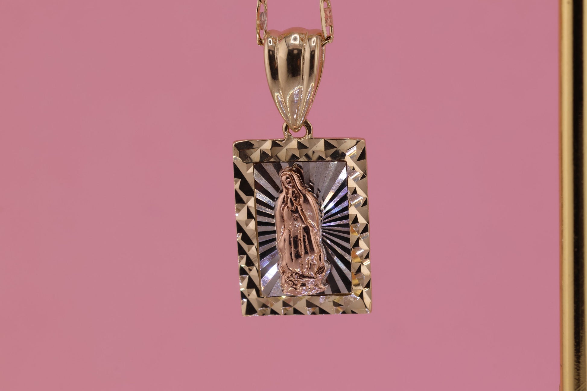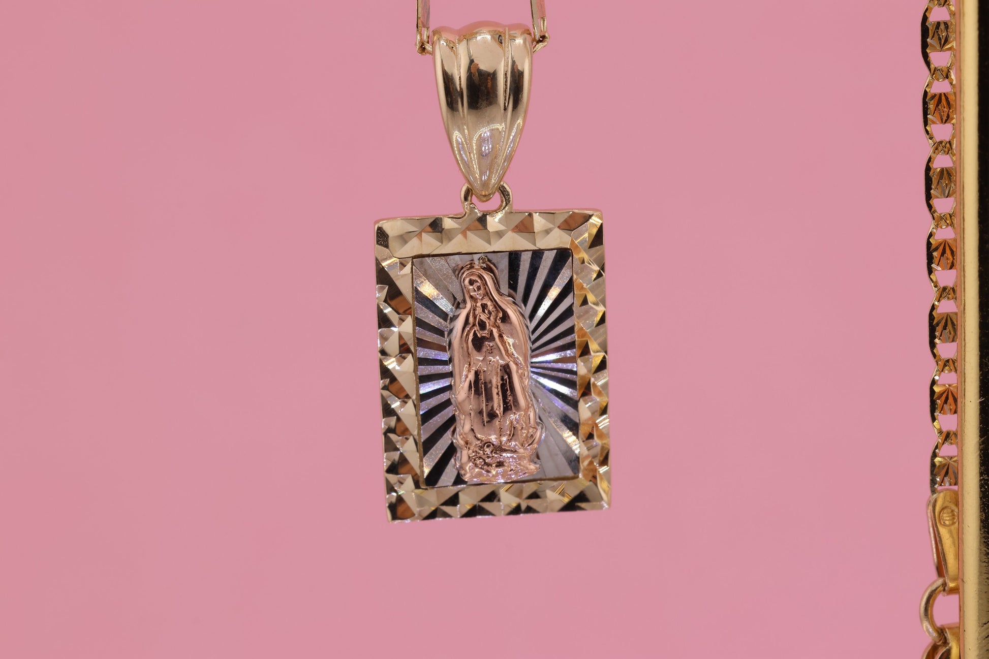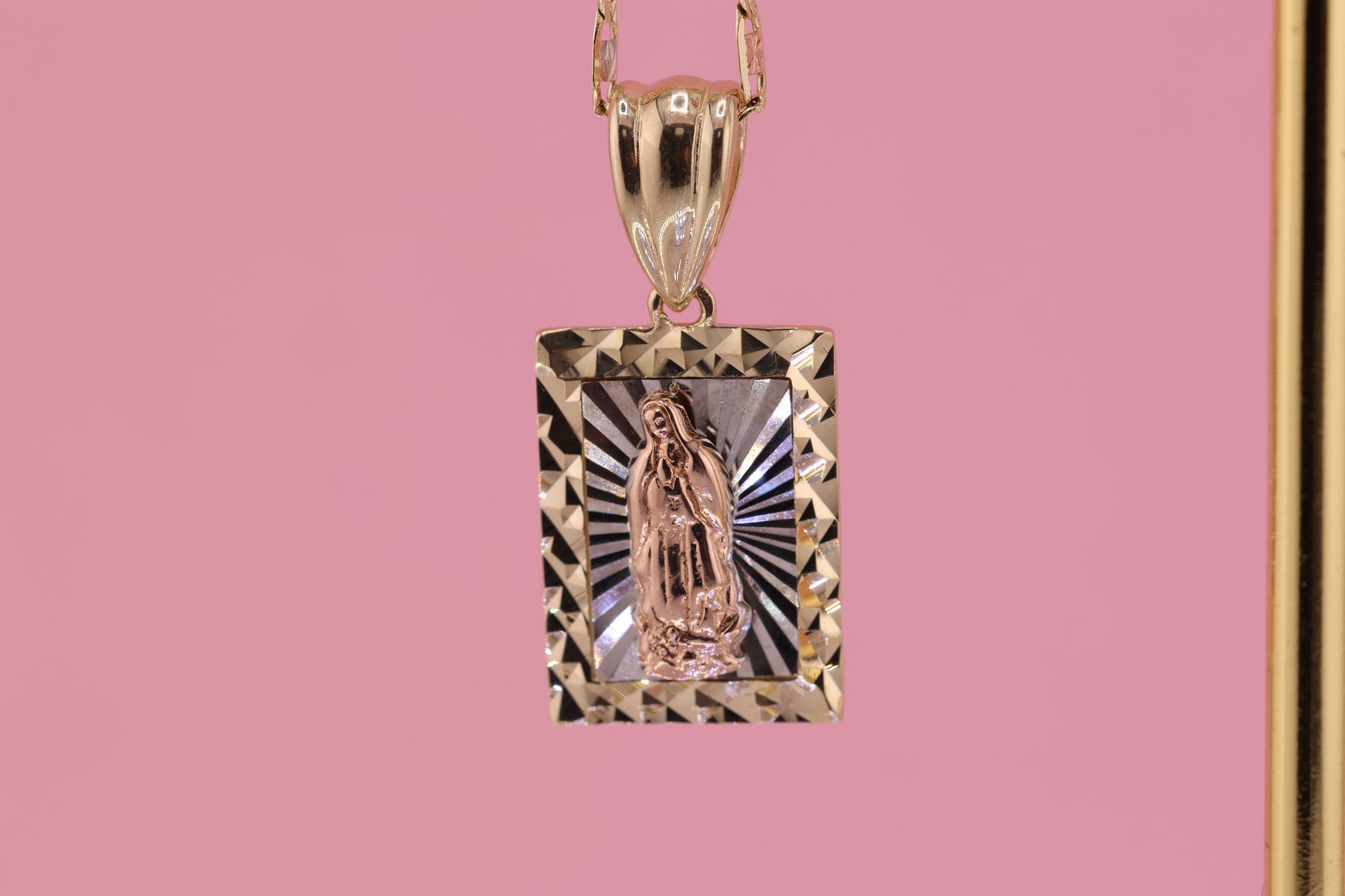 14k Solid Gold Virgin Mary Virgen Maria Lady Guadalupe Pendant A