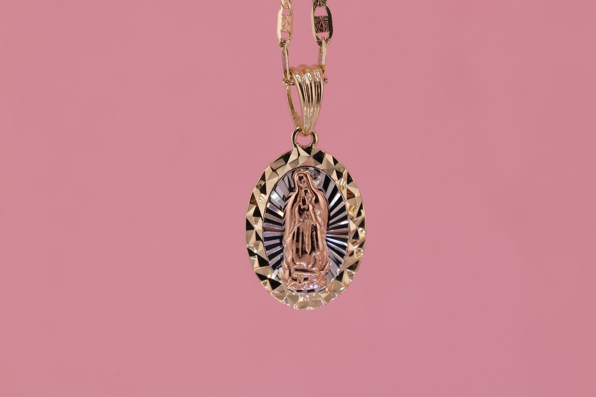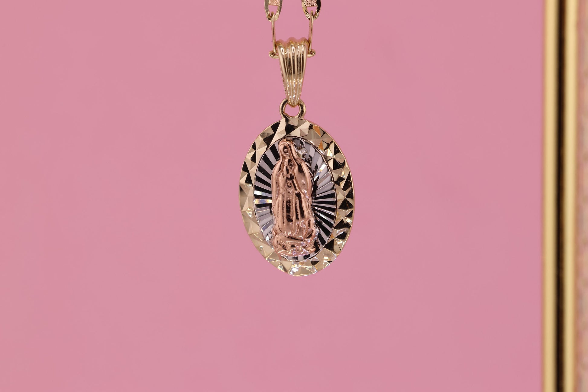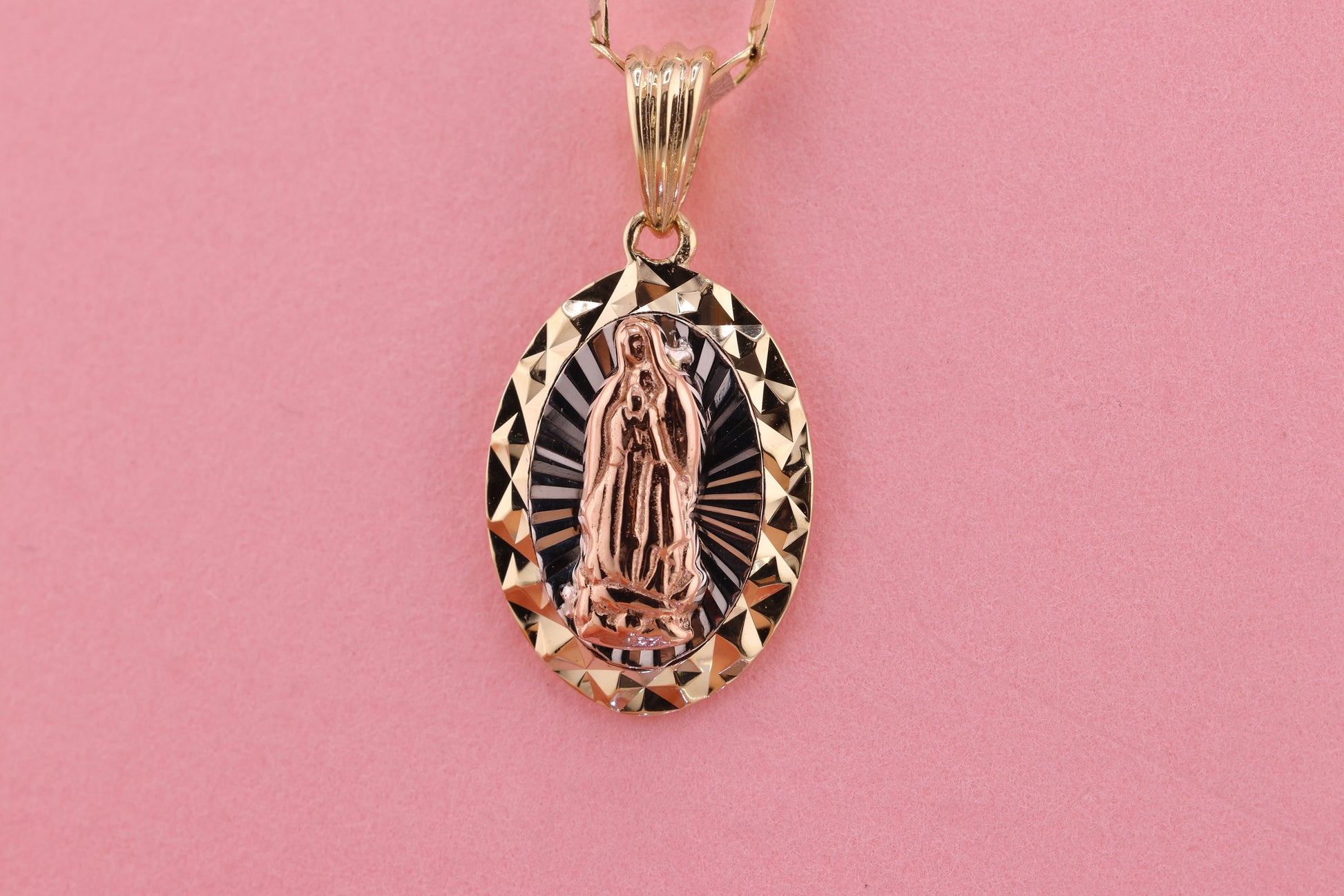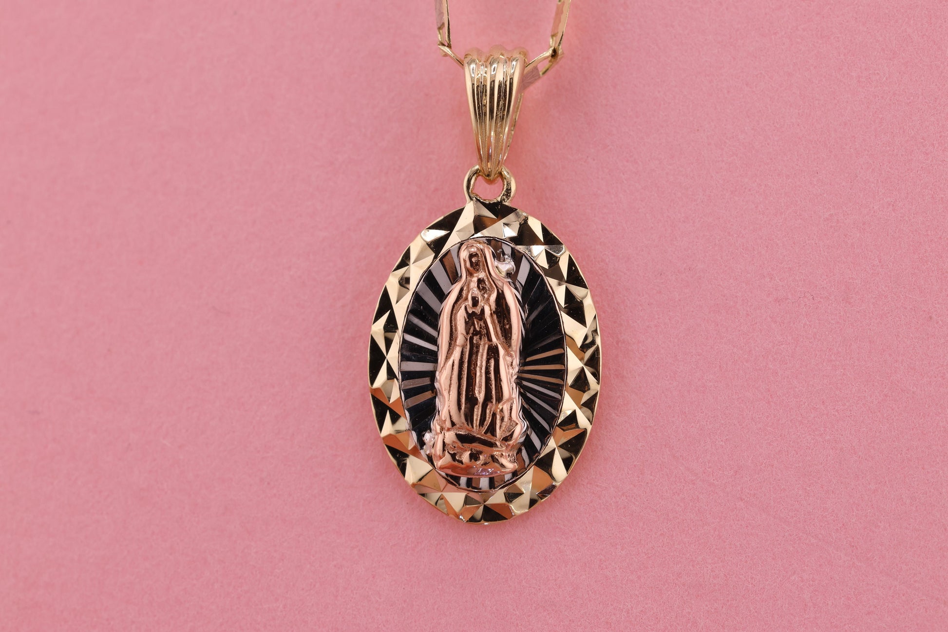 14k Solid Gold Virgin Mary Virgen Maria Lady Guadalupe Pendant B