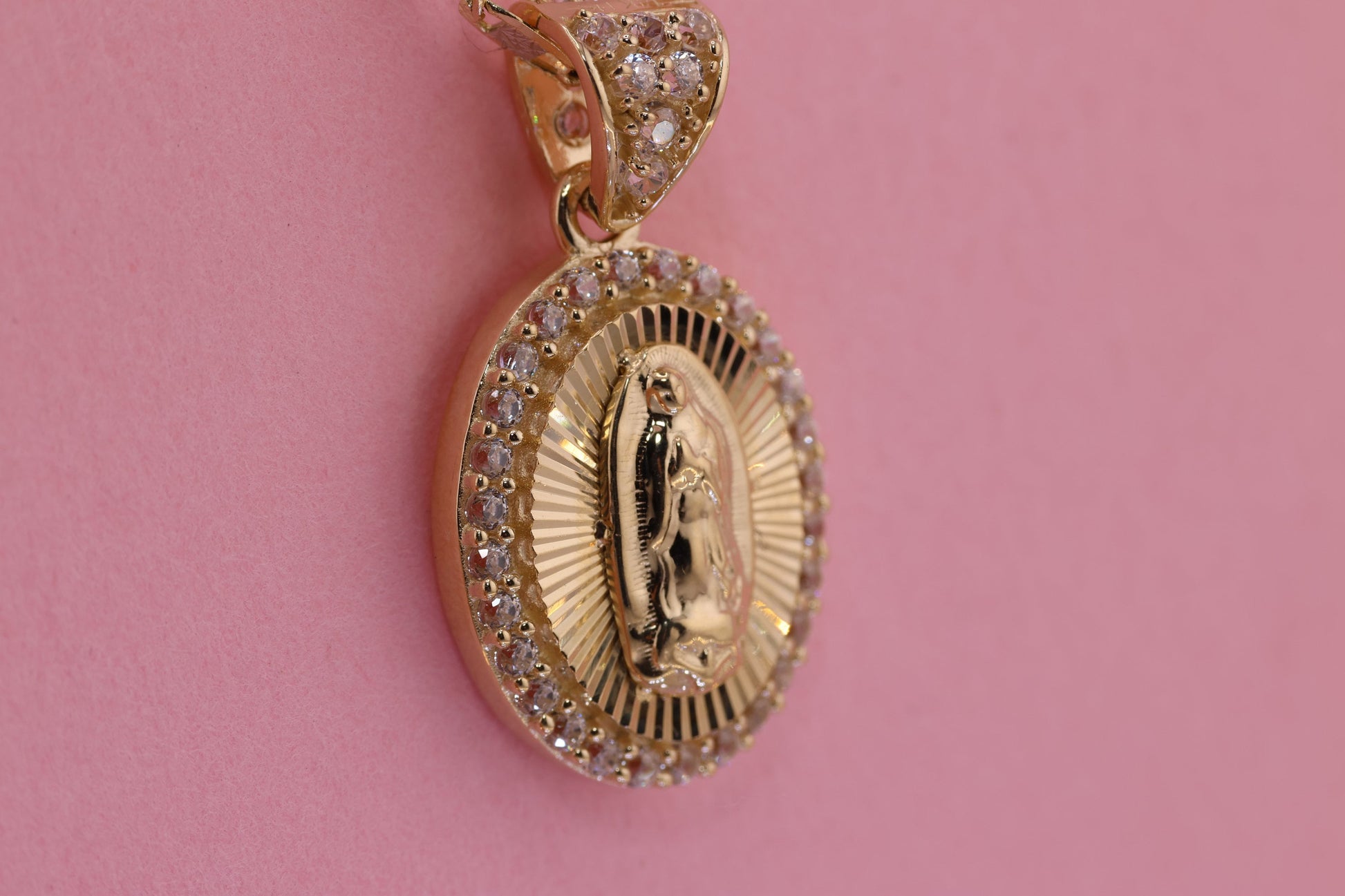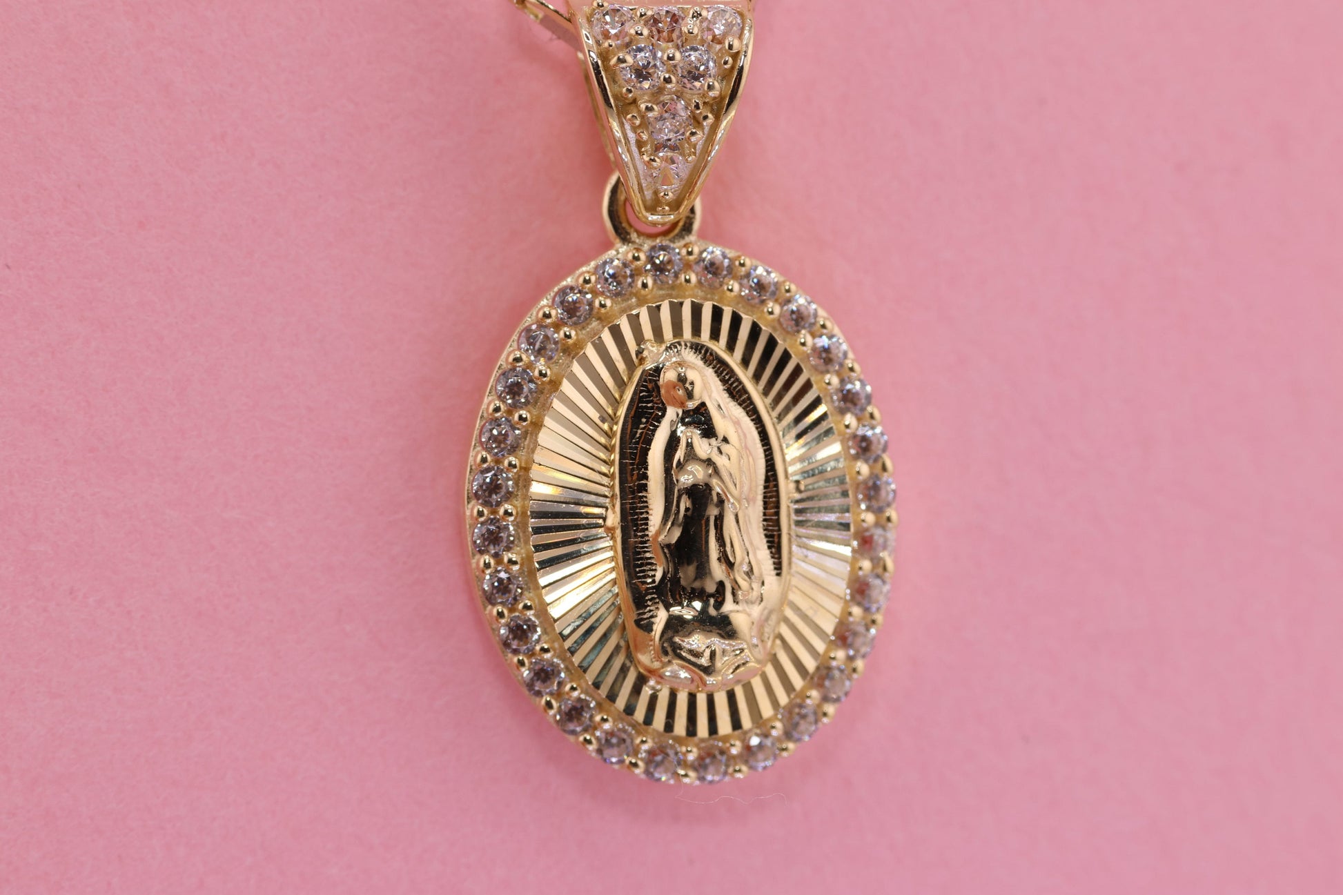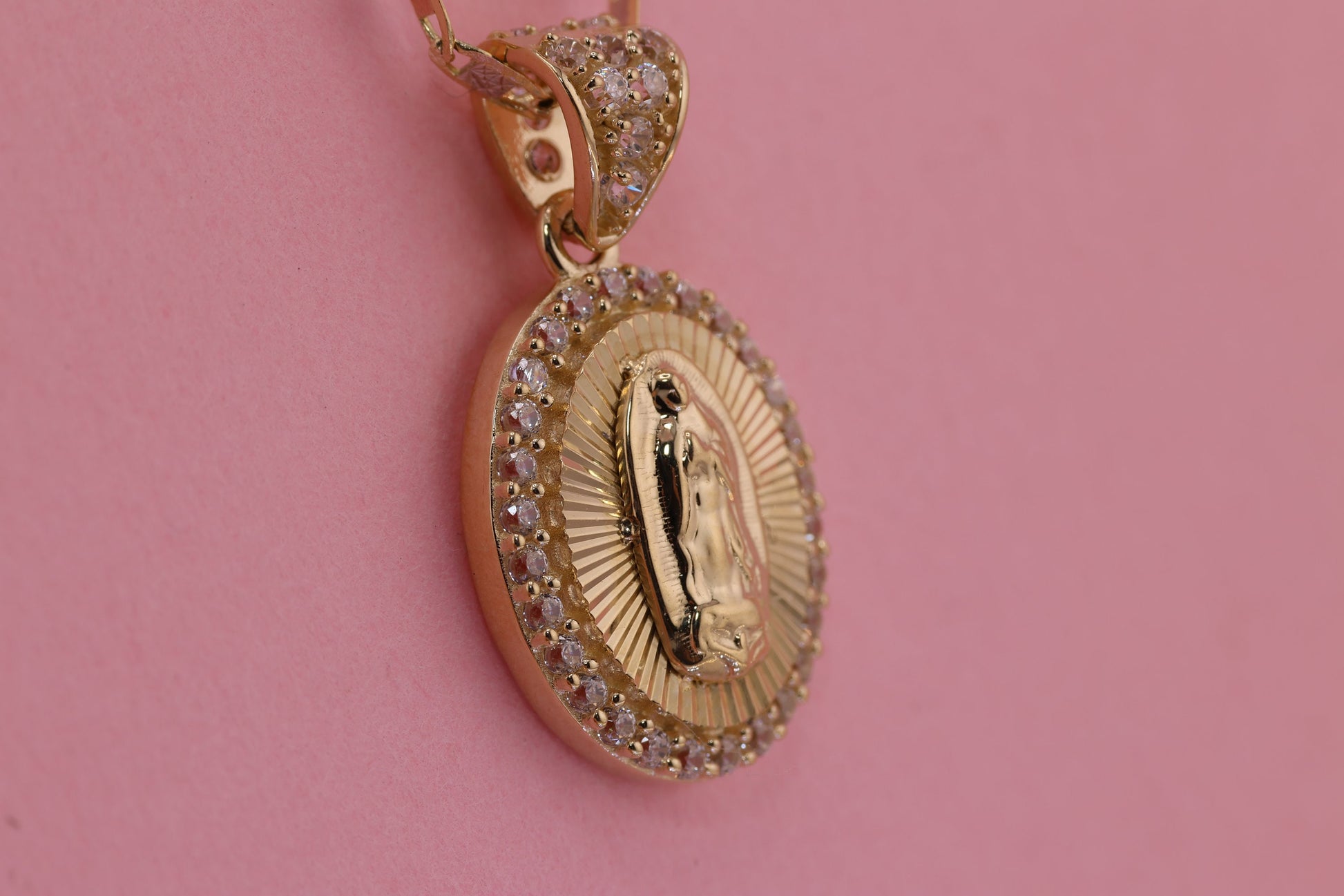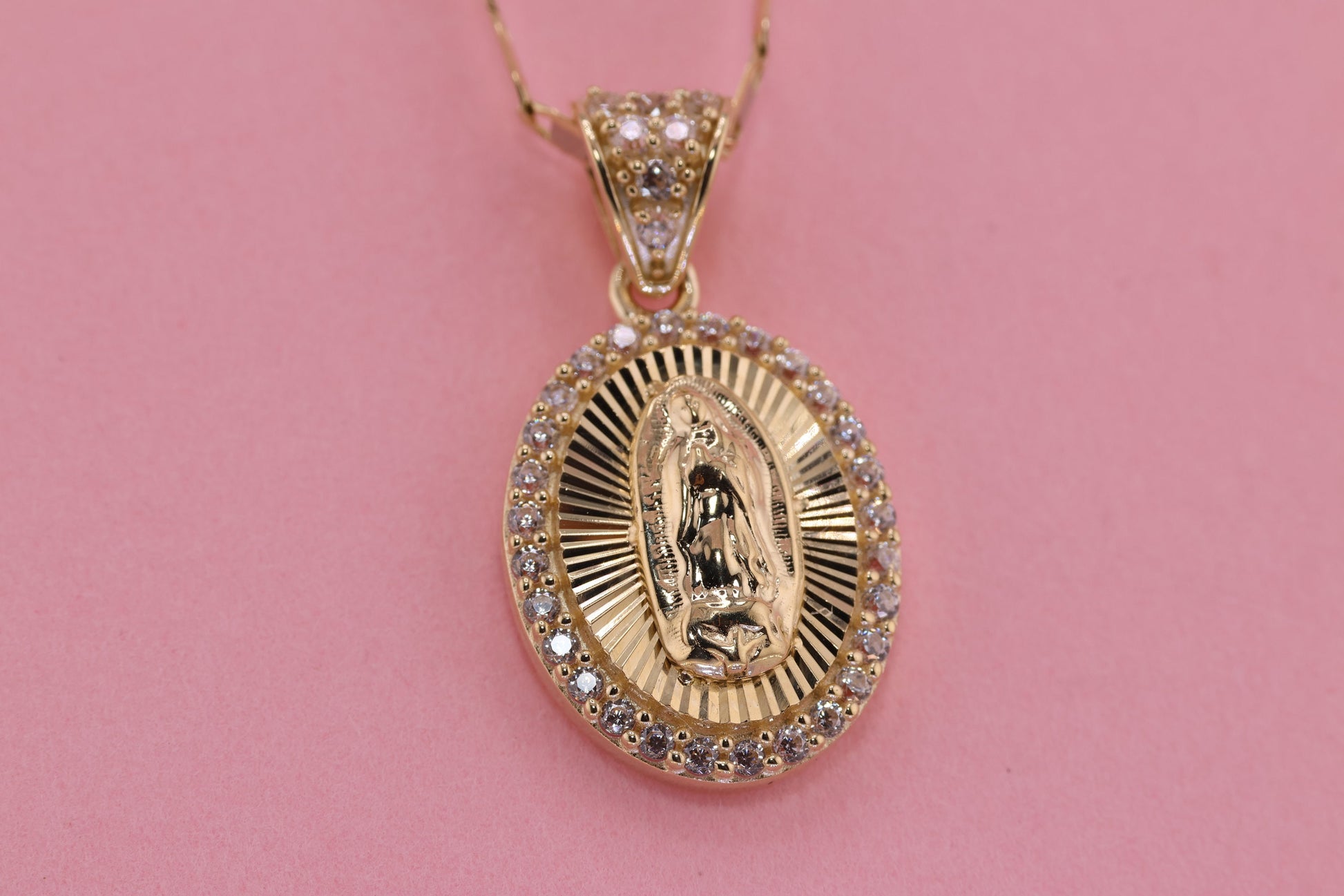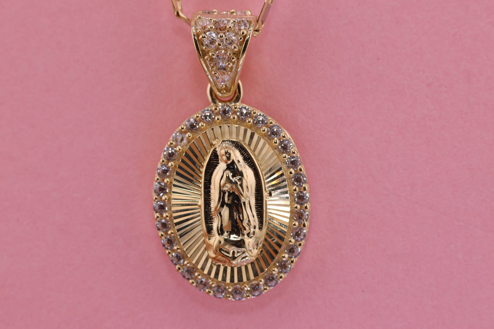 14k Solid Gold Virgin Mary Virgen Maria Lady Guadalupe Pendant D
