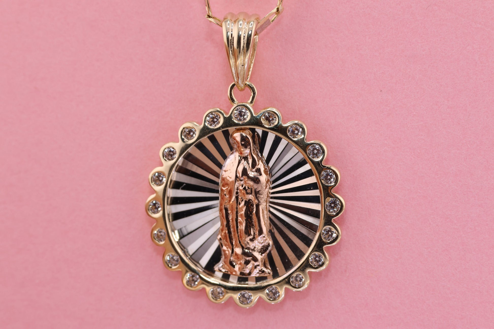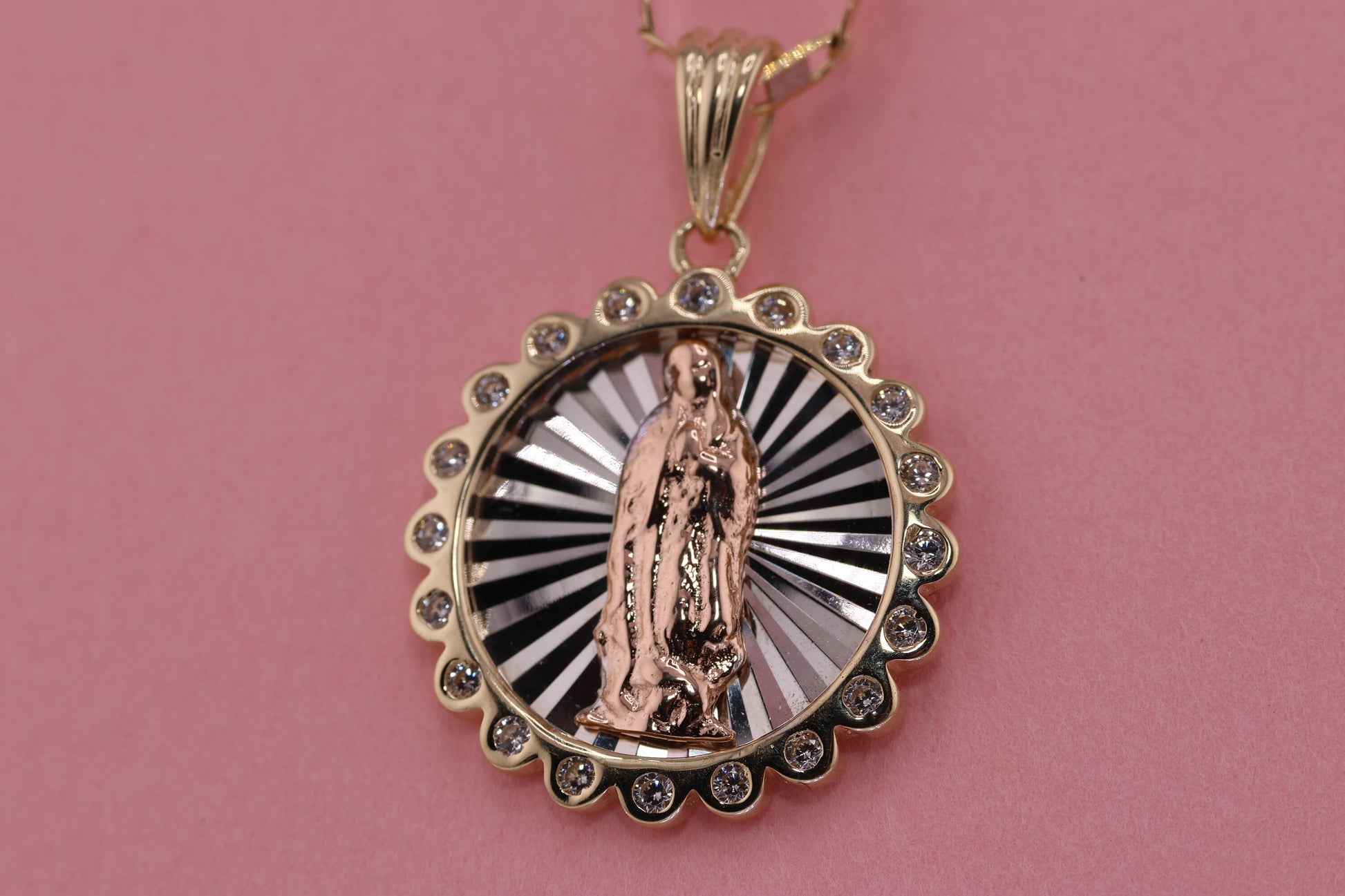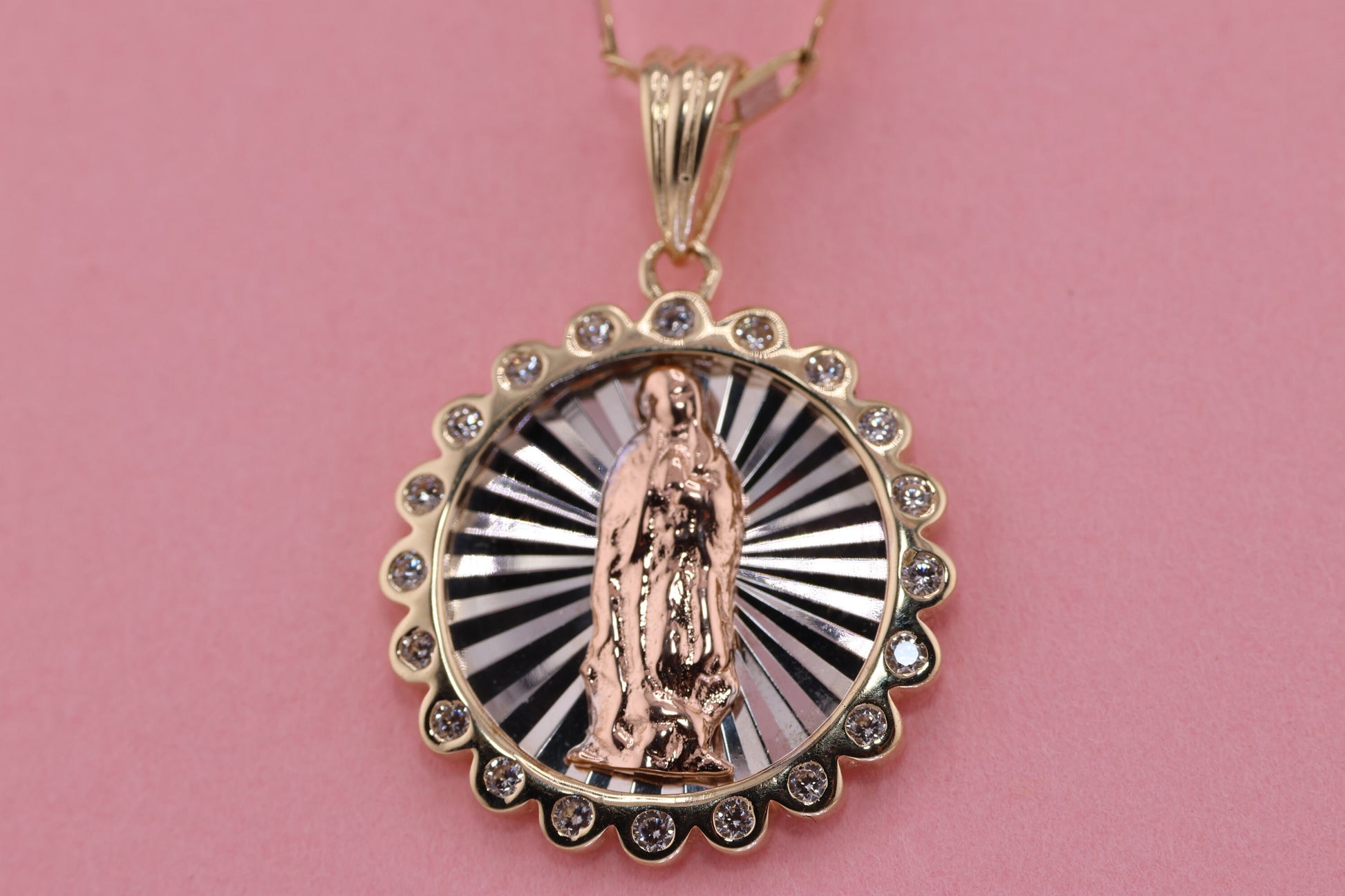 14k Solid Gold Virgin Mary Virgen Maria Lady Guadalupe Pendant H