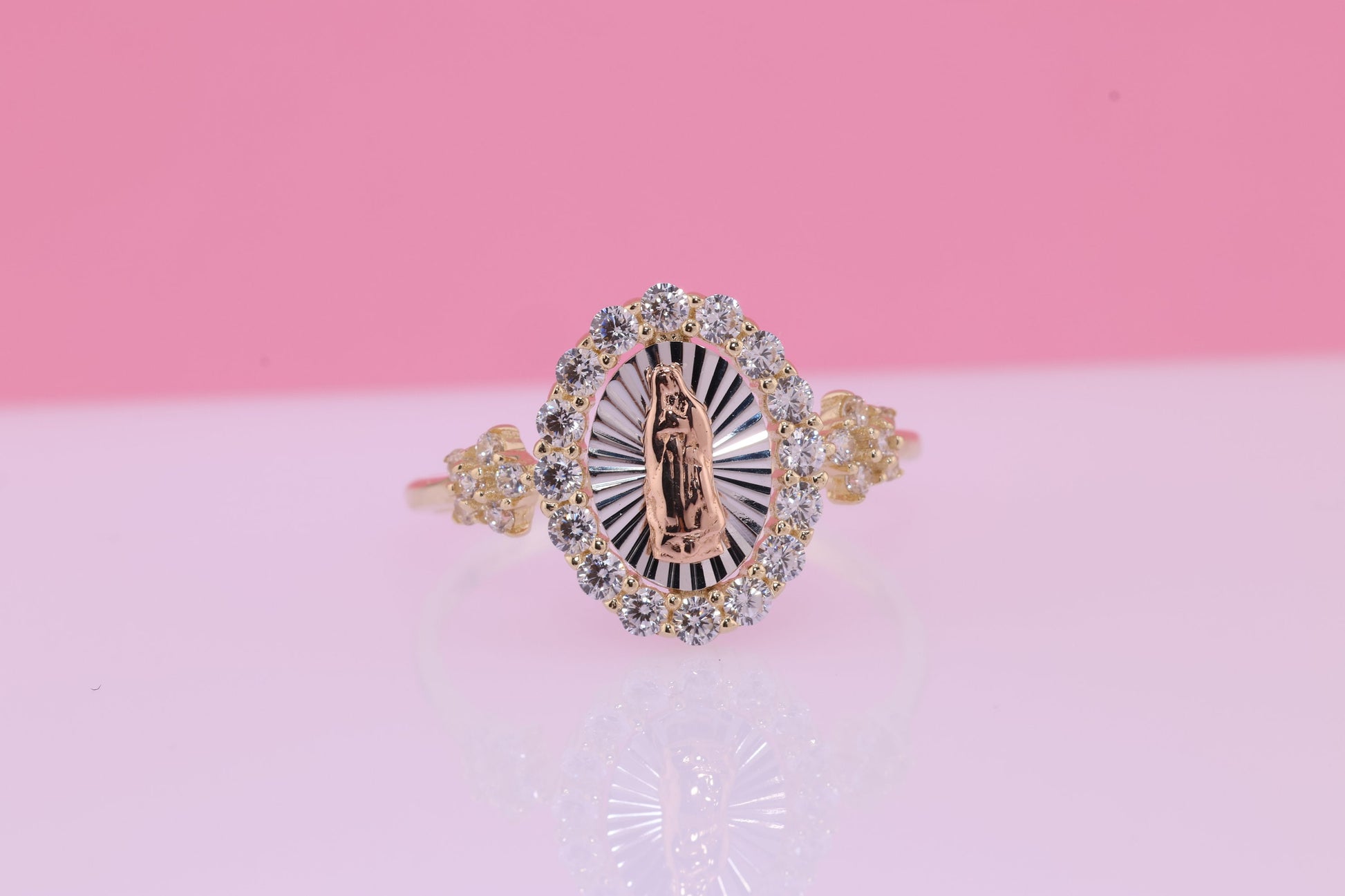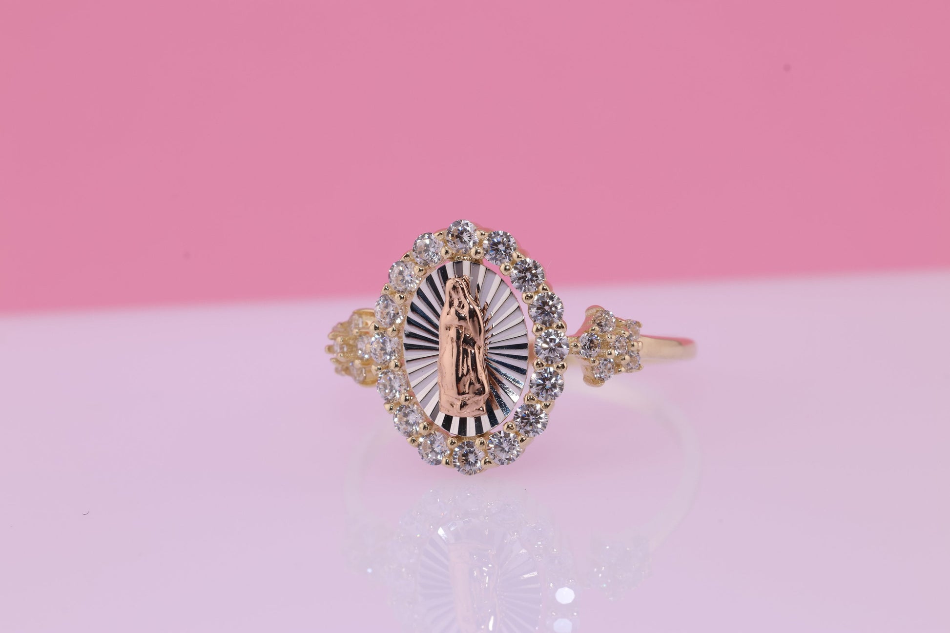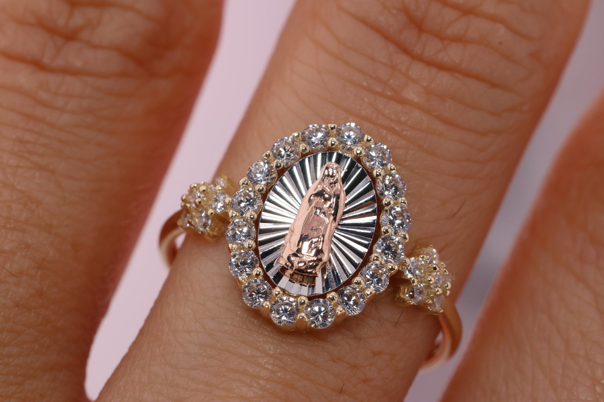 14k Solid Gold Virgin Mary Virgen Maria Lady Guadalupe Ring D