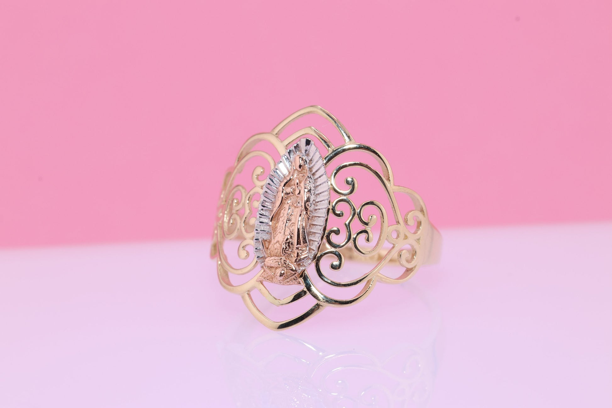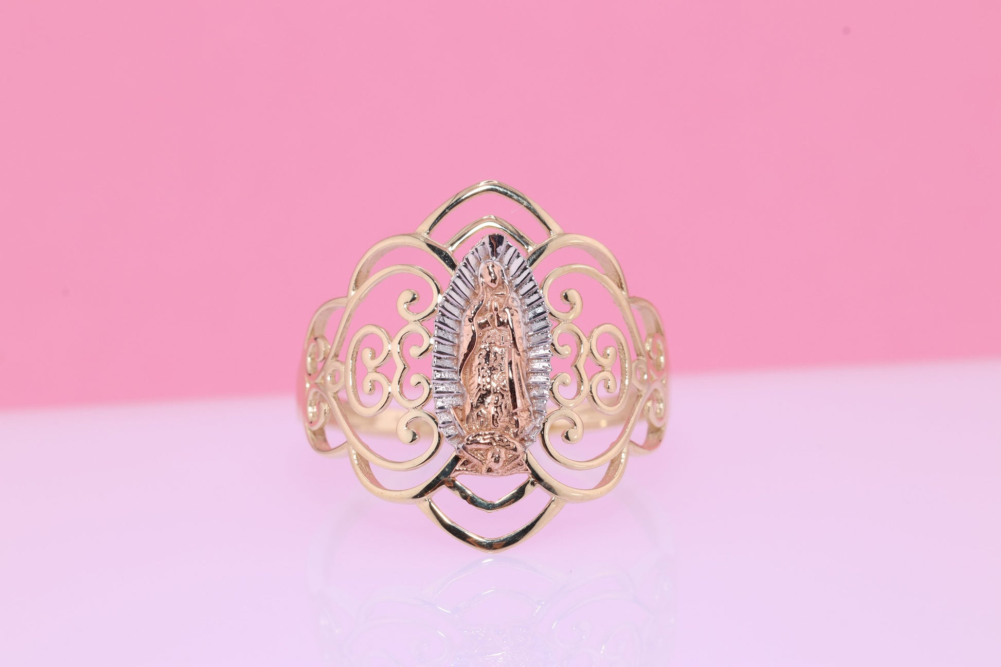 14k Solid Gold Virgin Mary Virgen Maria Lady Guadalupe Ring EE