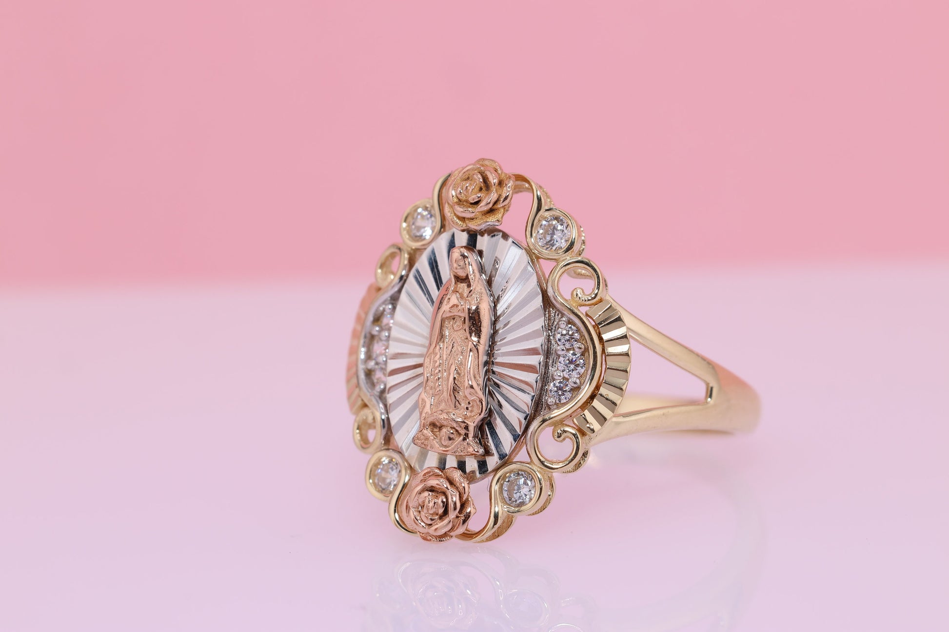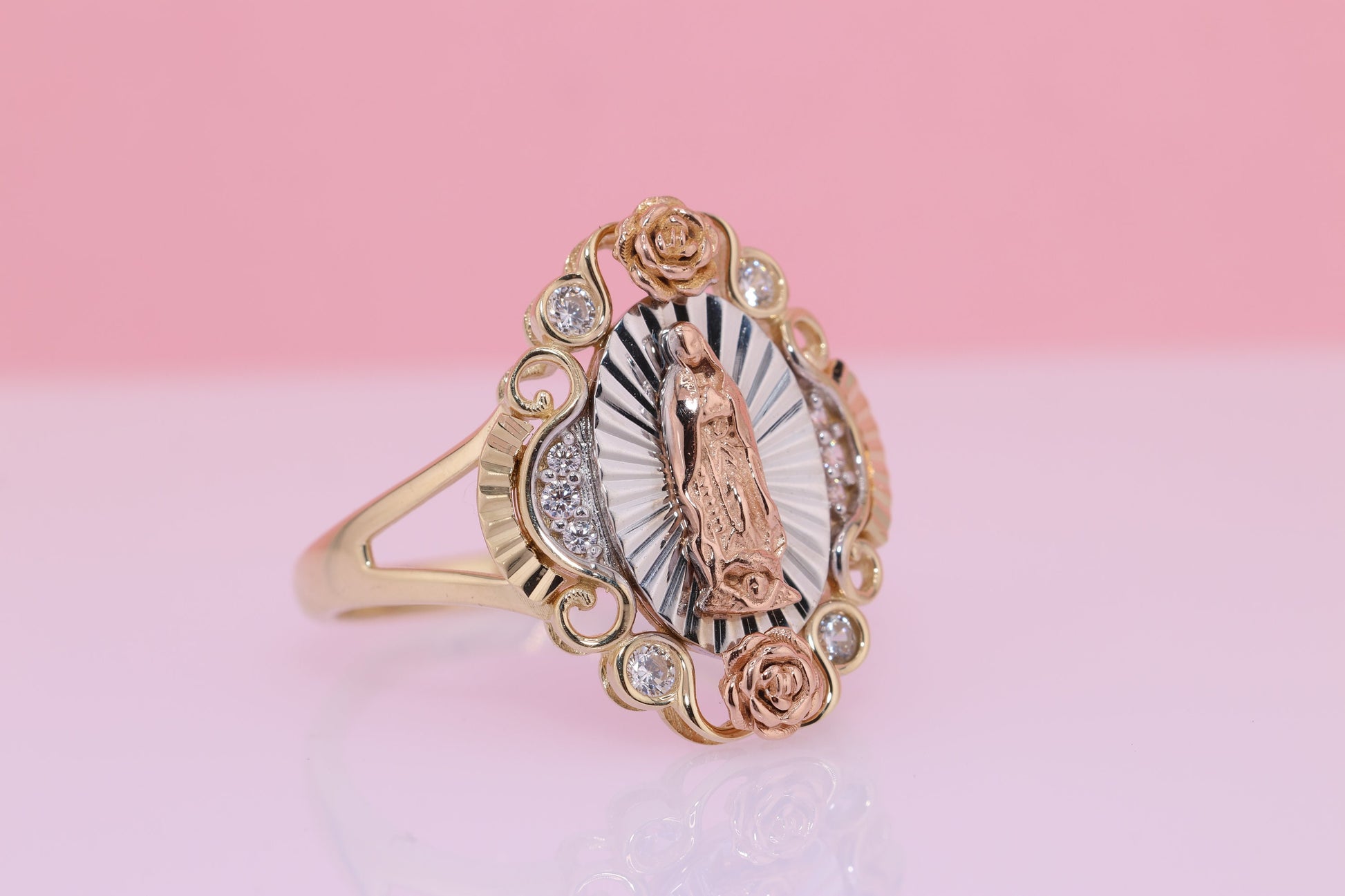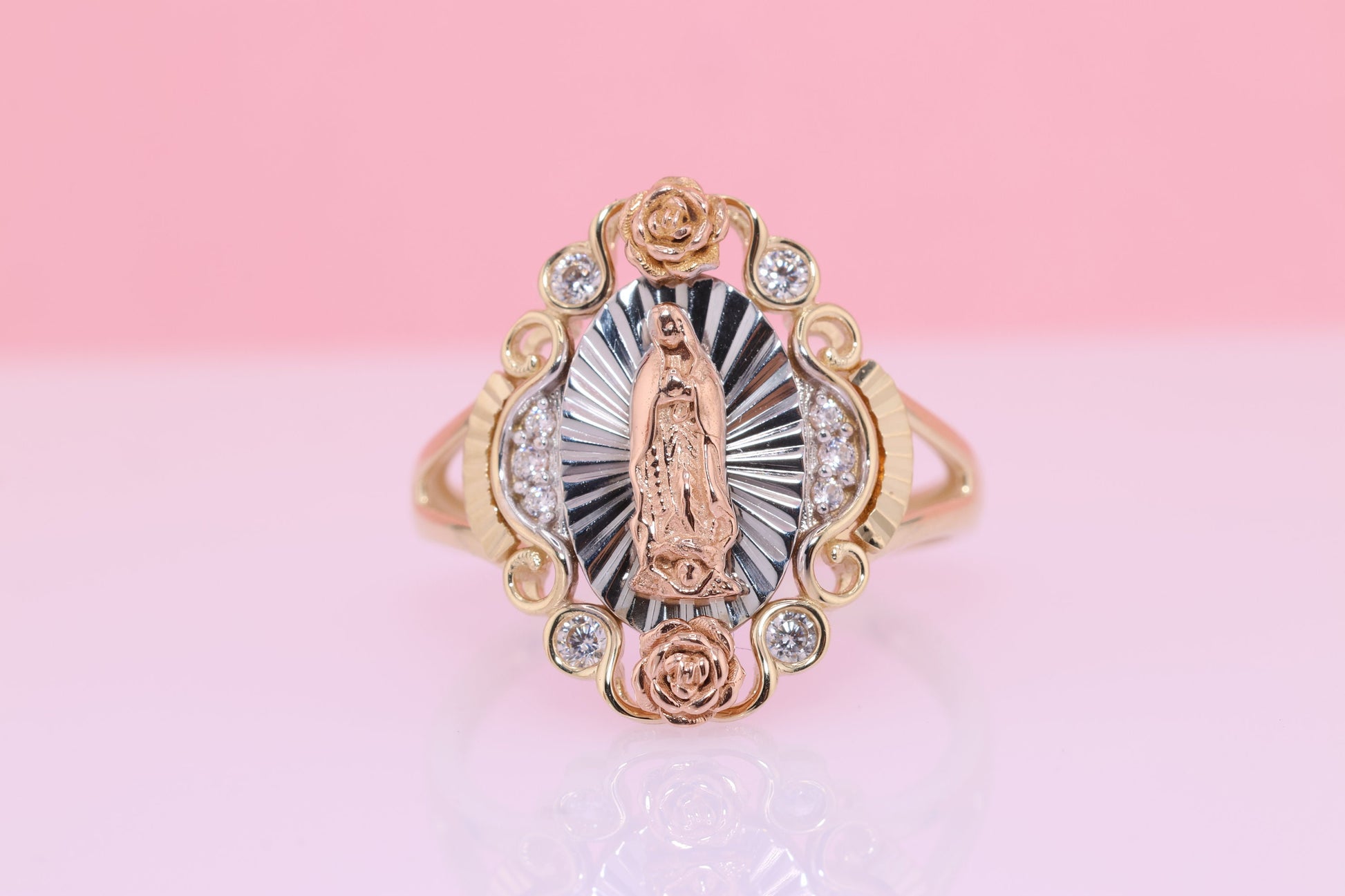 14k Solid Gold Virgin Mary Virgen Maria Lady Guadalupe Ring FF