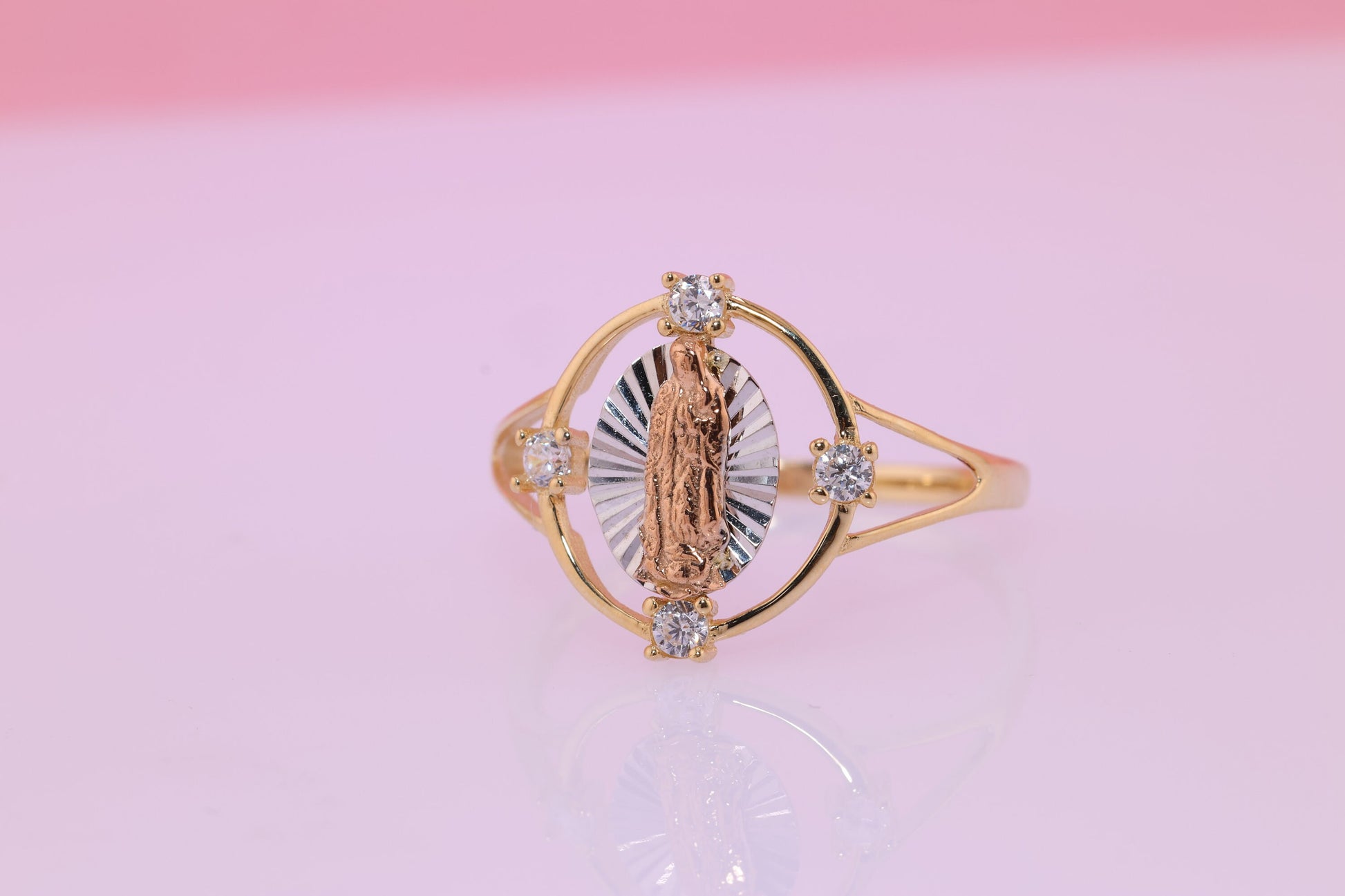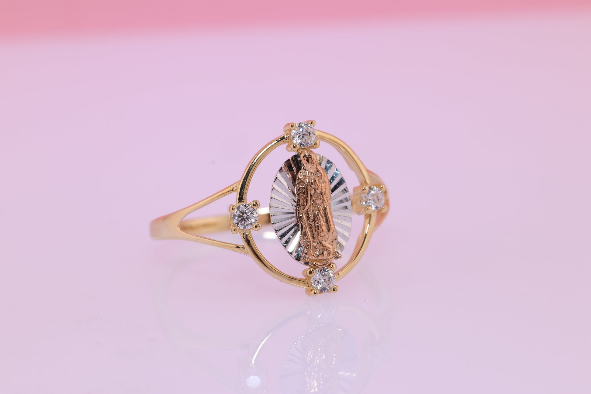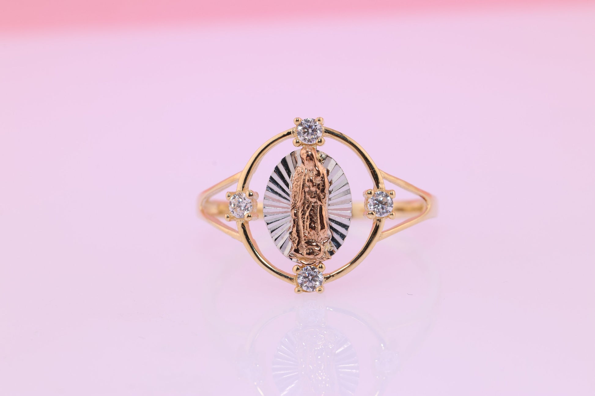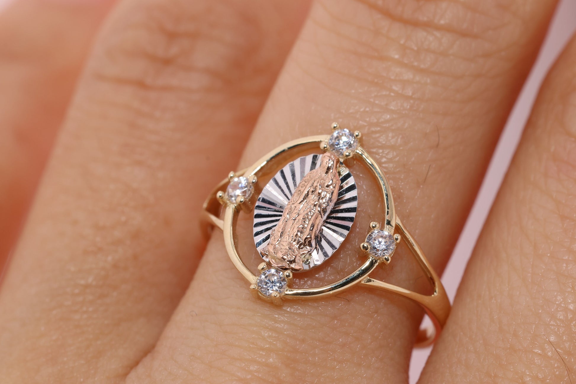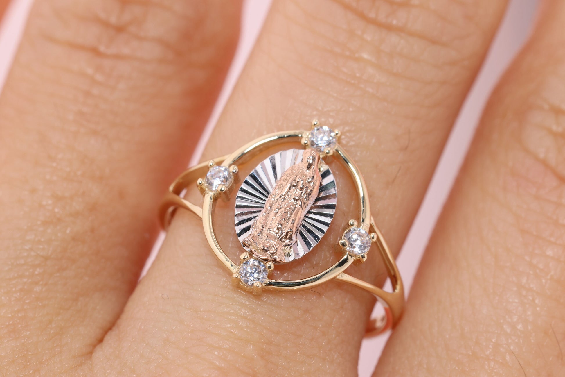 14k Solid Gold Virgin Mary Virgen Maria Lady Guadalupe Ring J