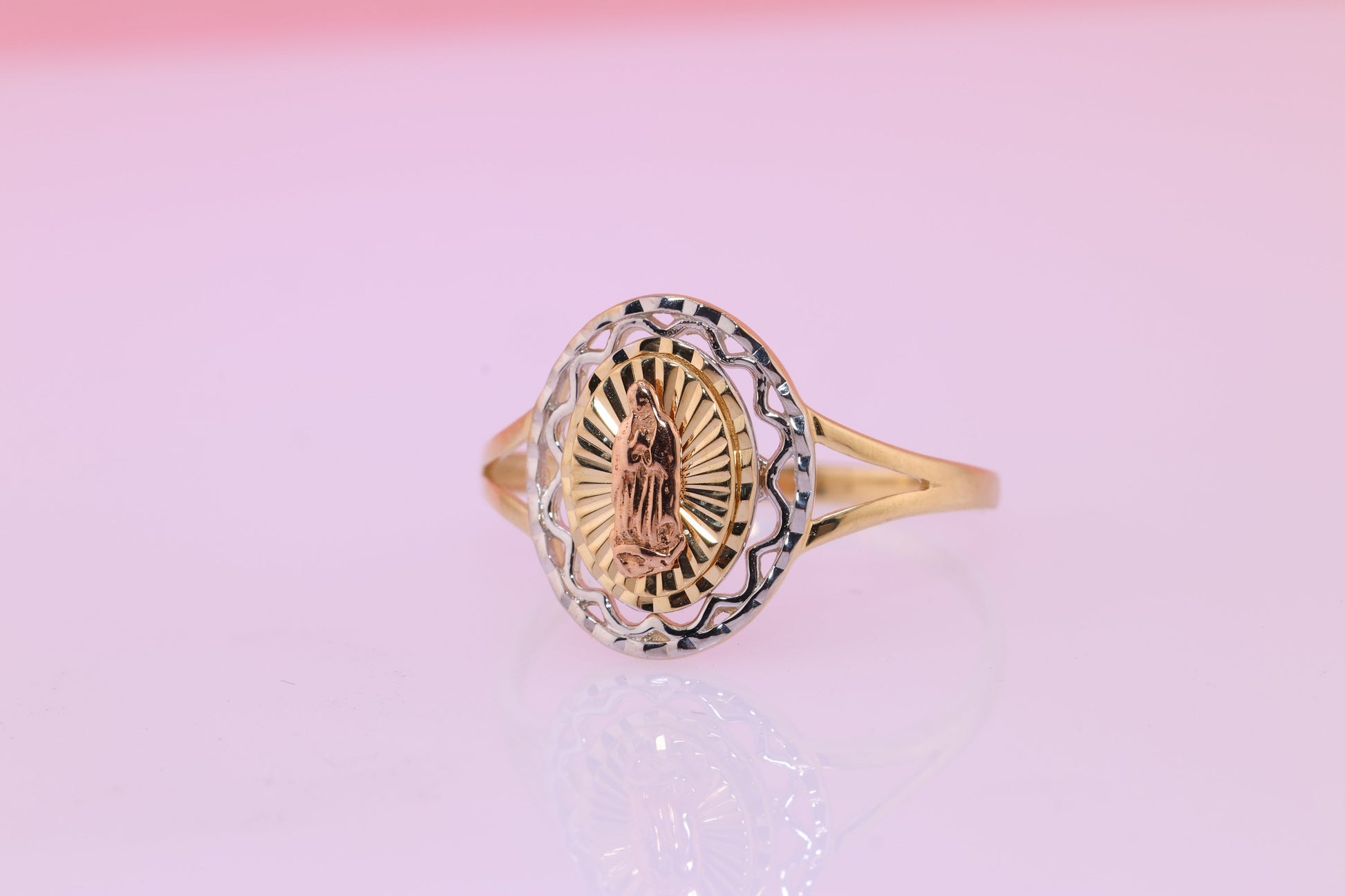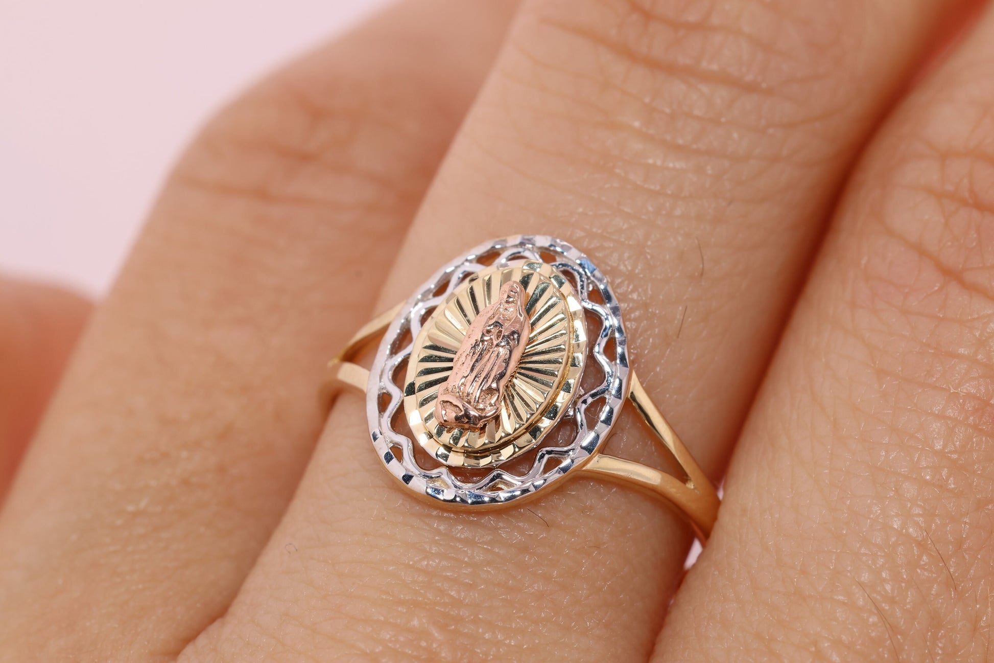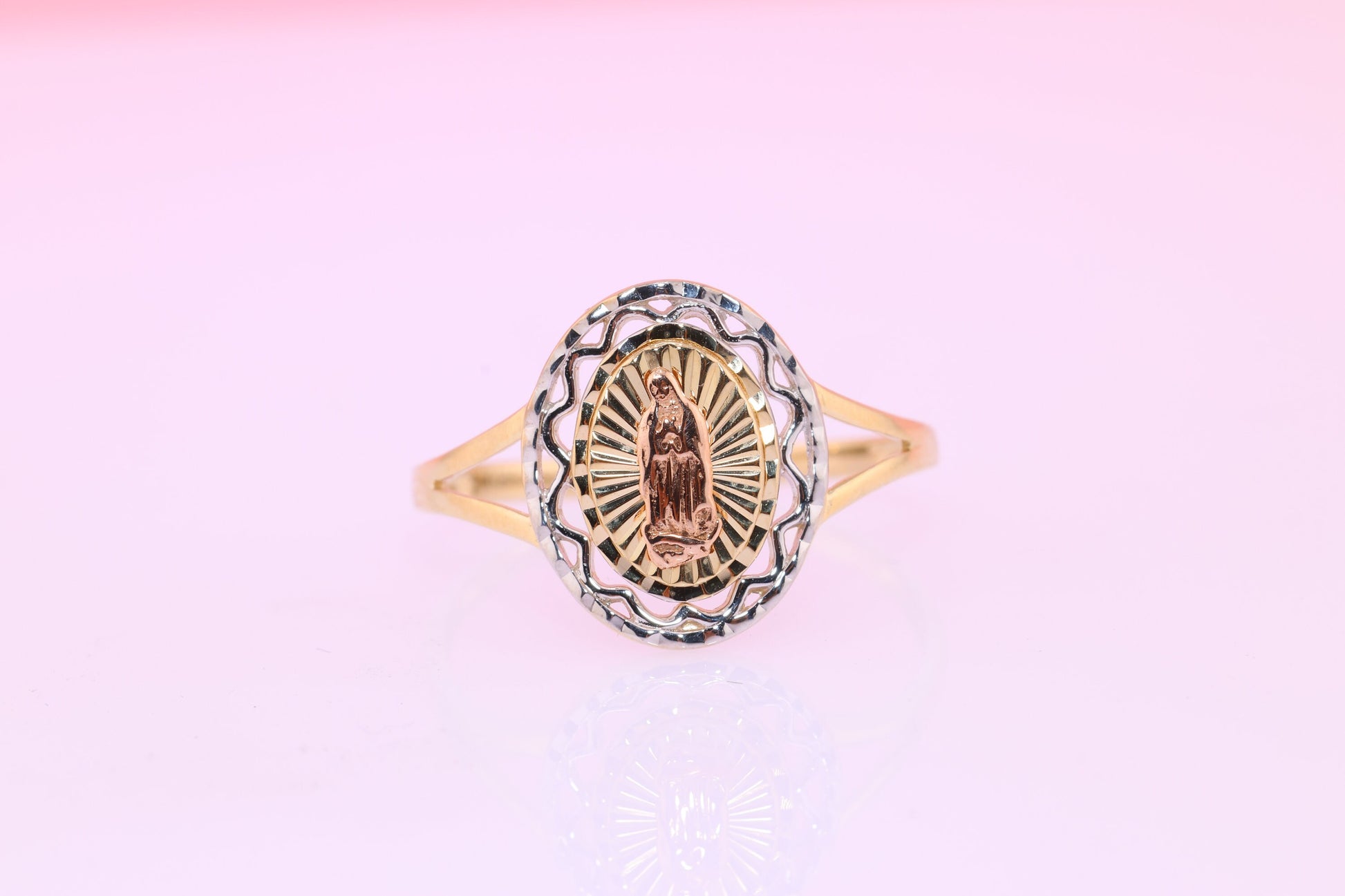 14k Solid Gold Virgin Mary Virgen Maria Lady Guadalupe Ring KK