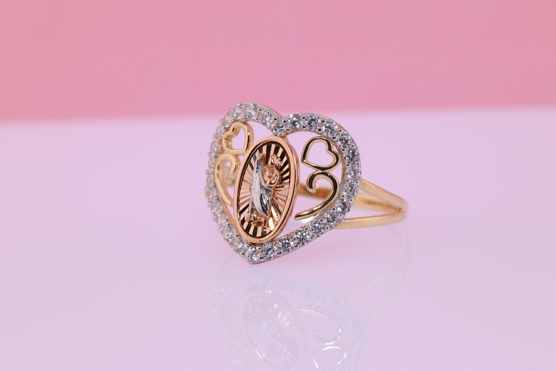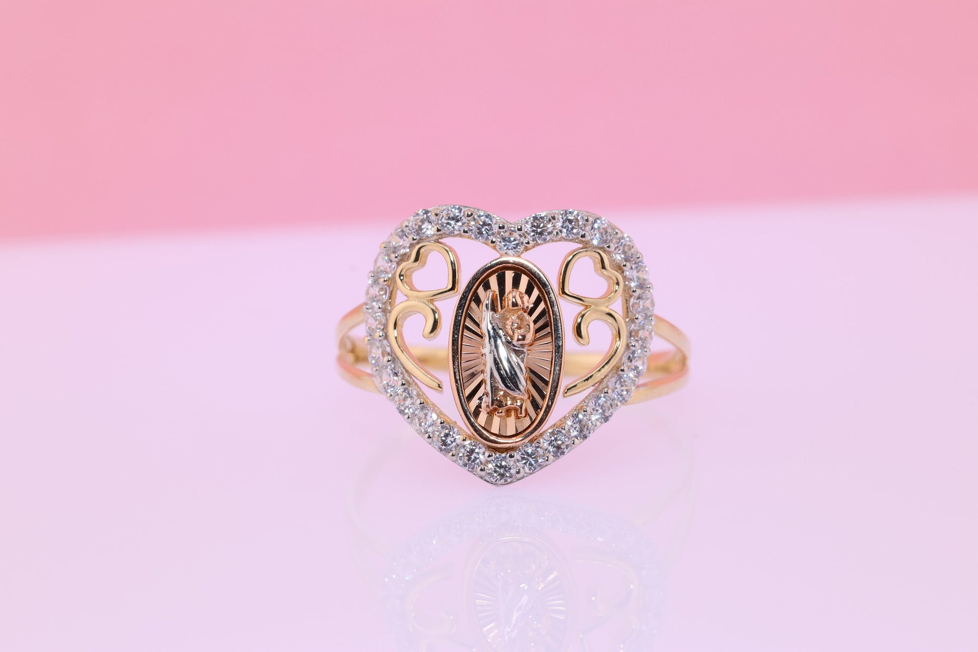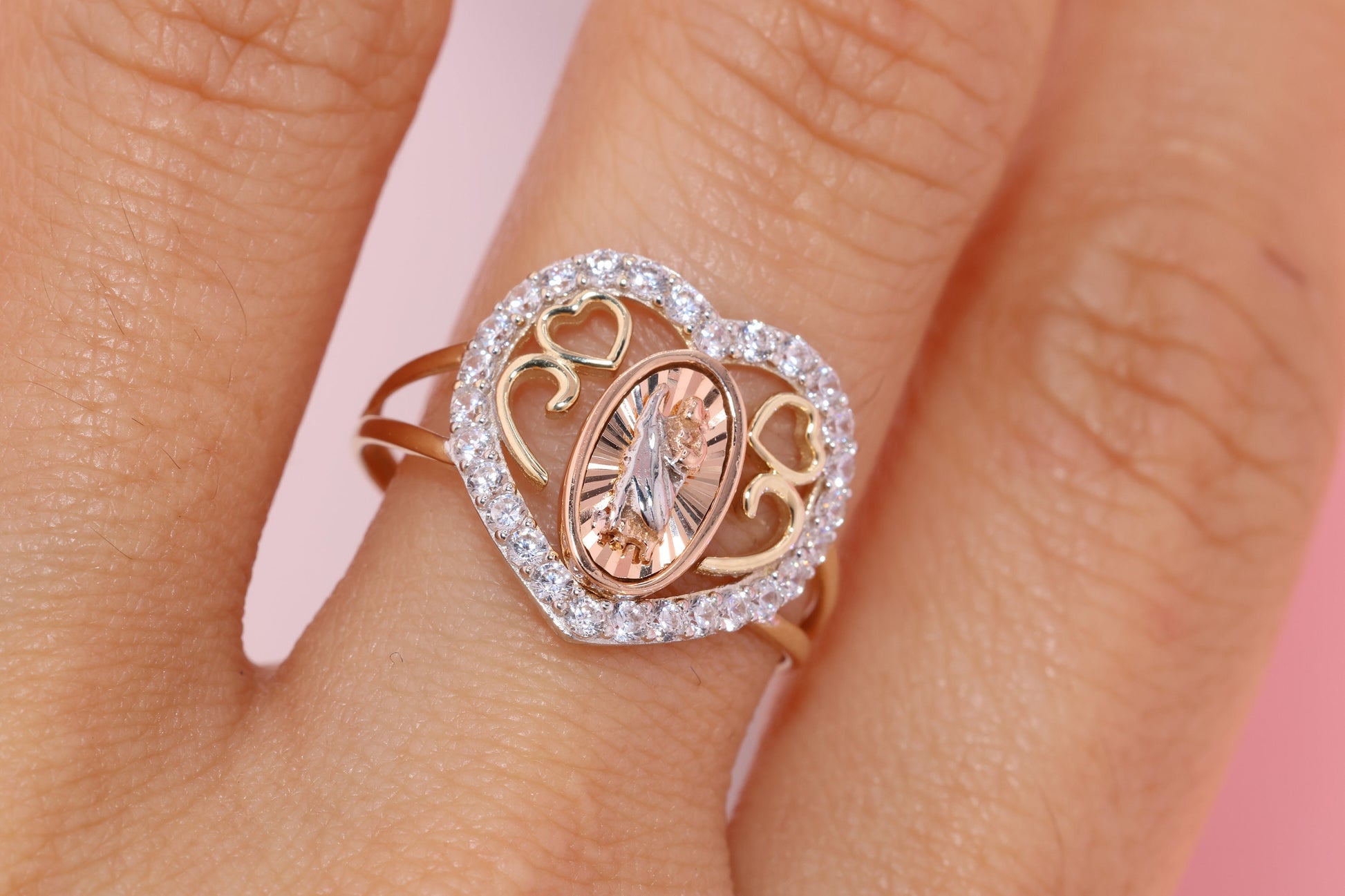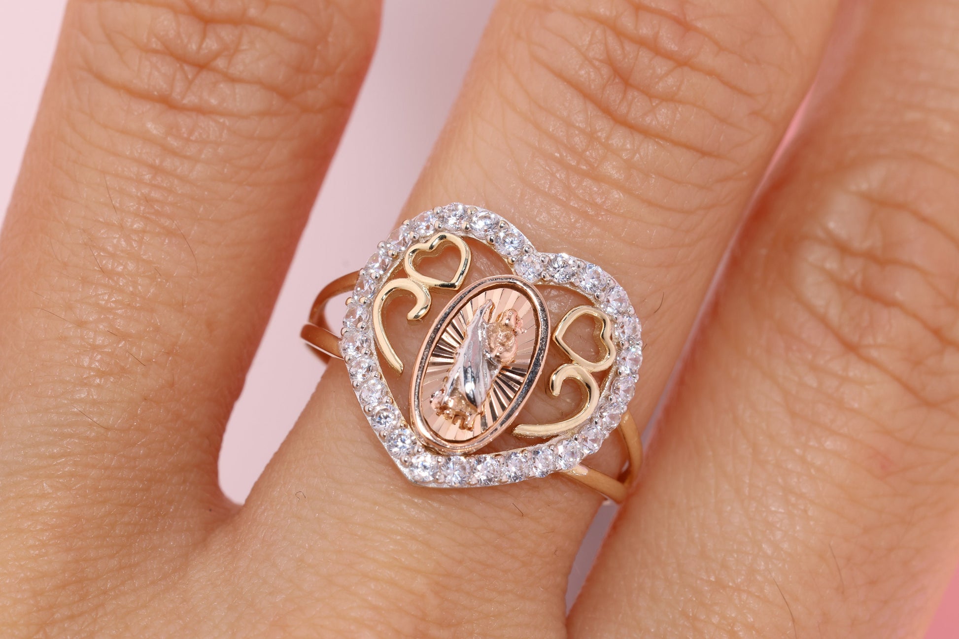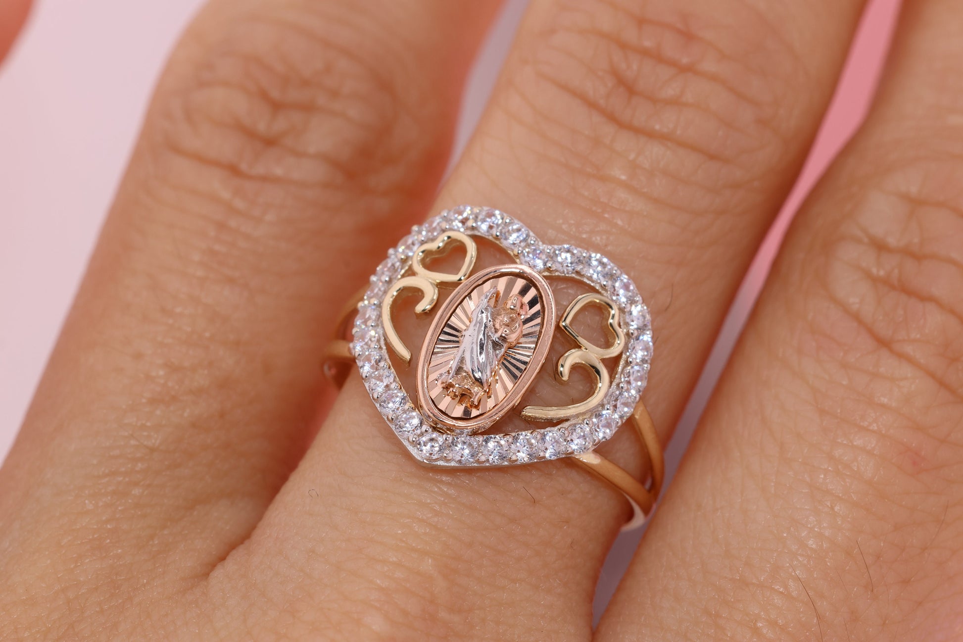 14k Solid Gold Virgin Mary Virgen Maria Lady Guadalupe Ring L
