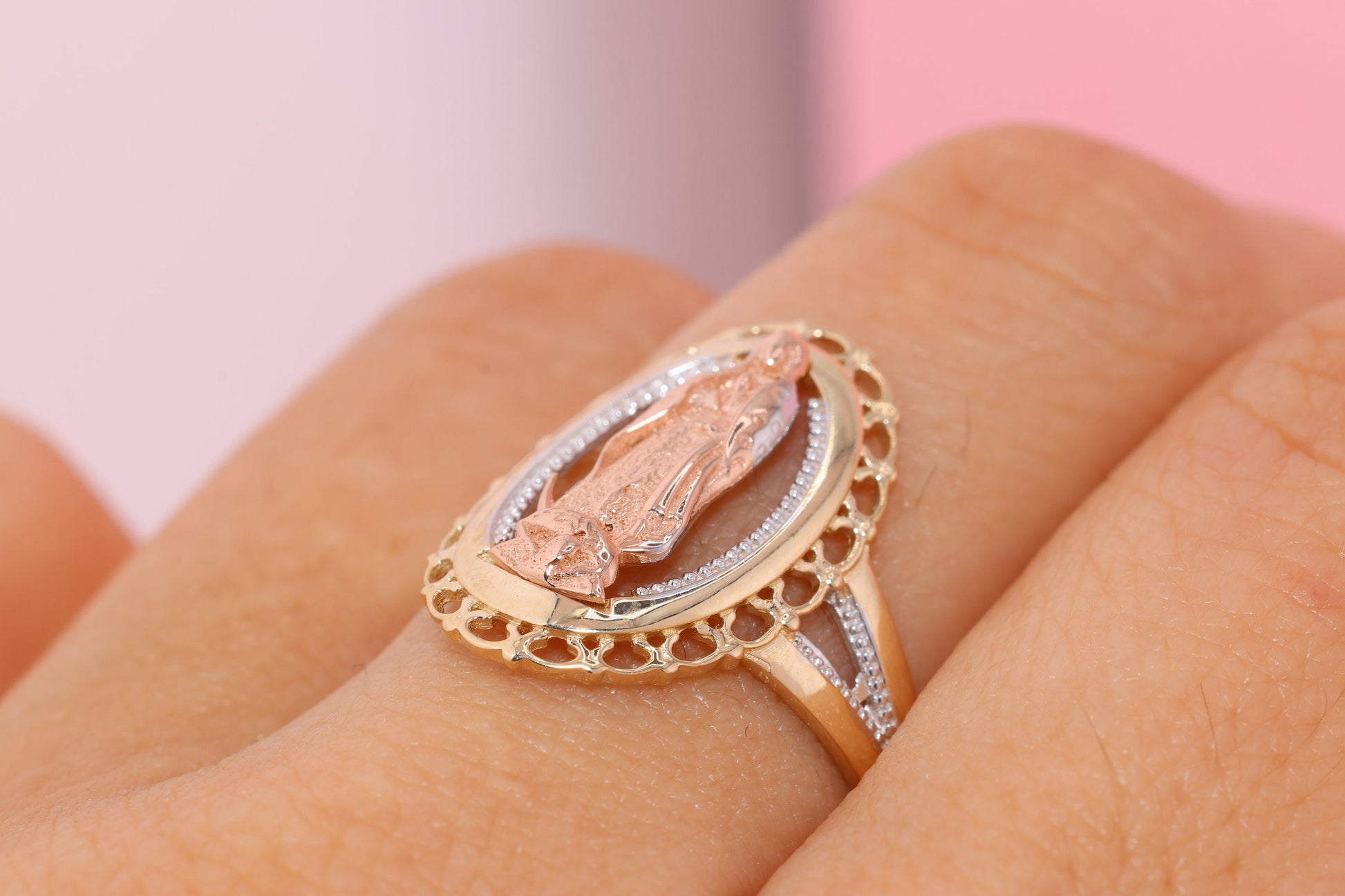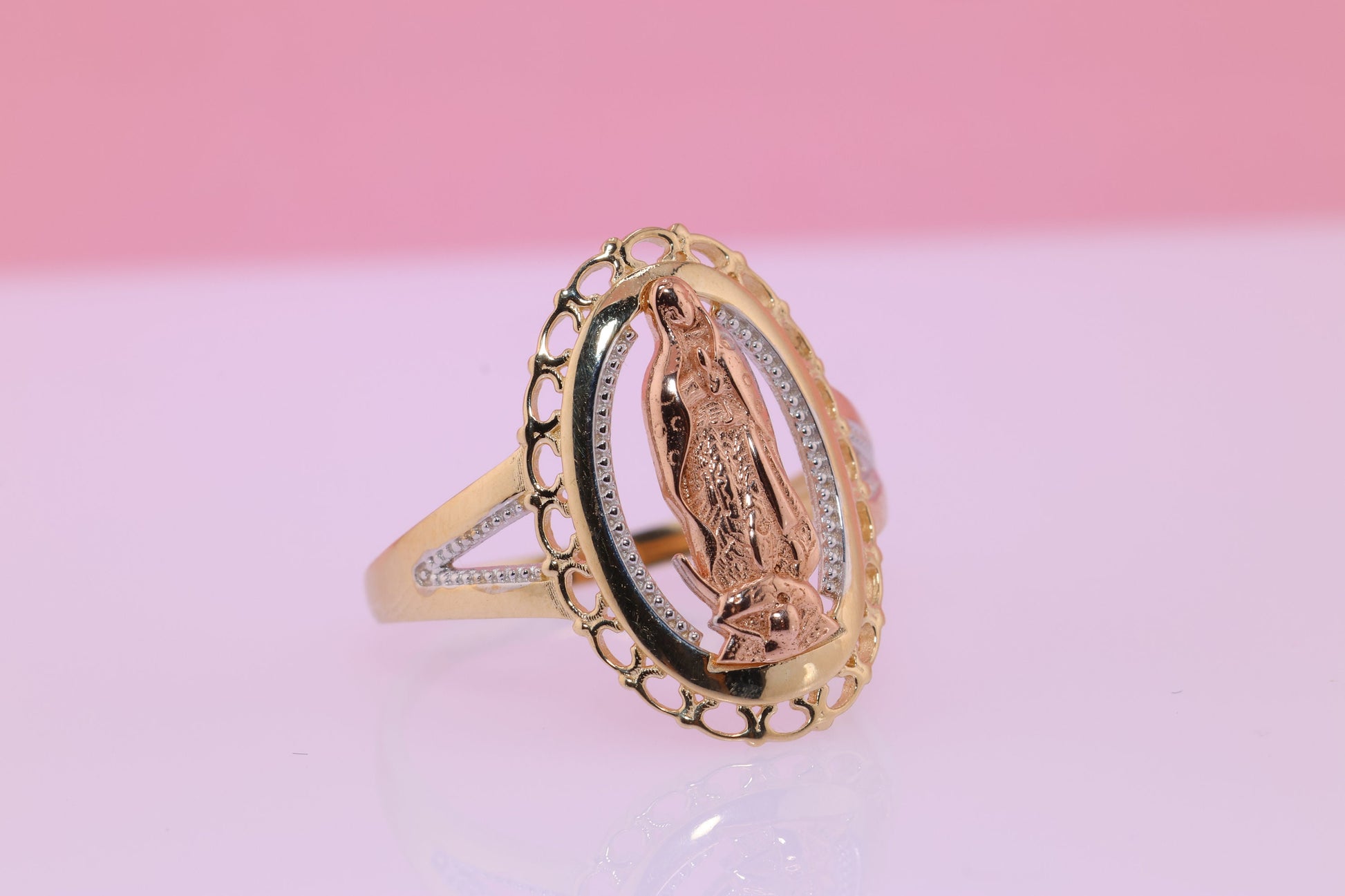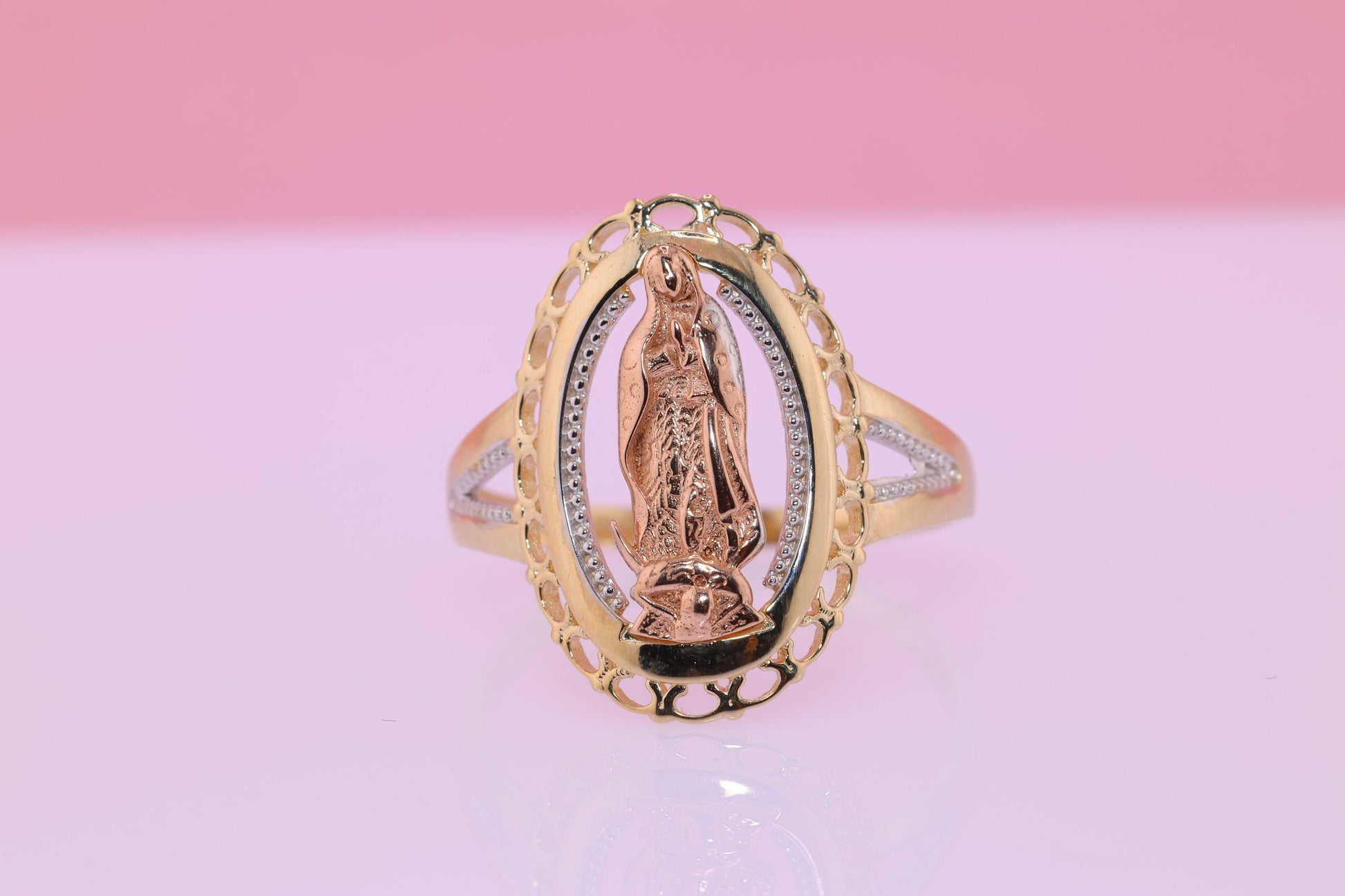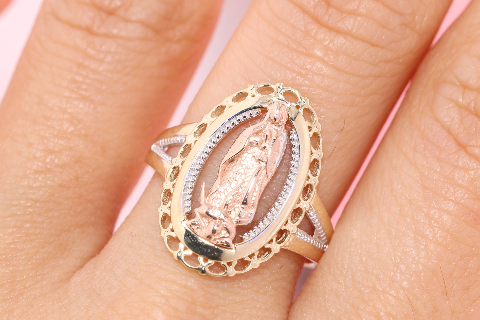 14k Solid Gold Virgin Mary Virgen Maria Lady Guadalupe Ring M