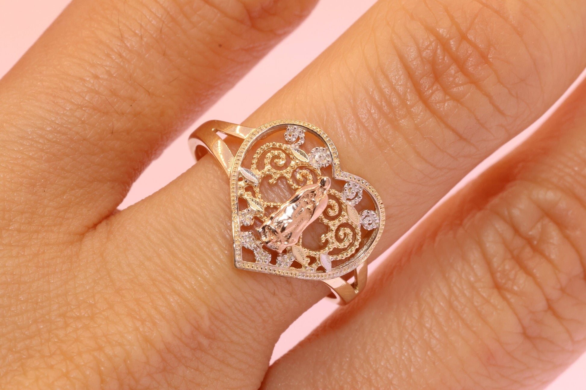 14k Solid Gold Virgin Mary Virgen Maria Lady Guadalupe Ring NN